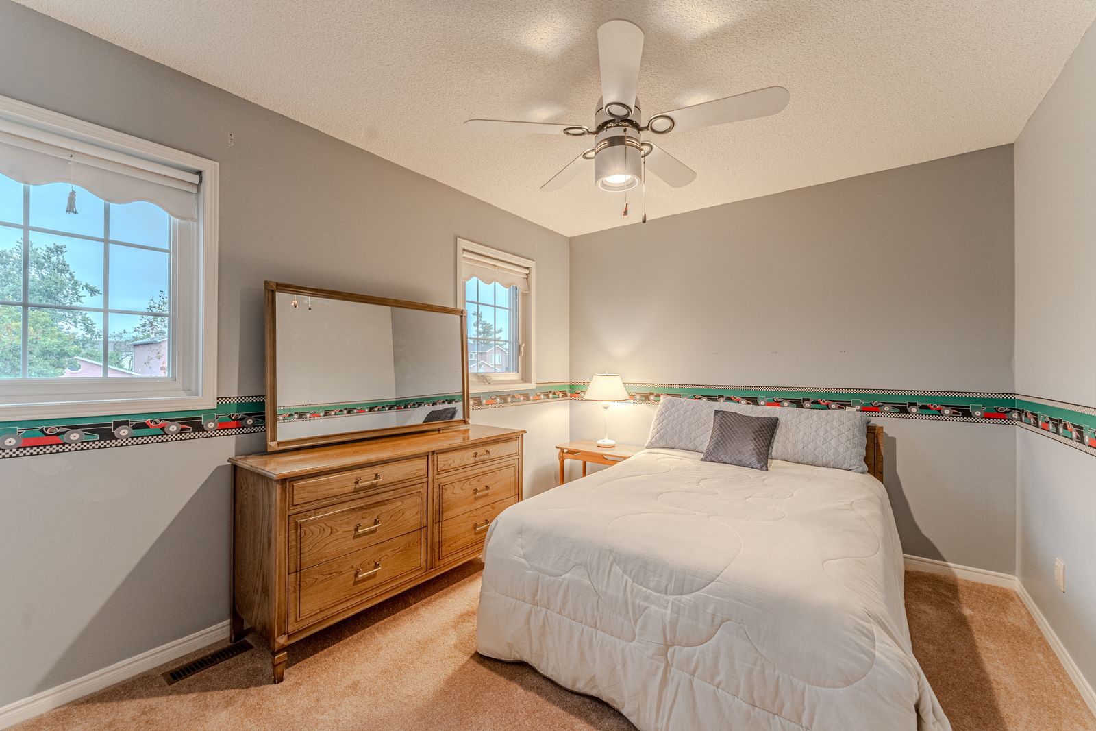 Well-maintained all-brick two-storey with over 2,800 finished sq ft in an established north-end neighbourhood! Tucked within one of barrie's established north-end neighbourhoods, this beautiful all-brick two-storey home makes a lasting impression with its grandeur exterior, double front doors, manicured gardens and a double garage that adds to its curb appeal. Offering over 2,800 square feet of finished space, the interior is warm and inviting, with thoughtful details throughout. The bright kitchen features timeless white cabinetry, generous counter space and a breakfast area with a walkout to the patio, creating an easy connection to outdoor living. The combined living and dining room showcases a large bay window that fills the space with natural light, while the family room's gas fireplace offers a cozy spot to gather. Hardwood flooring adds warmth and character to both spaces, and the main floor laundry with garage access adds everyday functionality. Upstairs, four spacious bedrooms include a primary suite with double doors, a walk-in closet and a 4-piece ensuite, while the three additional bedrooms share a main 4-piece bath. The basement extends the living area with a generous rec room and an additional gas fireplace, perfect for family movie nights or entertaining guests. Step outside to enjoy a private backyard with a patio, mature trees, hedging, a shed and a privacy fence that together create a quiet outdoor escape. Big-ticket updates have already been completed, allowing you to move in and enjoy this beautiful home with confidence!