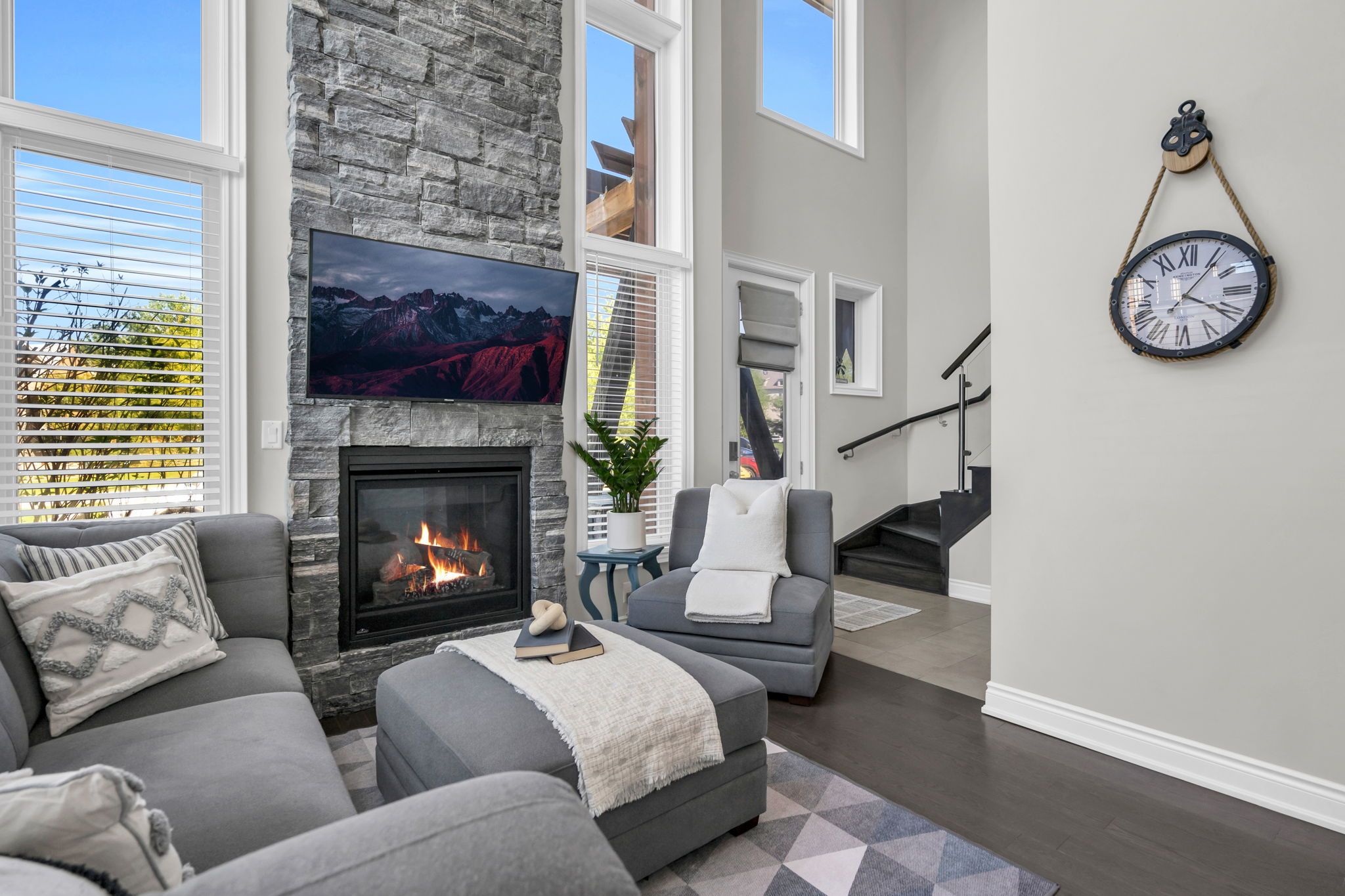 Nestled within the prestigious muskoka bay resort, this beautifully appointed townhome delivers unmatched luxury, lifestyle, and value in one of muskoka's most sought-after communities. Set on a premium lot, the home enjoys an expansive grassy area off the back patio and a peaceful forested backdrop-an ideal blend of privacy, nature, and resort living. Just steps away, the award-winning doug carrick-designed golf course completes the picture of an exceptional muskoka retreat. Inside, the atmosphere is bright, modern, and effortlessly elegant. Dramatic two-storey windows flood the living space with natural light, while the full-height stacked stone fireplace anchors the room with warmth and character. The open-concept layout flows to a lower walk-out patio-perfect for morning coffee, evening cocktails, or relaxed entertaining. Thoughtfully designed for both personal enjoyment and hosting, the added murphy bed allows the home to comfortably sleep up to four guests. Whether you're looking for a turn-key vacation property or a profitable short-term rental, this flexible layout makes it easy. Owners can take advantage of excellent income potential through the muskoka bay resort rental program or manage bookings privately. Your social membership grants access to world-class amenities including the clifftop clubhouse, infinity pool, fitness centre, spa, and on-site dining. Even better-residents can enjoy the convenience of a resort shuttle that transports you to and from amenities, and even into the town of gravenhurst. Move-in ready and offering exceptional value, 44 carrick trail is your opportunity to experience four-season resort living in muskoka's premier golf community. Properties like this don't come along often-don't miss your chance to make it yours.