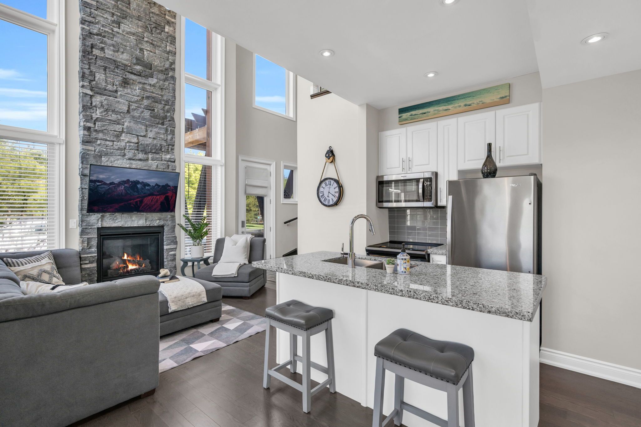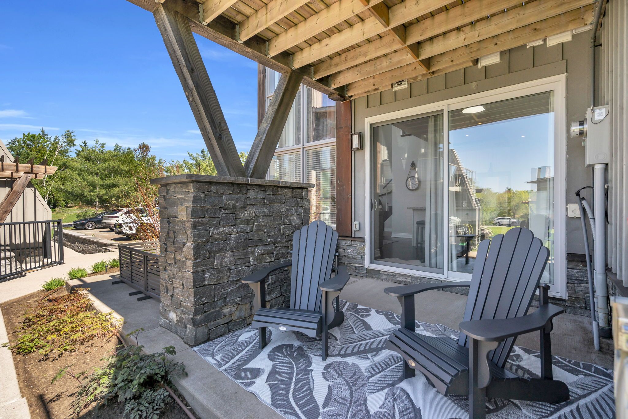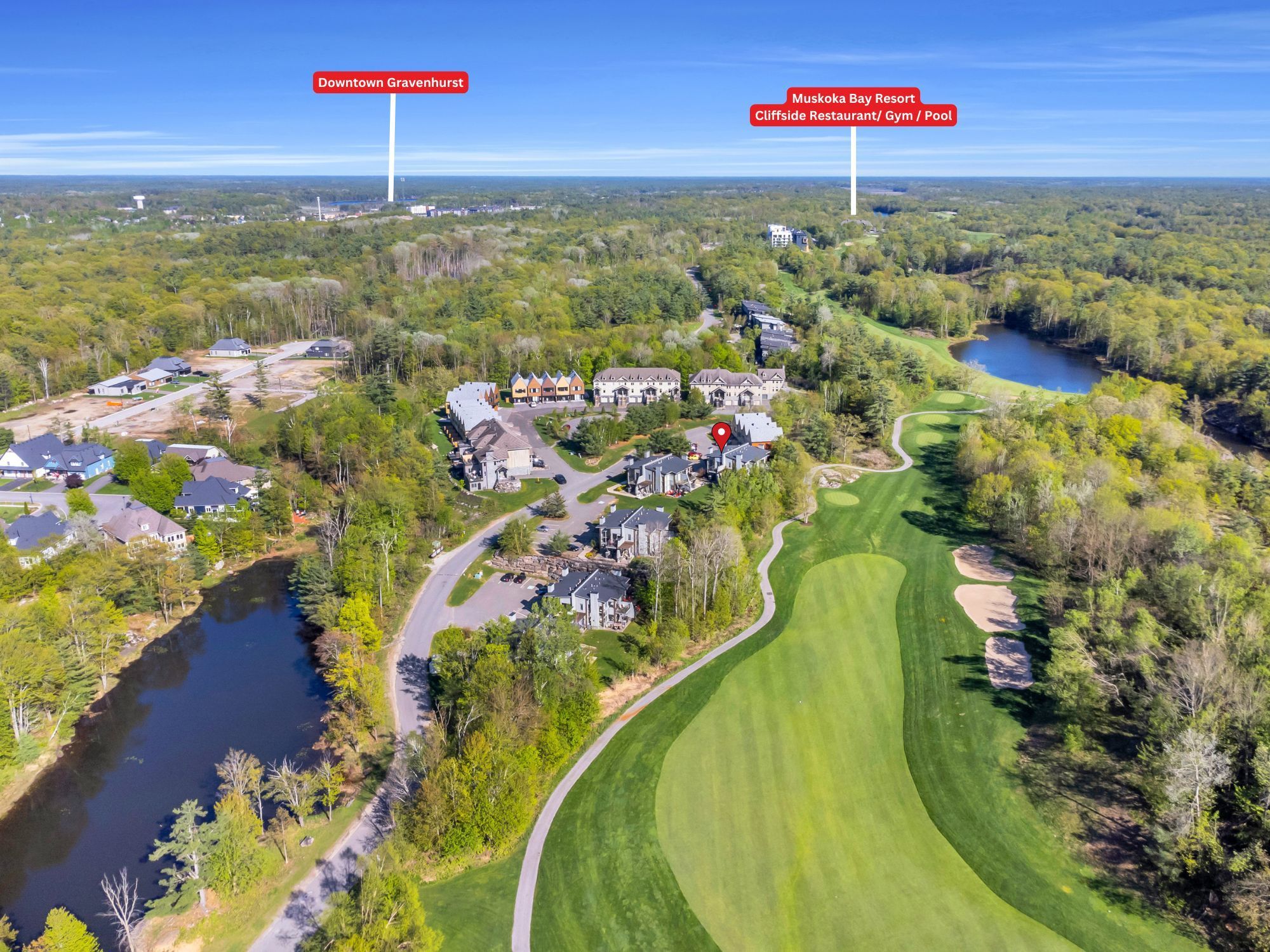 Nestled within the prestigious muskoka bay resort, this beautifully appointed townhome delivers unmatched luxury, lifestyle, and value in one of muskoka's most sought-after communities. Set on a premium lot, the home enjoys an expansive grassy area off the back patio and a peaceful forested backdrop-an ideal blend of privacy, nature, and resort living. Just steps away, the award-winning doug carrick-designed golf course completes the picture of an exceptional muskoka retreat. Inside, the atmosphere is bright, modern, and effortlessly elegant. Dramatic two-storey windows flood the living space with natural light, while the full-height stacked stone fireplace anchors the room with warmth and character. The open-concept layout flows to a lower walk-out patio, perfect for morning coffee, evening cocktails, or relaxed entertaining. Thoughtfully designed for both personal enjoyment and hosting, the added murphy bed allows the home to comfortably sleep up to four guests. Whether you're looking for a turn-key vacation property or a profitable short-term rental, this flexible layout makes it easy. Owners can take advantage of excellent income potential through the muskoka bay resort rental program or manage bookings privately. Your social membership grants access to world-class amenities, including the clifftop clubhouse, infinity pool, fitness centre, spa, and on-site dining. Even better, residents can enjoy the convenience of a resort shuttle that transports them to and from amenities, and even into the town of gravenhurst. Move-in ready and offering exceptional value, 44 carrick trail is your opportunity to experience four-season resort living in muskoka's premier golf community. Properties like this don't come along often-don't miss your chance to make it yours.