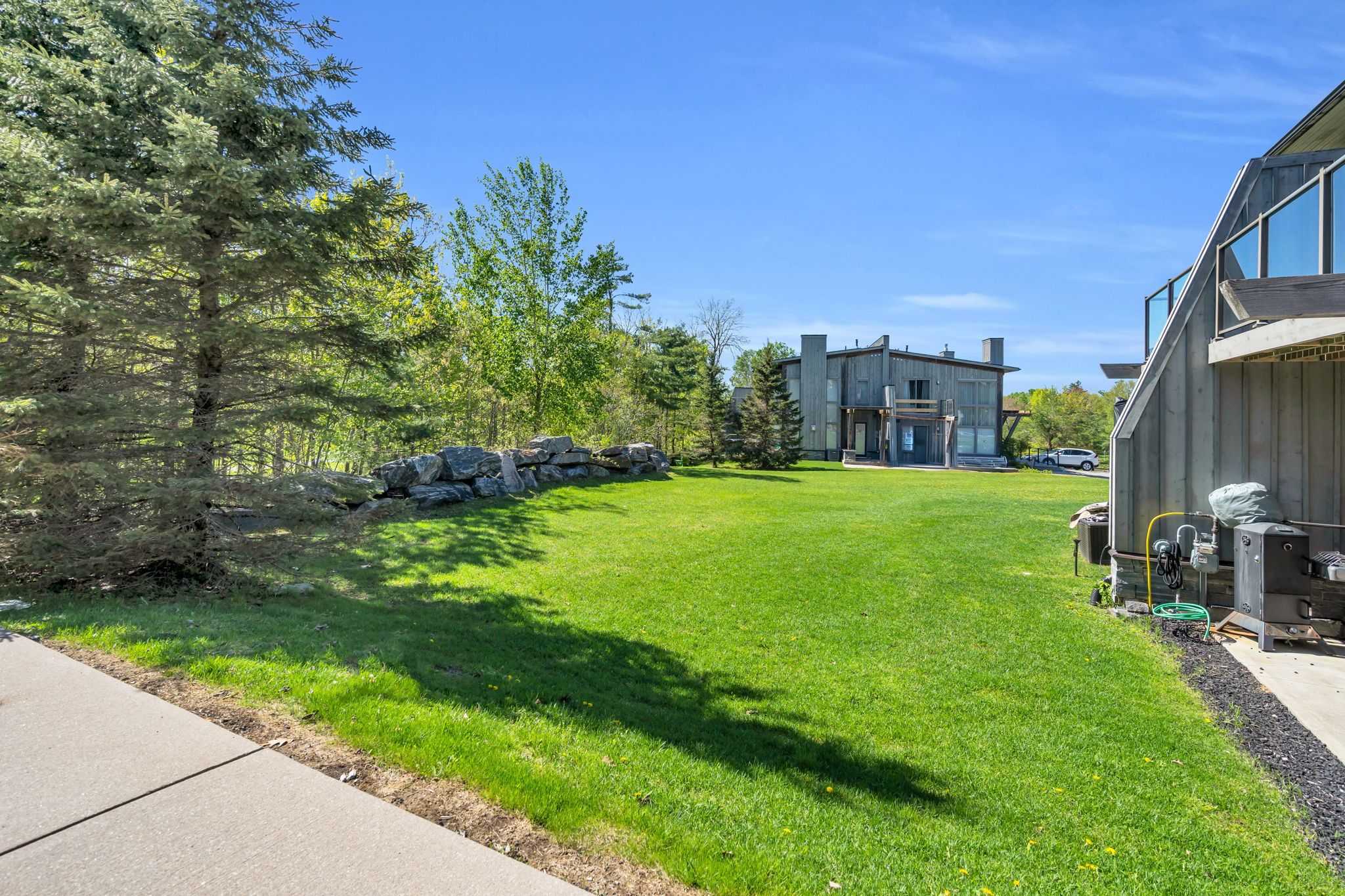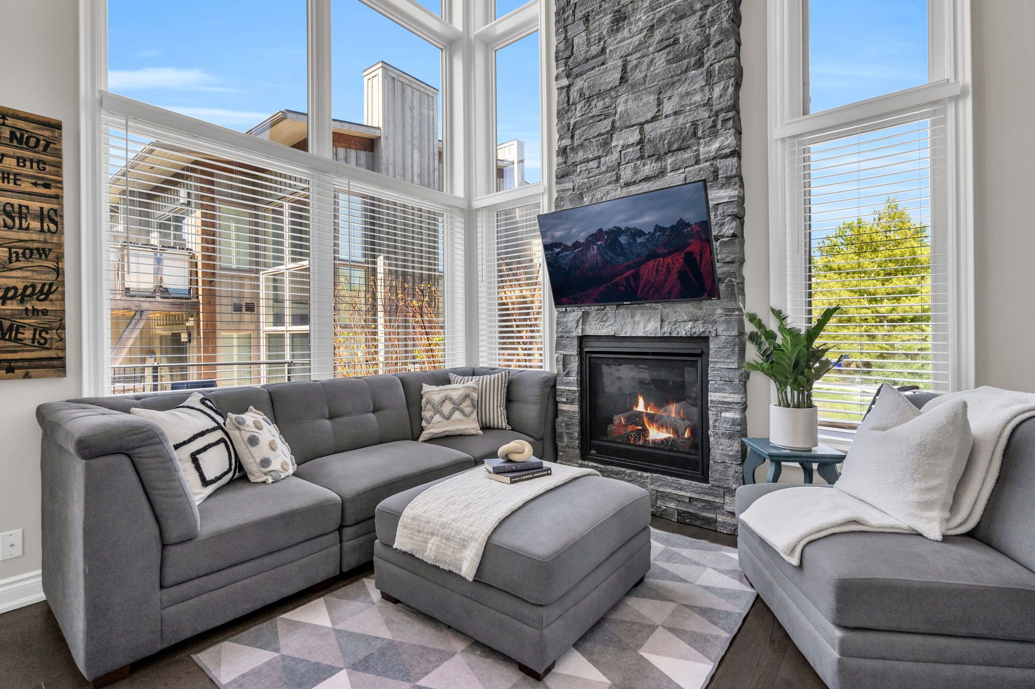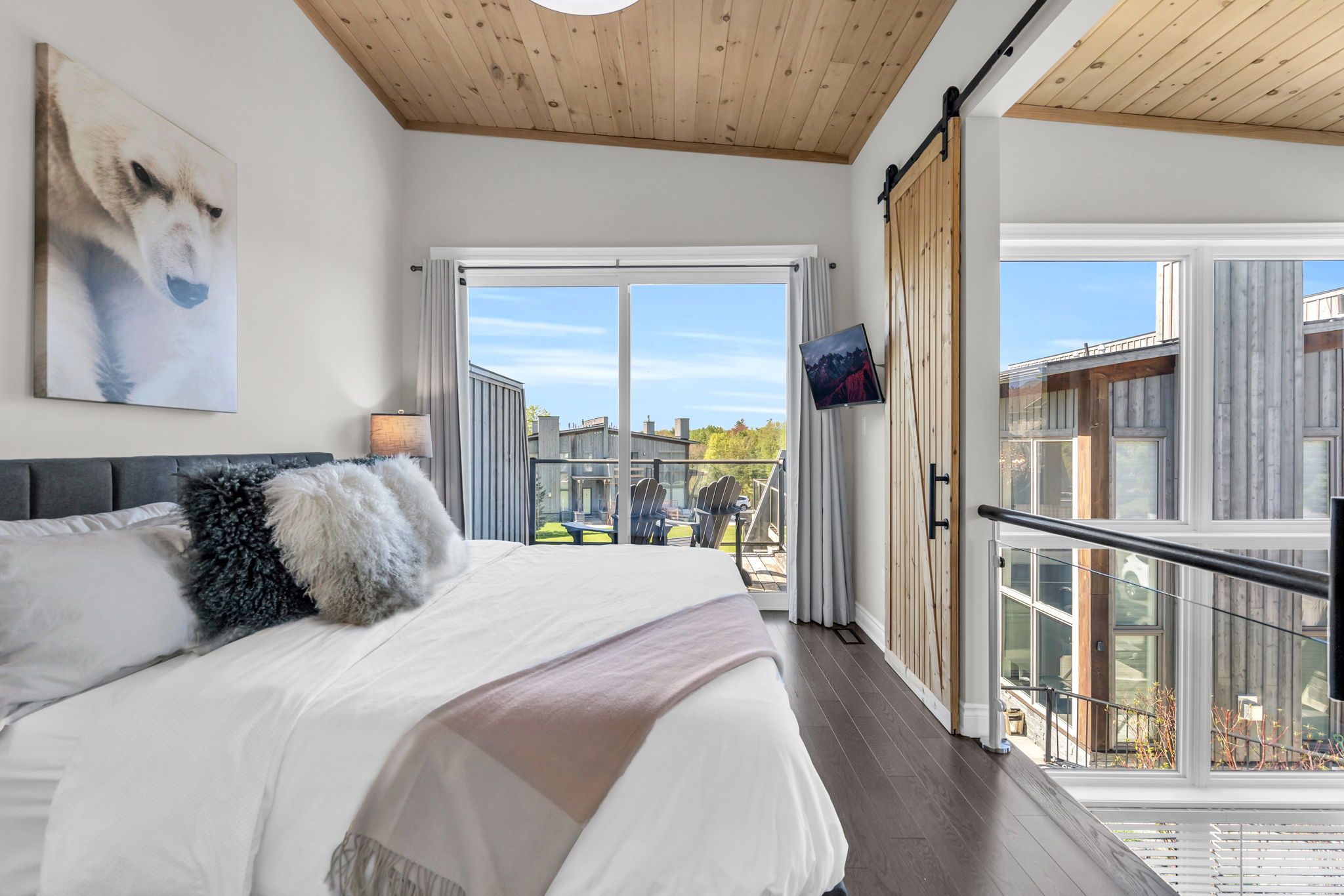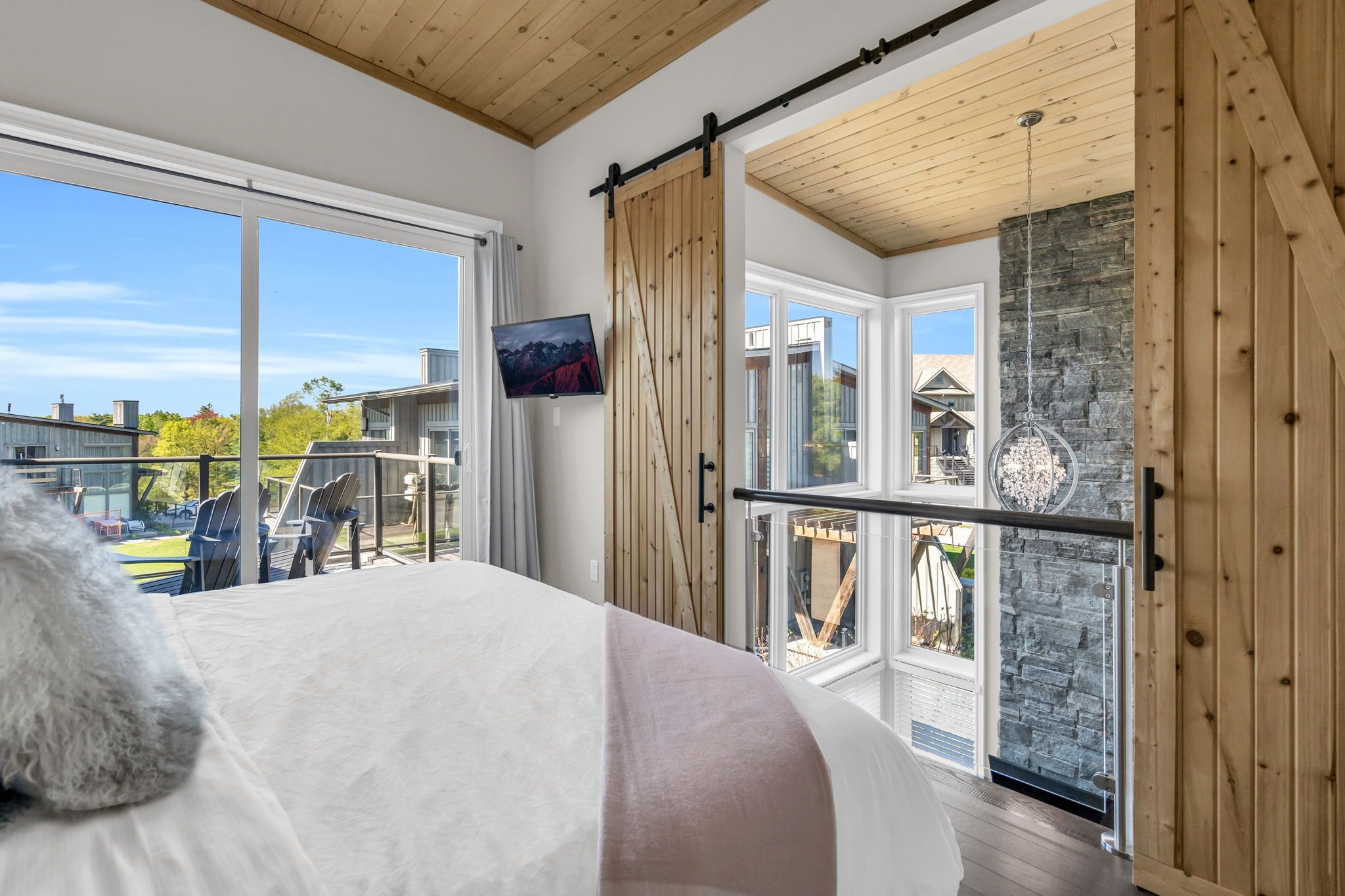 Nestled within the prestigious muskoka bay resort, this beautifully appointed townhome delivers unmatched luxury, lifestyle, and value in one of muskoka's most sought-after communities. Set on a premium lot, the home enjoys an expansive grassy area off the back patio and a peaceful forested backdrop-an ideal blend of privacy, nature, and resort living. Just steps away, the award-winning doug carrick-designed golf course completes the picture of an exceptional muskoka retreat. Inside, the atmosphere is bright, modern, and effortlessly elegant. Dramatic two-storey windows flood the living space with natural light, while the full-height stacked stone fireplace anchors the room with warmth and character. The open-concept layout flows to a lower walk-out patio, perfect for morning coffee, evening cocktails, or relaxed entertaining. Thoughtfully designed for both personal enjoyment and hosting, the added murphy bed allows the home to comfortably sleep up to four guests. Whether you're looking for a turn-key vacation property or a profitable short-term rental, this flexible layout makes it easy. Owners can take advantage of excellent income potential through the muskoka bay resort rental program or manage bookings privately. Your social membership grants access to world-class amenities, including the clifftop clubhouse, infinity pool, fitness centre, spa, and on-site dining. Even better, residents can enjoy the convenience of a resort shuttle that transports them to and from amenities, and even into the town of gravenhurst. Move-in ready and offering exceptional value, 44 carrick trail is your opportunity to experience four-season resort living in muskoka's premier golf community. Properties like this don't come along often-don't miss your chance to make it yours.