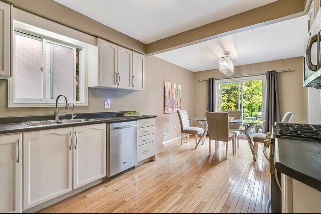 Welcome to this lovely, all-brick 1,500 sq. Ft. End-unit townhouse ( classified as a semi-detached on geowarehouse). Offering the space & feel of a detached home in the shade mills community in north galt. Rarely offered, this property features a double car garage & a private double driveway, accommodating up to six vehicles. Tucked away on a quiet, child-friendly dead-end street with very few homes. Just minutes to highway 401 and within walking distance to parks, schools, shopping plazas, restaurants & public transit. Step inside to a bright and inviting open-concept main level. Eat-in kitchen offers ample cabinetry & counter space, along with a walkout to a large deck, perfect for summer barbecues or morning coffee. A beautiful private backyard that creates an ideal setting for gatherings with family & friends. The spacious living area overlooks the kitchen & is enhanced by a large, picturesque window that fills the space with natural light. The main floor also features a 2-piece powder room & a conveniently located laundry room with additional storage & interior access to the garage. Upstairs, you'll find three generously sized bedrooms, a spacious primary complete with a semi-ensuite, spa-like 4-piece bathroom featuring a relaxing soaker tub & separate shower stall. Recent upgrades include a newer dishwasher, french door fridge, gas stove, front-load washer/dryer, and a new furnace. The basement awaits your finishing touches. Fully framed with electrical in place & roughed-in plumbing for a 3-piece bathroom. A space thoughtfully laid out for a future rec room, bedroom, and bathroom.