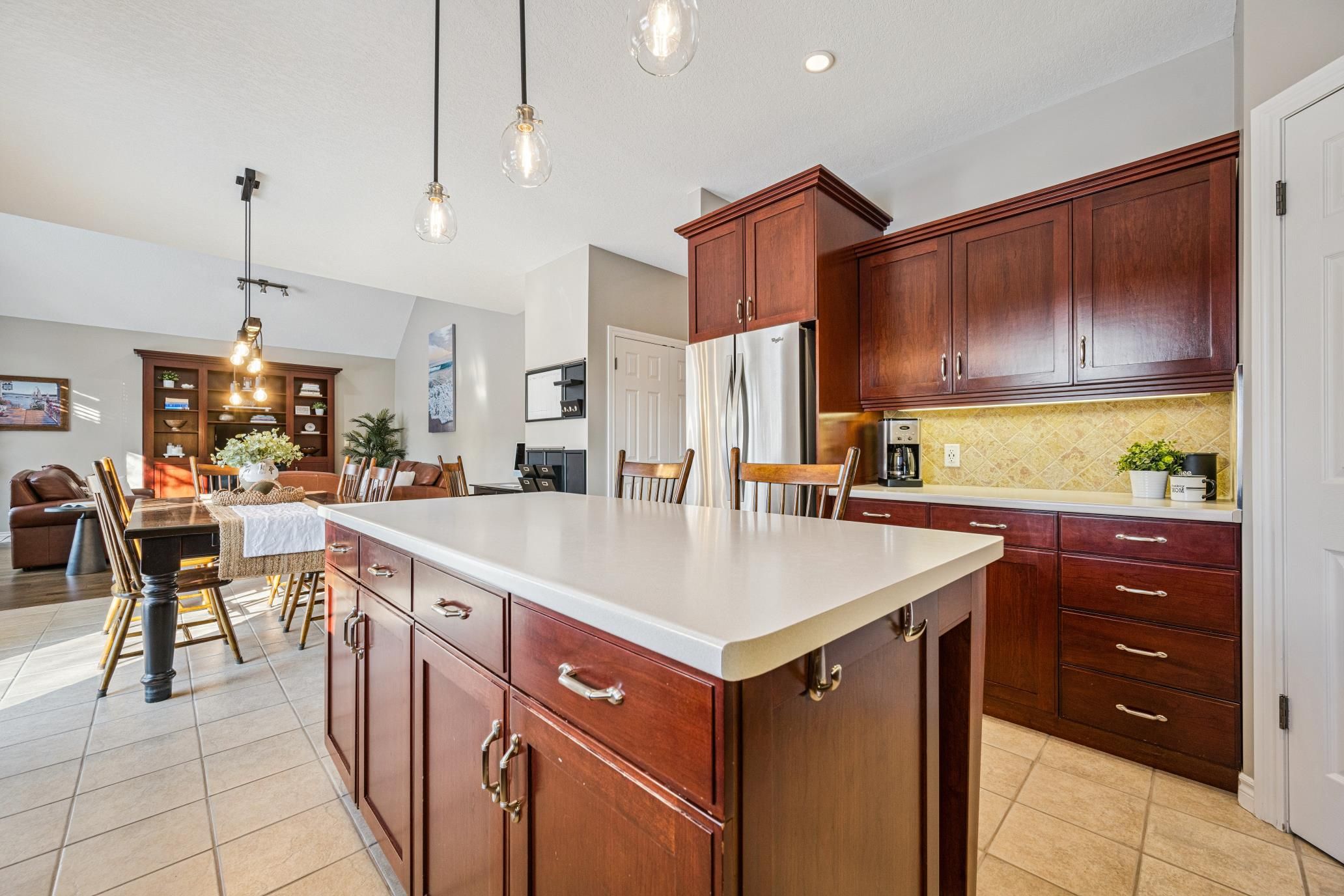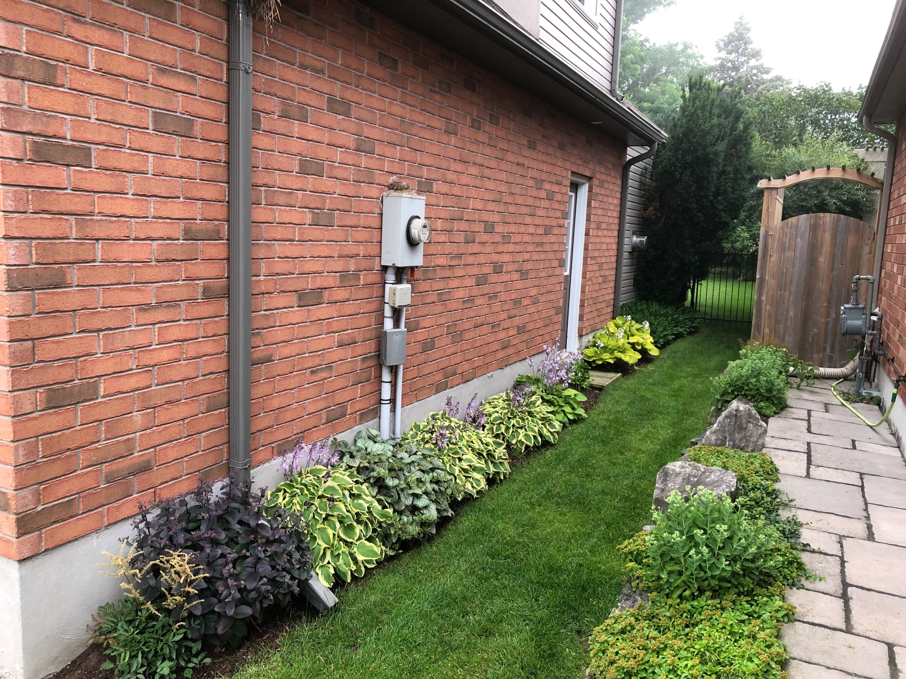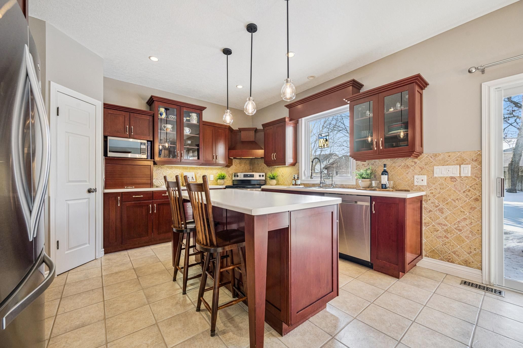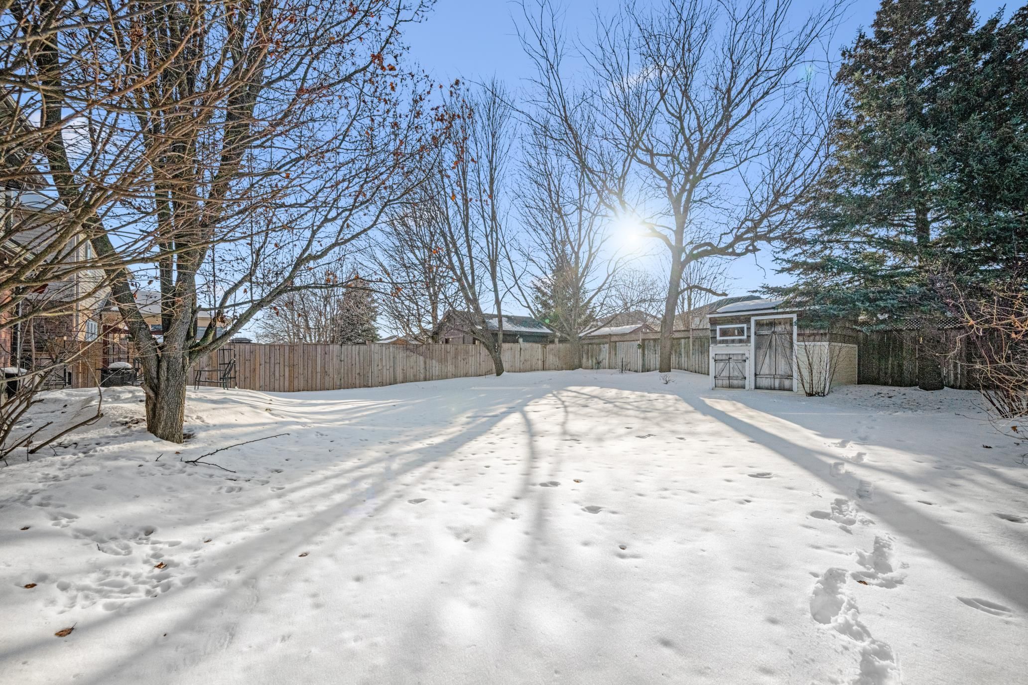 • Private backyard oasis with an interlocking patio and mature trees.