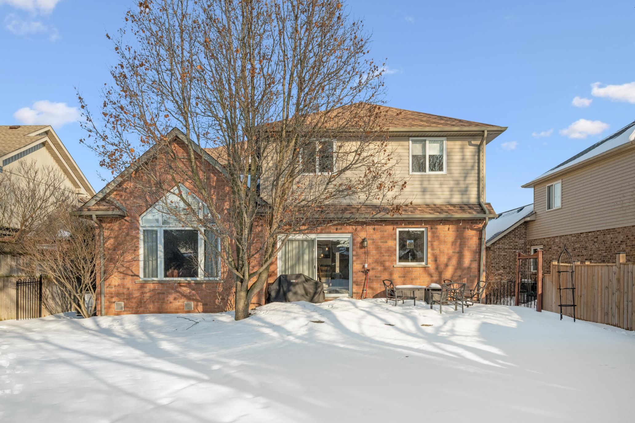 Welcome home to executive living on this prestigious crescent in elmira! This exceptional two-story residence is offering approximately 3,300 sq ft of beautifully finished living space, nestled on a quiet, estate-like crescent in the heart of elmira - just minutes to waterloo. Set on an impressive 53 x 135 ft lot, this 5 bed, 4 bath home delivers the perfect balance of elegance, space, and modern updates - ideal for growing families and those who love to entertain. From the moment you arrive, the curb appeal is undeniable. Recently redone stucco, a newer roof, manicured landscaping, and a mature streetscape create a distinguished first impression. The double-car garage and spacious driveway offer convenience and functionality for busy households. Inside, the home has been refreshed with newly painted interiors, updated flooring, and modern light fixtures that elevate every room. The generous principal spaces offer both openness and warmth - perfect for everyday living and hosting alike. Enjoy 4 bedrooms on the second level with laundry and an oversized primary suite and bath. The finished basement provides incredible flexibility, whether you envision a recreation room, home gym, office space, or guest retreat with a walk up staircase . Step outside to your private backyard oasis. The interlocking patio creates a stunning entertaining space surrounded by mature trees and lush landscaping, supported by a full irrigation system to keep everything vibrant and low-maintenance. This home is located in one of elmira's most desirable settings and is move in ready. Upgrades include paint (22) flooring and carpet (22) lighting(22) stucco (25) roof (19) new front door (21)