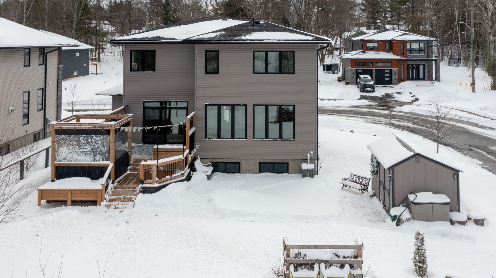 Welcome to 44 dennis drive, beautifully built in 2021 with style in mind and nestled in a family-friendly neighbourhood in parry sound, just steps from schools and only minutes to several parks, georgian bay, downtown, the new recreation centre being built, and everyday amenities. This location offers a warm community feel while being close to the highway for commuters. Stepping inside the home, you'll immediately notice the light-filled spaces and thoughtfully designed layout. The open-concept kitchen and living room create the heart of the home-perfect for gathering with family and friends. Enjoy cooking in the bright kitchen featuring a large island and extra-large walk-in pantry, while the cozy gas fireplace adds comfort to the living space. From there, step out to the back deck and hot tub, a perfect spot to unwind at the end of the day. The main-floor laundry area, conveniently located off the powder room, brings even more natural light into the home and offers a sunny place for your plants or garden seedlings. Upstairs, you'll escape to the primary bedroom complete with a large and luxurious en-suite bathroom and walk-in closet, two more spacious bedrooms and another full bathroom. Each room includes upgraded custom closets designed with storage and organization in mind. The lower level has another bedroom or workout space, a spacious recreation room, and another full bathroom, making it convenient for your overnight guests. Additional features include engineered wood floors throughout, cat5 wiring for modern connectivity, a bonus driveway for your trailer or boat, and a heated garage with insulated door and 30-amp service. Recent upgrades include 200 amp service, surge protector on the panel, hdmi wall plugs, hot tub decking, a large shed, and landscaping around the property. Bright, modern, and thoughtfully designed, this home offers the perfect blend of comfort, style, and location-ready for you to move in and enjoy today!