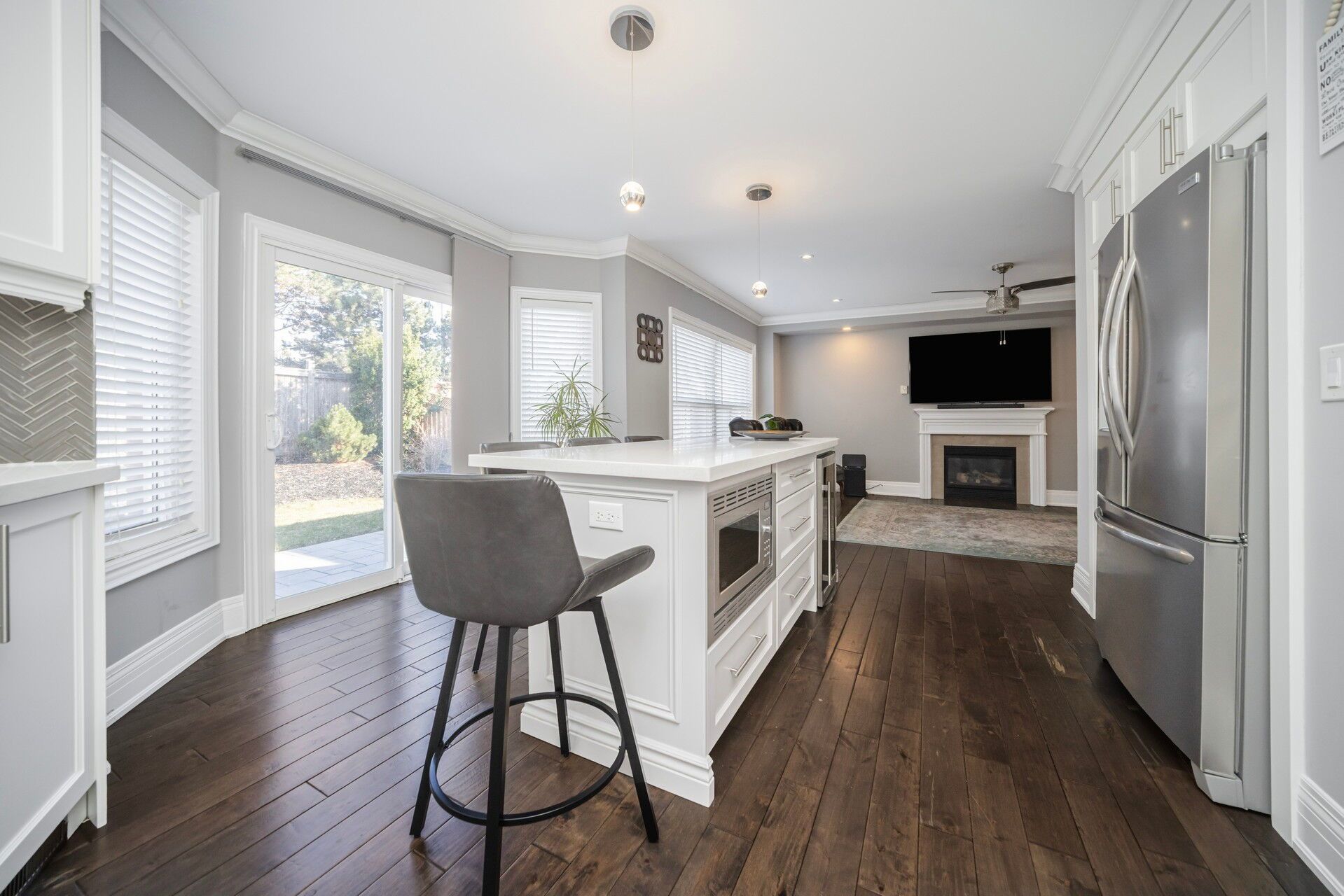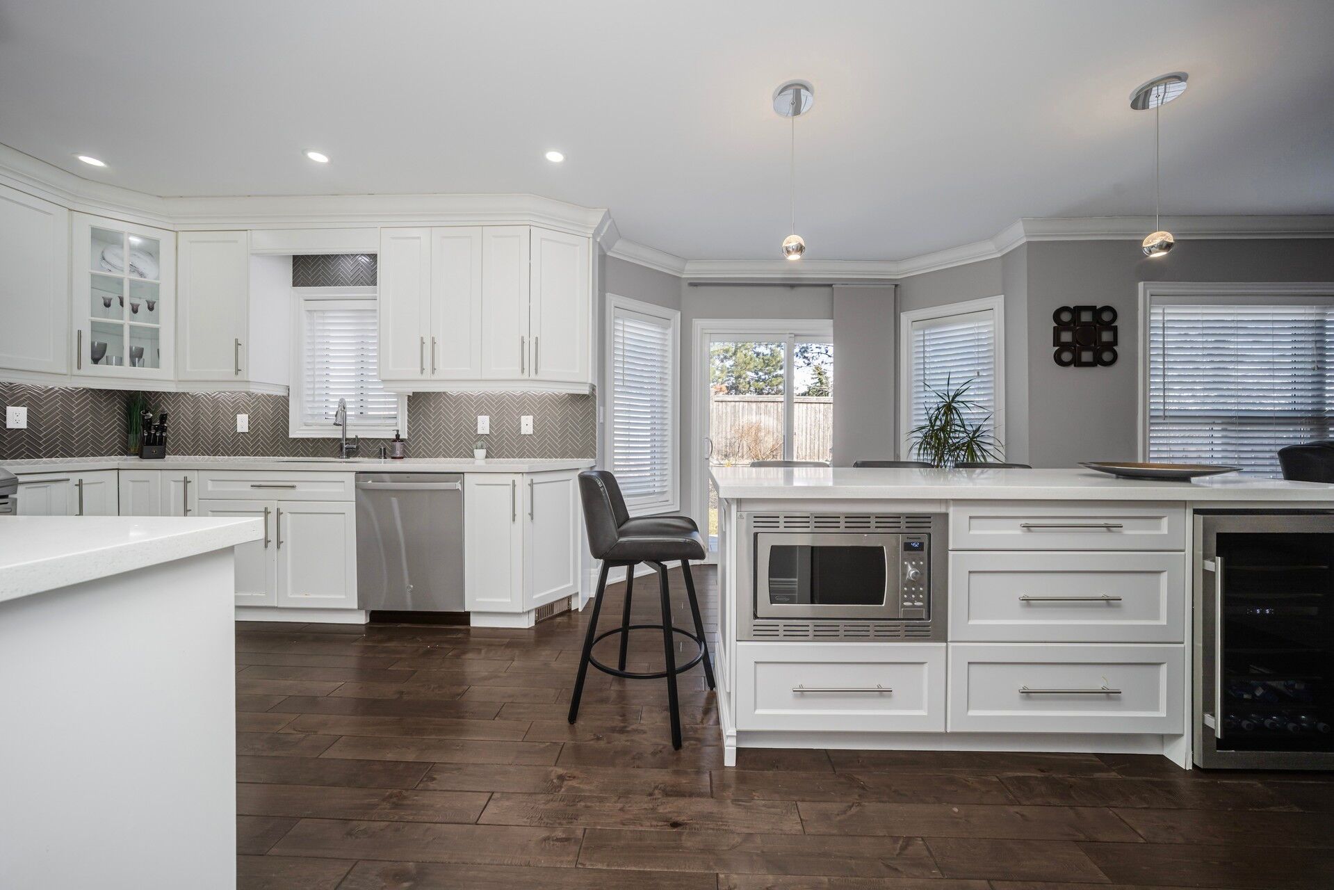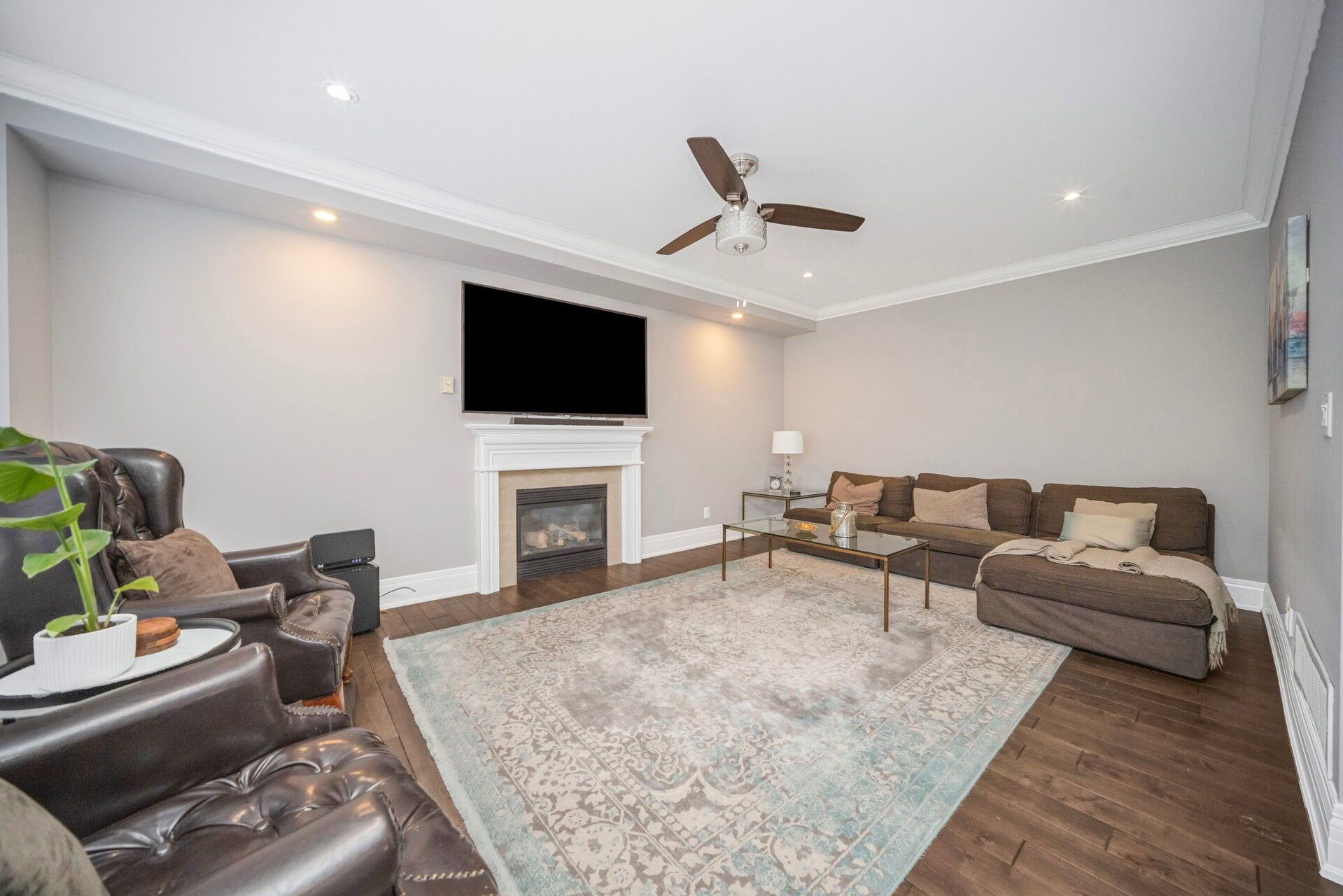 Welcome to this beautifully upgraded, all-brick detached home situated on a premium 55-foot lot, offering a double-car garage and an extended four-car driveway. From the moment you arrive, you'll appreciate the curb appeal, exterior pot lights, and fully fenced backyard with no neighbours behind-creating a private outdoor retreat complete with a spacious patio, perfect for bbqs and entertaining. Step inside and feel instantly at home with gleaming hardwood floors, abundant pot lights, and a bright, sun-filled layout throughout. The main floor features formal living and dining areas, along with a cozy family room highlighted by a gas fireplace-ideal for relaxing evenings. The fully renovated kitchen is a true showstopper, showcasing luxurious finishes, stainless steel appliances, granite countertops, stylish backsplash, and a large centre island with built-in microwave and wine fridge. Ample counter and cupboard space make this kitchen as functional as it is elegant. An elegant oak staircase with iron pickets leads you to the upper level, where you'll find five generously sized bedrooms. The spacious primary retreat offers double closets and a spa-inspired 5-piece ensuite complete with double sinks. The main bathroom on the second floor is fully renovated, and the thoughtfully upgraded laundry room with built-in counter adds everyday convenience. Filled with natural light and meticulously maintained, this neat and tidy home offers exceptional space for growing families. Ideally located close to plazas, top-rated schools, parks, highways, and all essential amenities-this is a rare opportunity to own a truly move-in-ready home that combines comfort, style, and functionality
