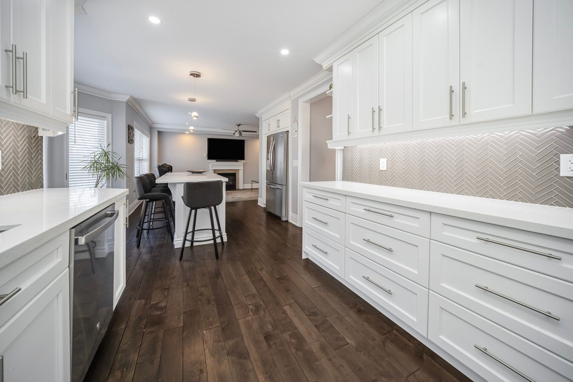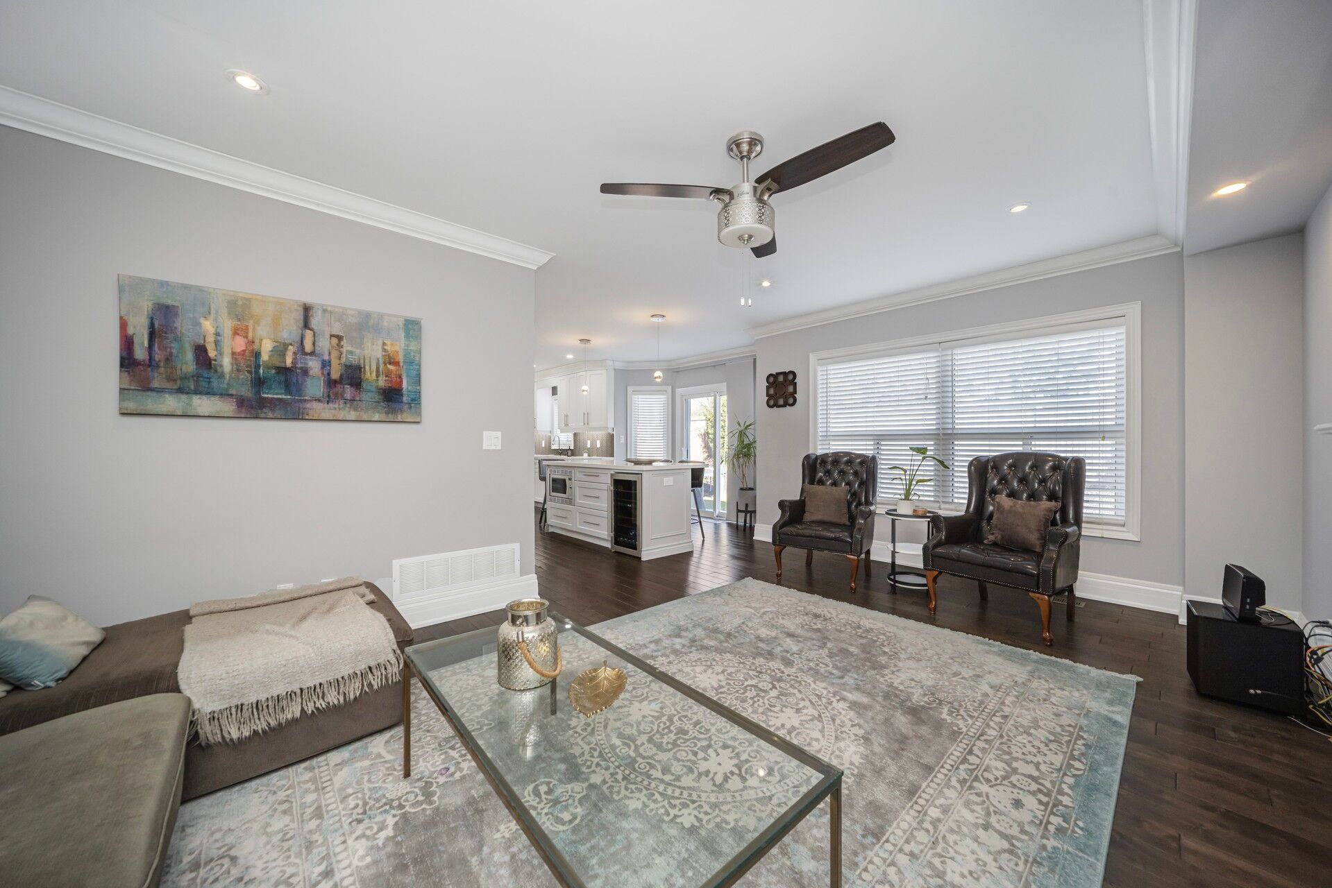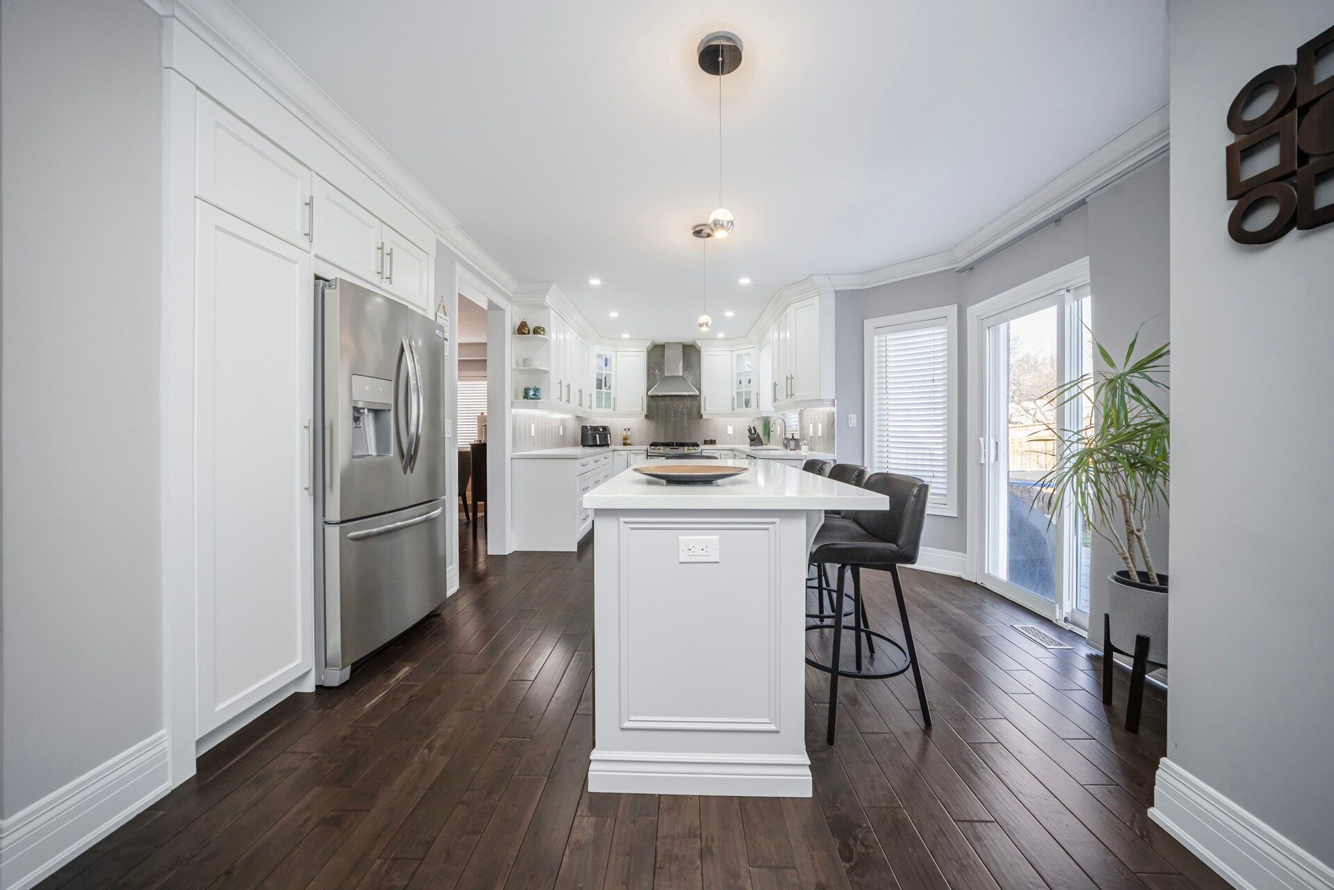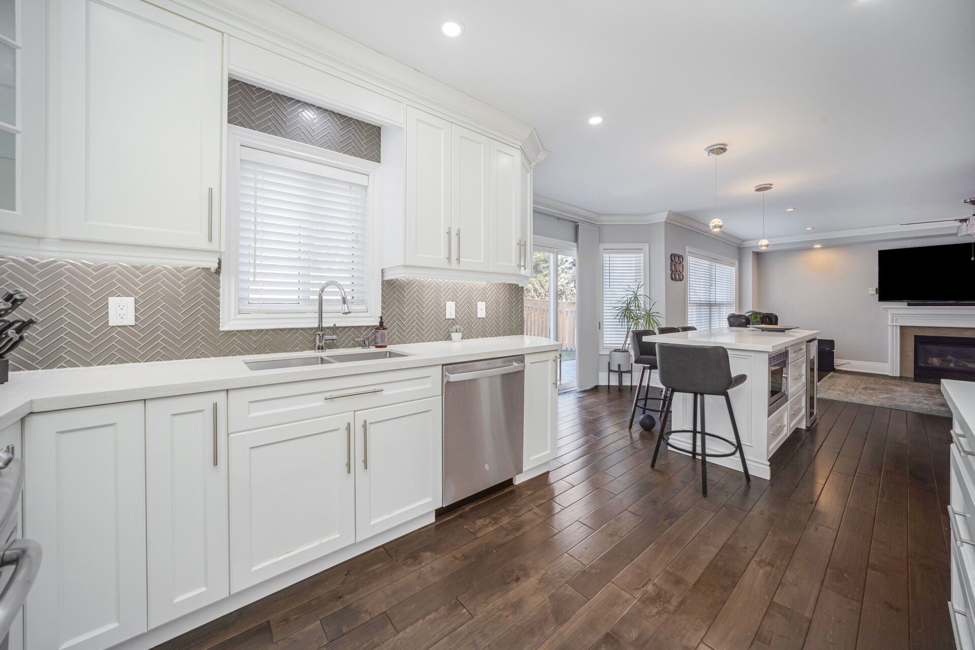 Welcome to this beautifully upgraded, all-brick detached home situated on a premium 55-foot lot, offering a double-car garage and an extended four-car driveway. From the moment you arrive, you'll appreciate the curb appeal, exterior pot lights, and fully fenced backyard with no neighbours behind-creating a private outdoor retreat complete with a spacious patio, perfect for bbqs and entertaining. Step inside and feel instantly at home with gleaming hardwood floors, abundant pot lights, and a bright, sun-filled layout throughout. The main floor features formal living and dining areas, along with a cozy family room highlighted by a gas fireplace-ideal for relaxing evenings. The fully renovated kitchen is a true showstopper, showcasing luxurious finishes, stainless steel appliances, granite countertops, stylish backsplash, and a large centre island with built-in microwave and wine fridge. Ample counter and cupboard space make this kitchen as functional as it is elegant. An elegant oak staircase with iron pickets leads you to the upper level, where you'll find five generously sized bedrooms. The spacious primary retreat offers double closets and a spa-inspired 5-piece ensuite complete with double sinks. The main bathroom on the second floor is fully renovated, and the thoughtfully upgraded laundry room with built-in counter adds everyday convenience. Filled with natural light and meticulously maintained, this neat and tidy home offers exceptional space for growing families. Ideally located close to plazas, top-rated schools, parks, highways, and all essential amenities-this is a rare opportunity to own a truly move-in-ready home that combines comfort, style, and functionality