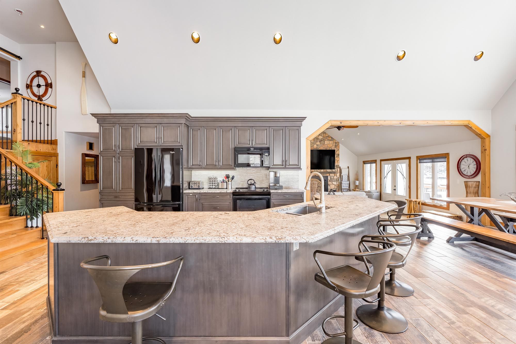 • Bright open-concept main level with vaulted ceilings and natural light.