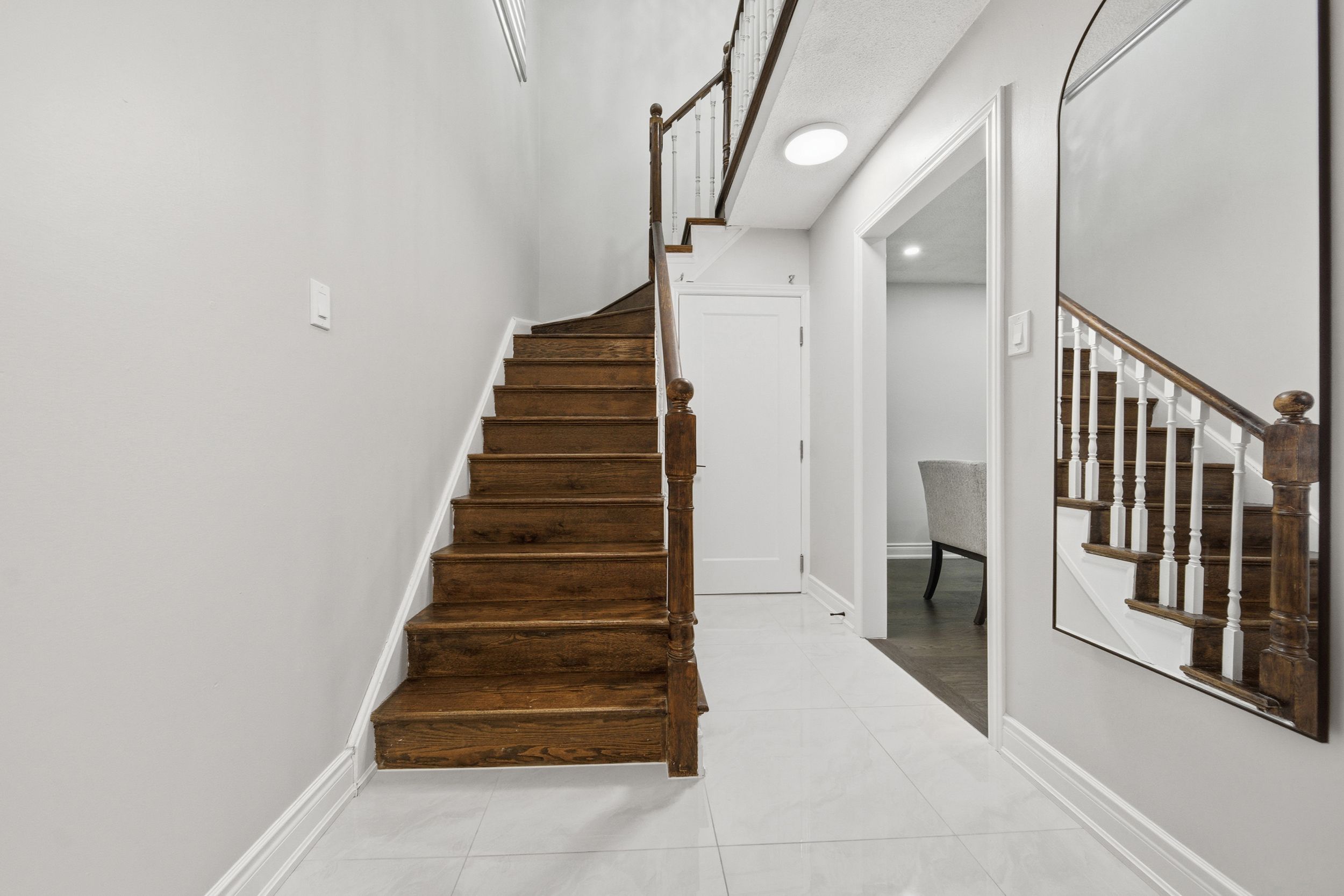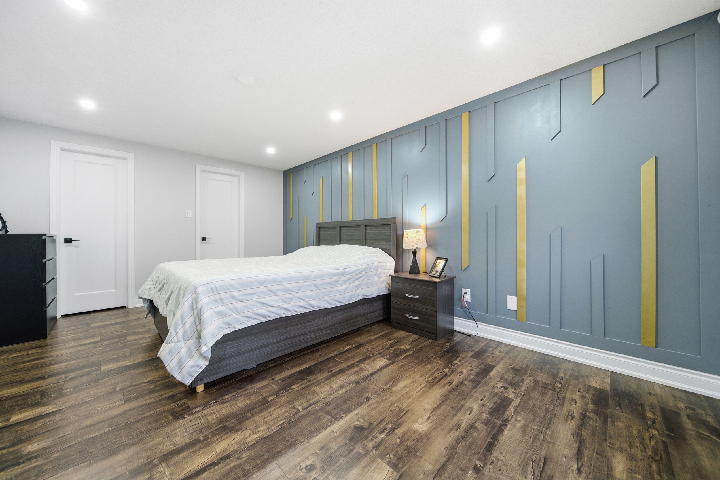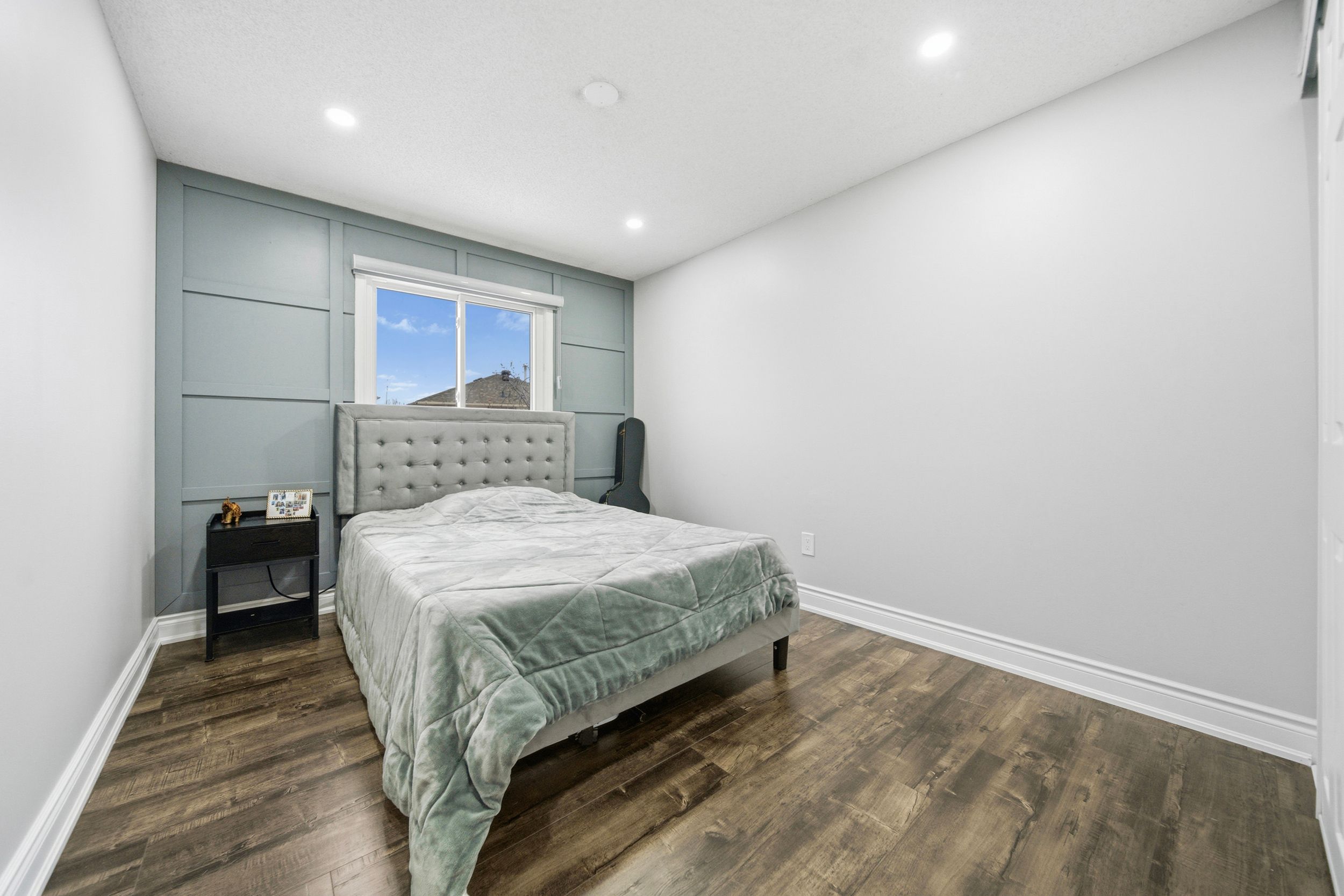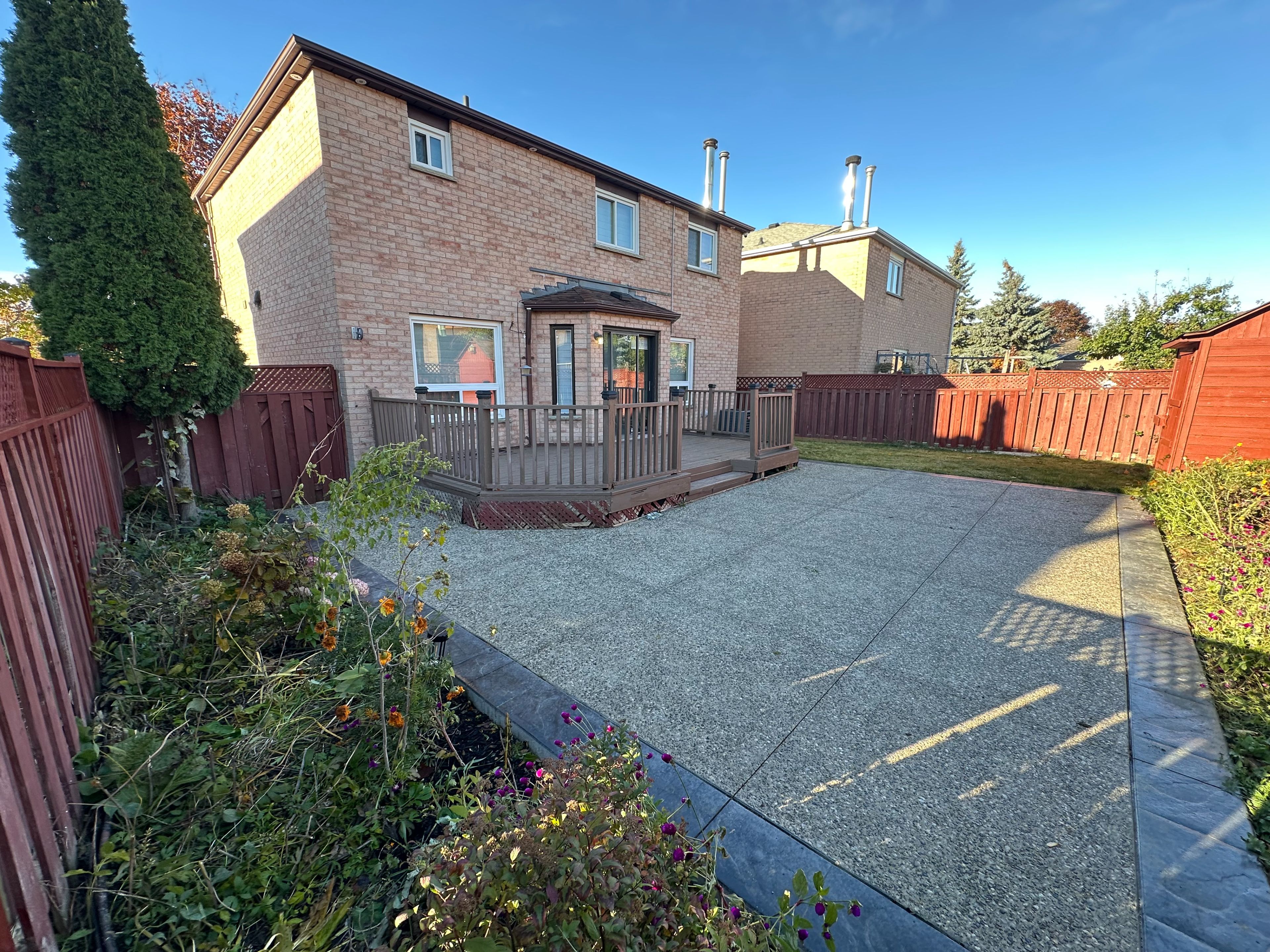 Wonderful opportunity to own a turnkey house in a high-demand area. Simply move in and enjoy. $$$ spent on renovations! 3 generous sized bedrooms each featuring a beautiful accent wall. The finished basement has a separate entrance, kitchen and 3 piece bathroom. Excellent opportunity for income potential or in-law suite! South-west facing provides a lot of great, natural sunlight. No carpet in the house. Hot water tank owned! Use generously-sized main floor room as combined living/dining, or as a large-family room! Driveway can fit up to 3 cars side by side, along with up to 2 additional cars in the garage. Backyard features a deck, aggregate concrete patio and shed. Whole house has been tastefully upgraded with: engineered hardwood in dining/living (2024), 24x24 tiles in kitchen and foyer (2024), modern bathroom renovations for all main floor bathrooms (2024), zebra blinds throughout house (2024), roof shingles replaced (2025), interior potlights throughout house (2024), exterior potlights (2025), whole house professionally painted (2024), new baseboards throughout main and 2nd floors (2024), quartz kitchen countertops (2024), generously-sized aggregate concrete patio (2025). Close to 407, shopper's world mall, places of worship, schools and rec centre!