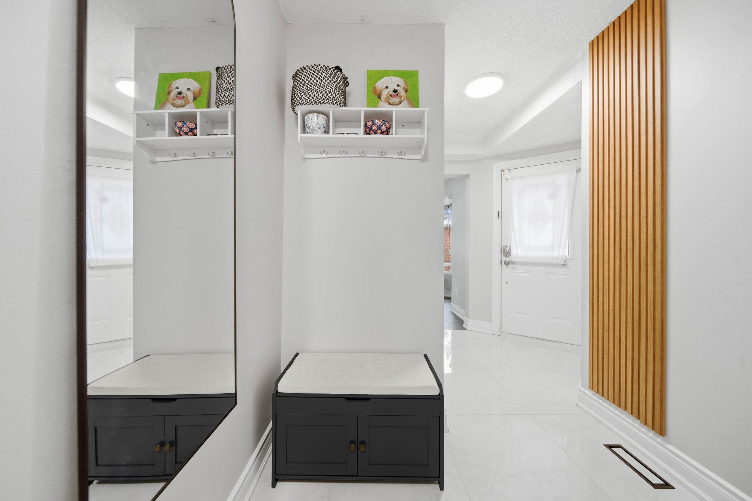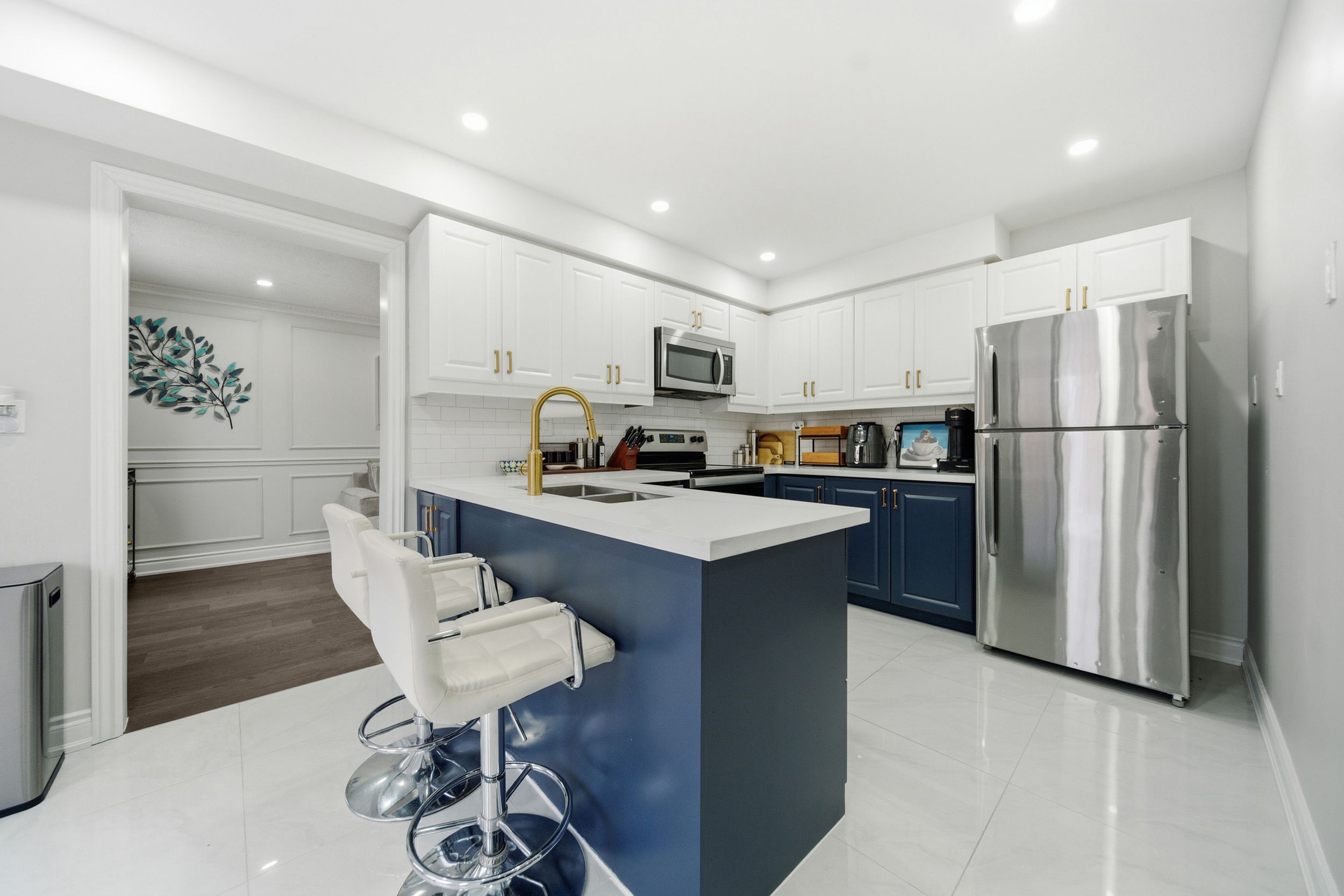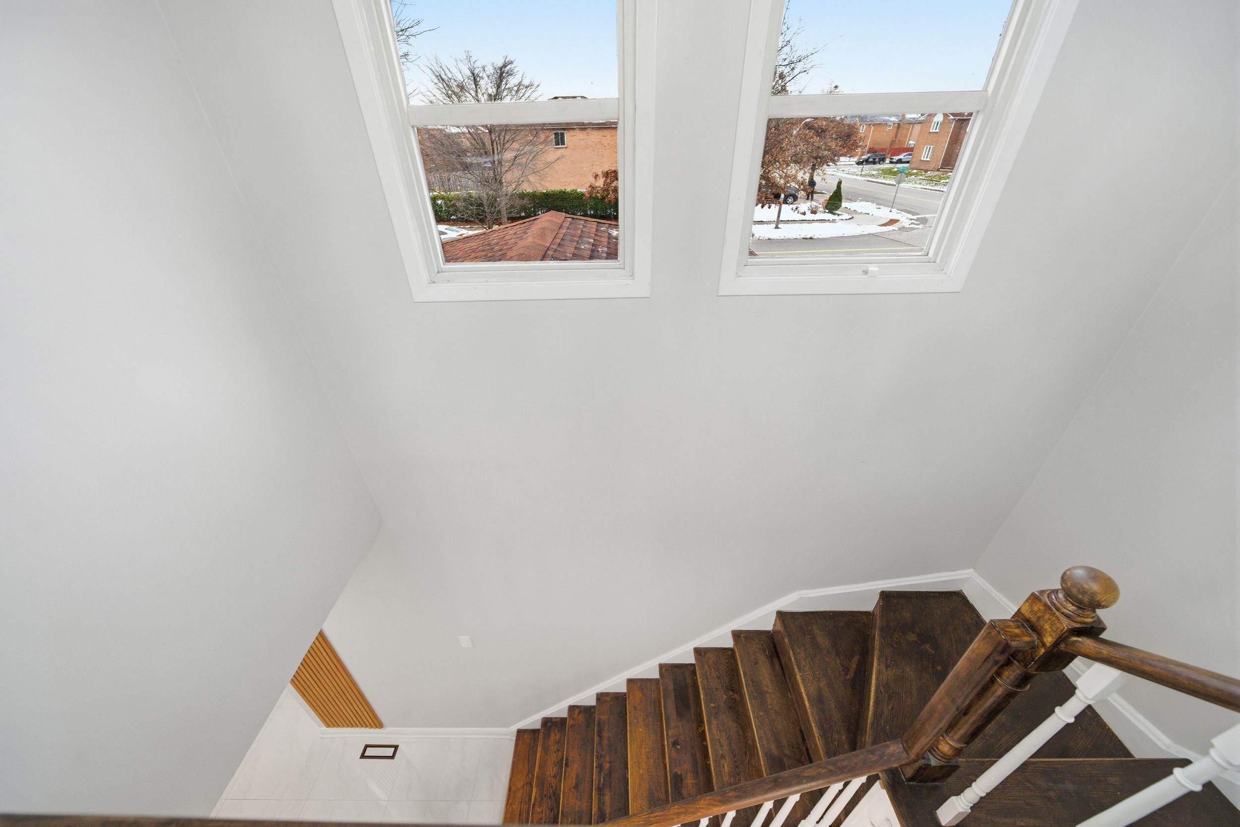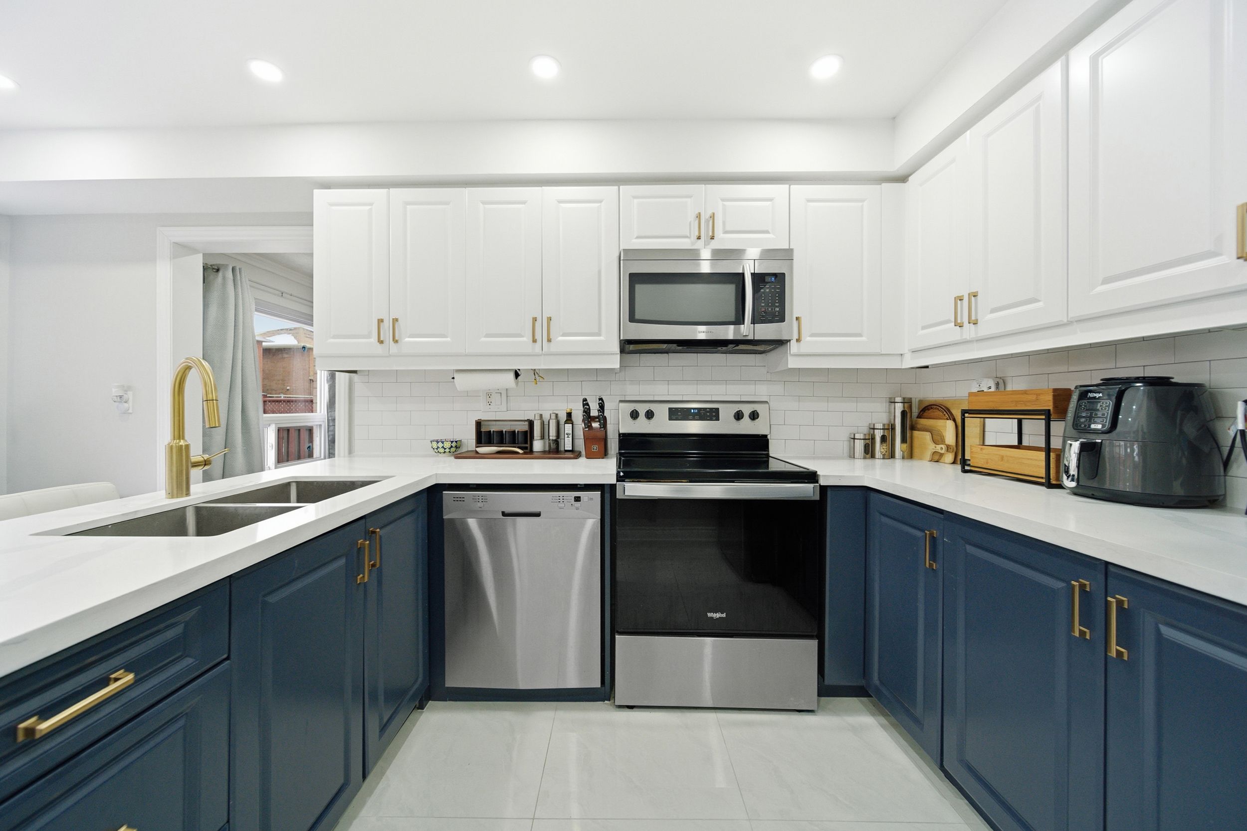 Wonderful opportunity to own a turnkey house in a high-demand area. Simply move in and enjoy. $$$ spent on renovations! 3 generous sized bedrooms each featuring a beautiful accent wall. The finished basement has a separate entrance, kitchen and 3 piece bathroom. Excellent opportunity for income potential or in-law suite! South-west facing provides a lot of great, natural sunlight. No carpet in the house. Hot water tank owned! Use generously-sized main floor room as combined living/dining, or as a large-family room! Driveway can fit up to 3 cars side by side, along with up to 2 additional cars in the garage. Backyard features a deck, aggregate concrete patio and shed. Whole house has been tastefully upgraded with: engineered hardwood in dining/living (2024), 24x24 tiles in kitchen and foyer (2024), modern bathroom renovations for all main floor bathrooms (2024), zebra blinds throughout house (2024), roof shingles replaced (2025), interior potlights throughout house (2024), exterior potlights (2025), whole house professionally painted (2024), new baseboards throughout main and 2nd floors (2024), quartz kitchen countertops (2024), generously-sized aggregate concrete patio (2025). Close to 407, shopper's world mall, places of worship, schools and rec centre!