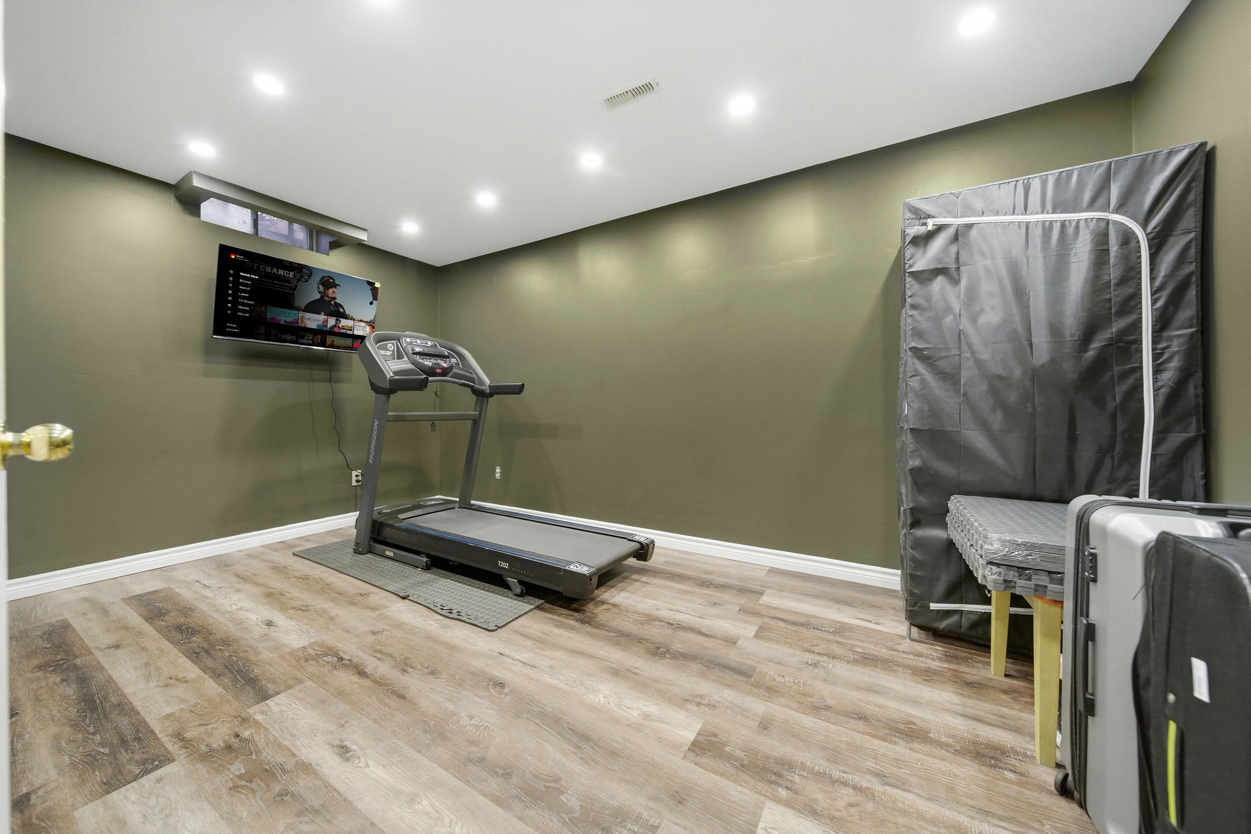 • Finished basement with separate entrance, kitchen, and bathroom.