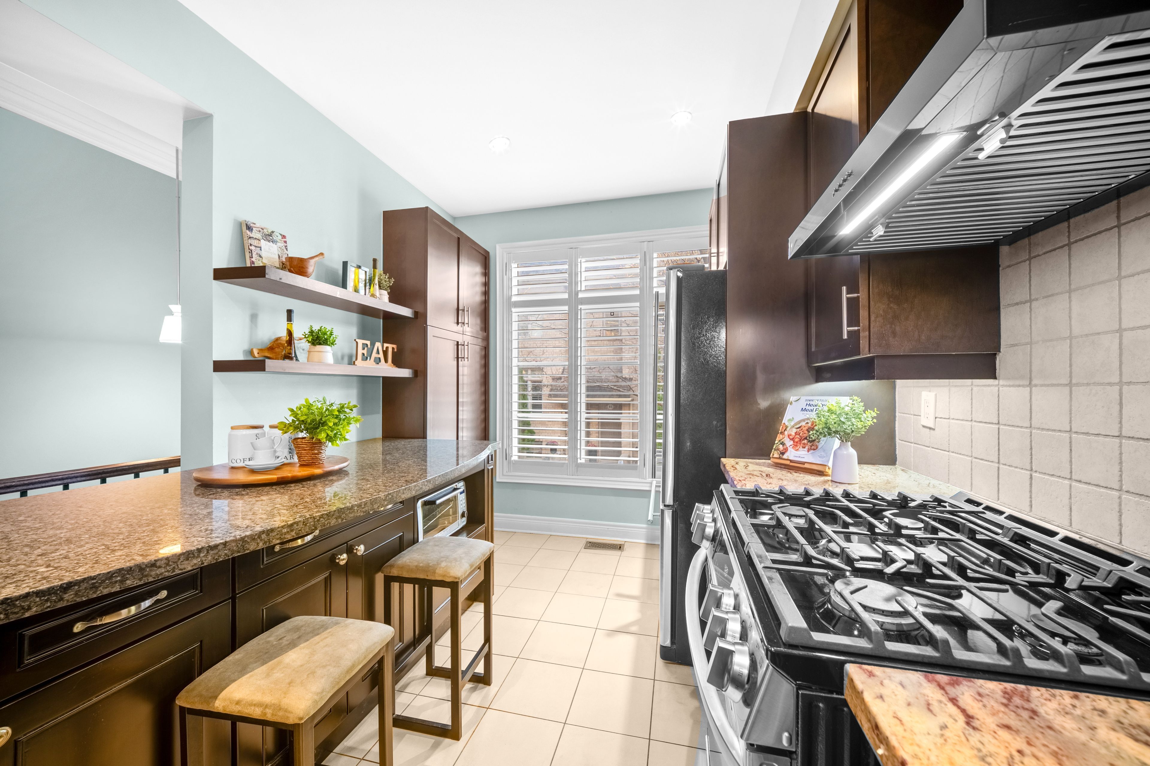 Meticulously maintained executive style freehold 3 br townhome dunpar built. Situated in an upscale enclave, walking distance to islington subway! Open concept gourmet kitchen w/maple cabinetry, pot lights, s/s appliances, w/out to deck. 3rd flr master retreat w/gas fireplace w/in closet, spa like bath. Hardwood flrs throughout. Lower lvl den/office, access 2 car garage from lower lvl. Common elements fees, $165. 00 for snow removal, landscape & garbage removal