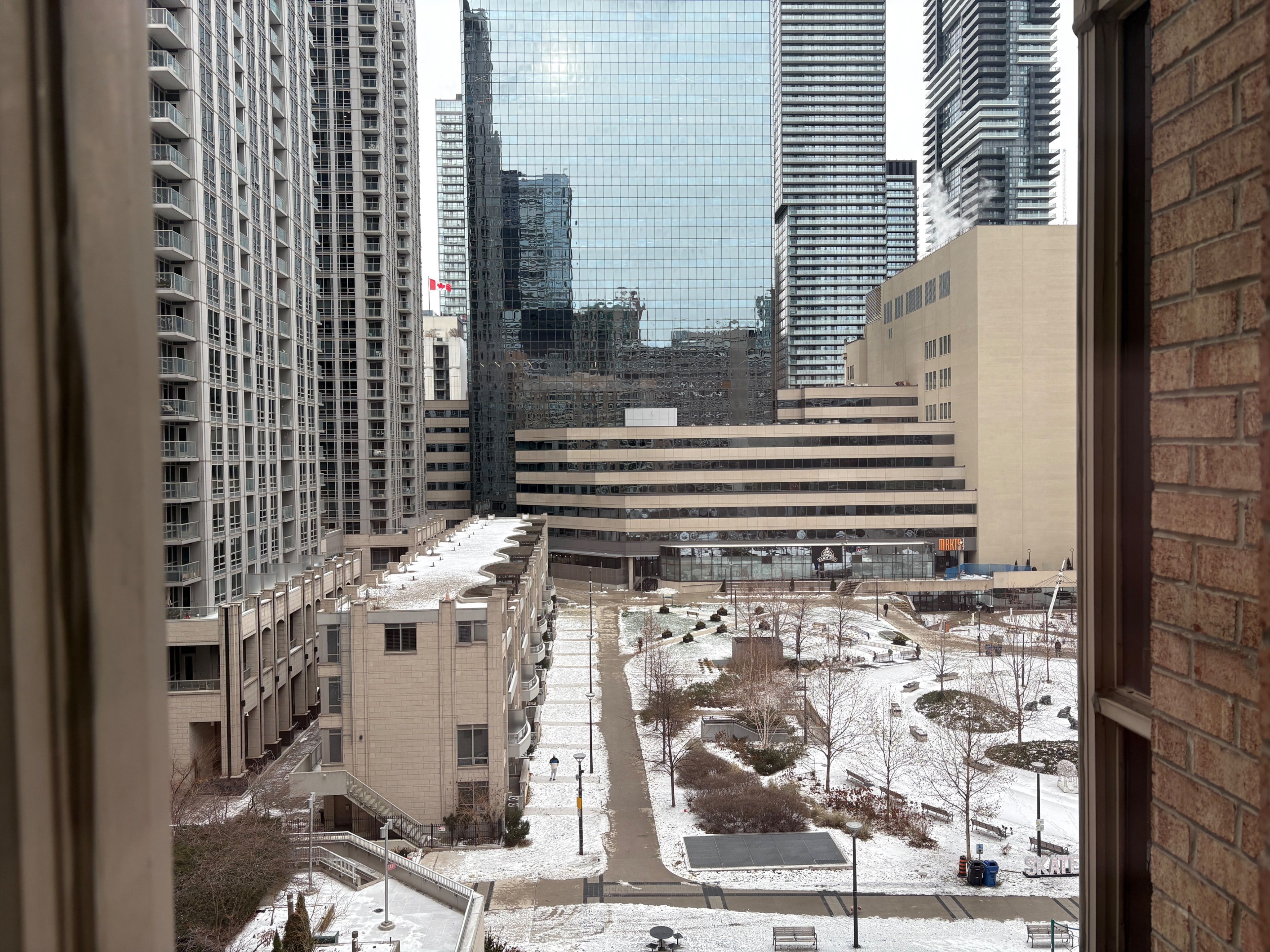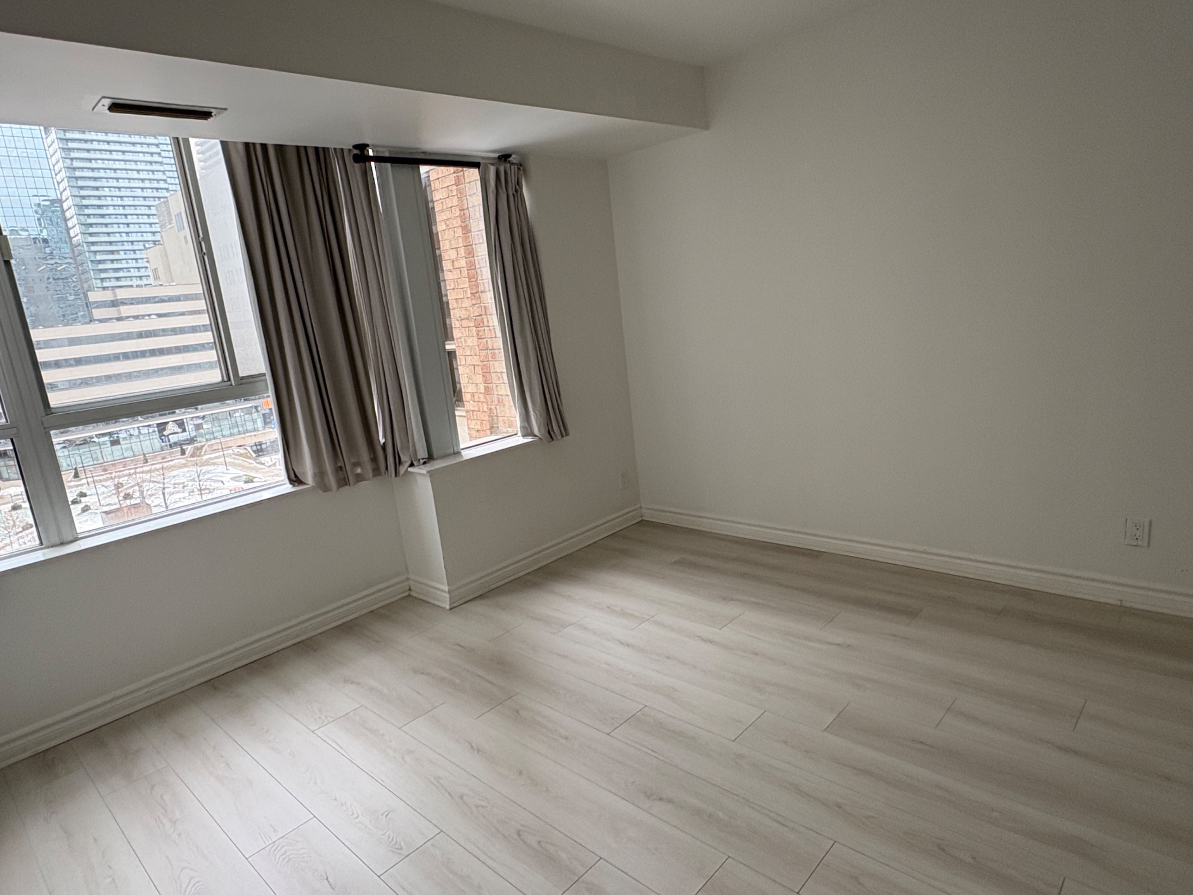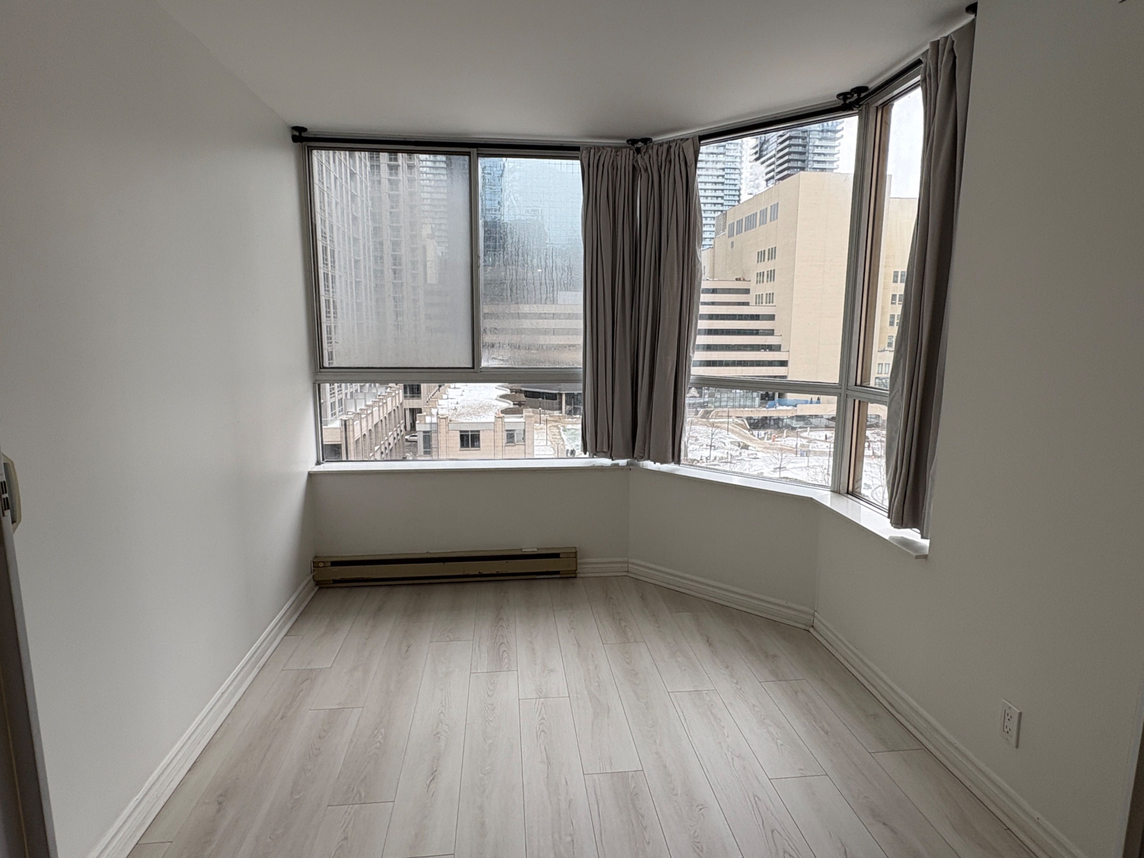 Welcome to the liberties condos iii, one of the most convenient buildings along bay st w indoor access to college station and the shopping centre! Recently renovated unit includes brand new kitchen, appliances, flooring and painting throughout! All utilities + basic cable included! Parking is available at an extra cost! Quiet unit overlooking the courtyard! View of college park, enjoy summer outdoor movies and winter skating! Solarium can be used as a small room with tons of natural light! Excellent facilities: indoor pool w/hot tub, saunas, gym, running track, roof top bbq, party room, billiards, 24hr security.