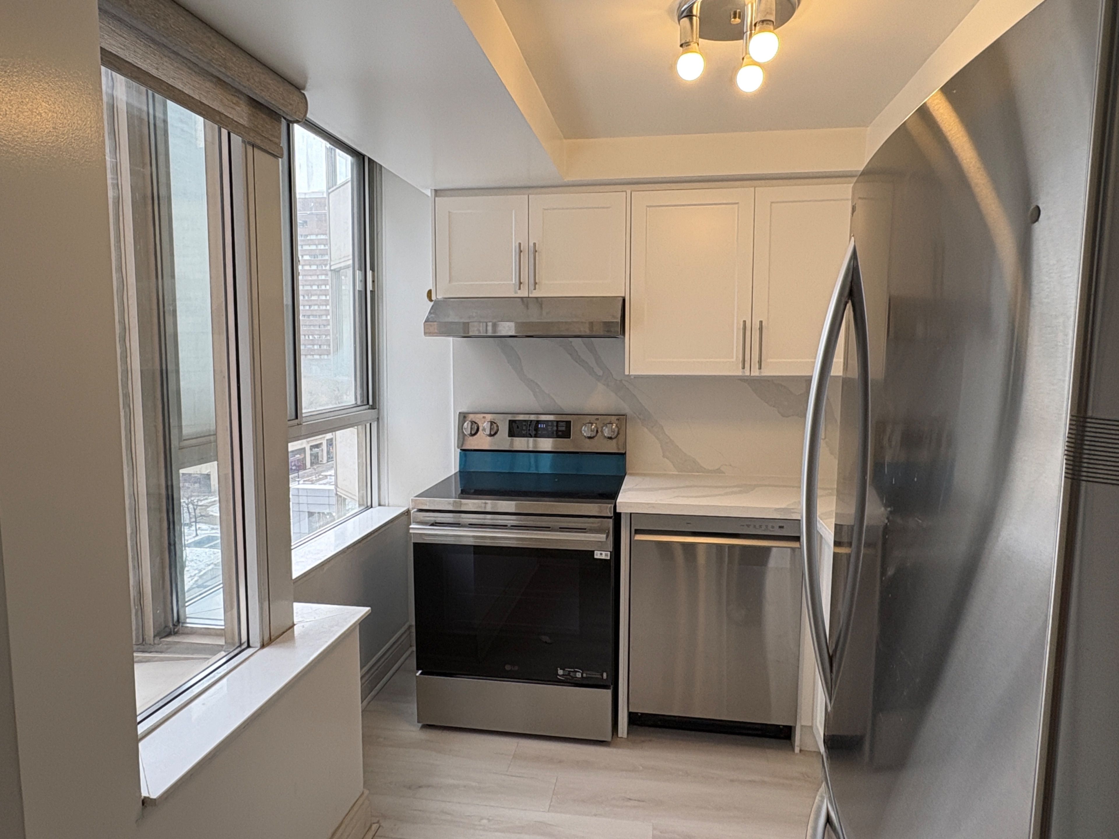• Recently renovated unit with new kitchen, appliances, and flooring.