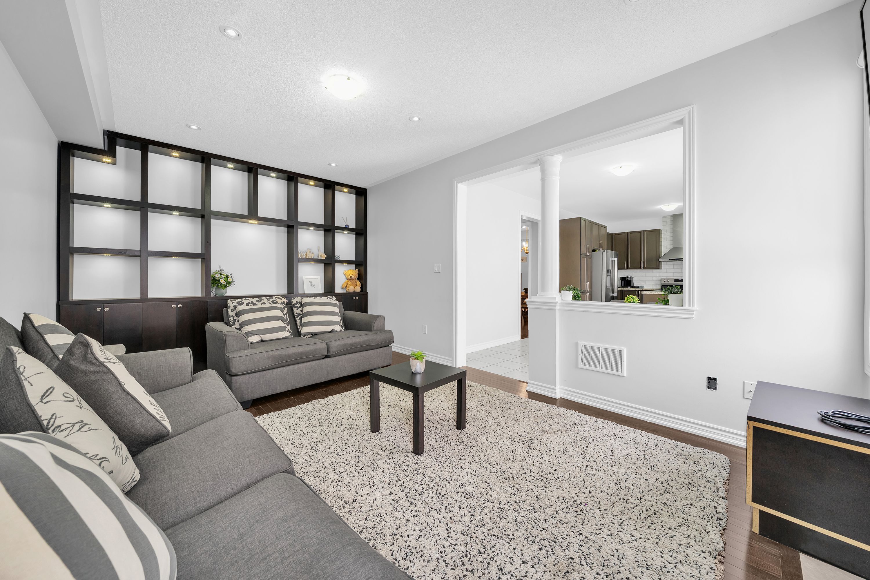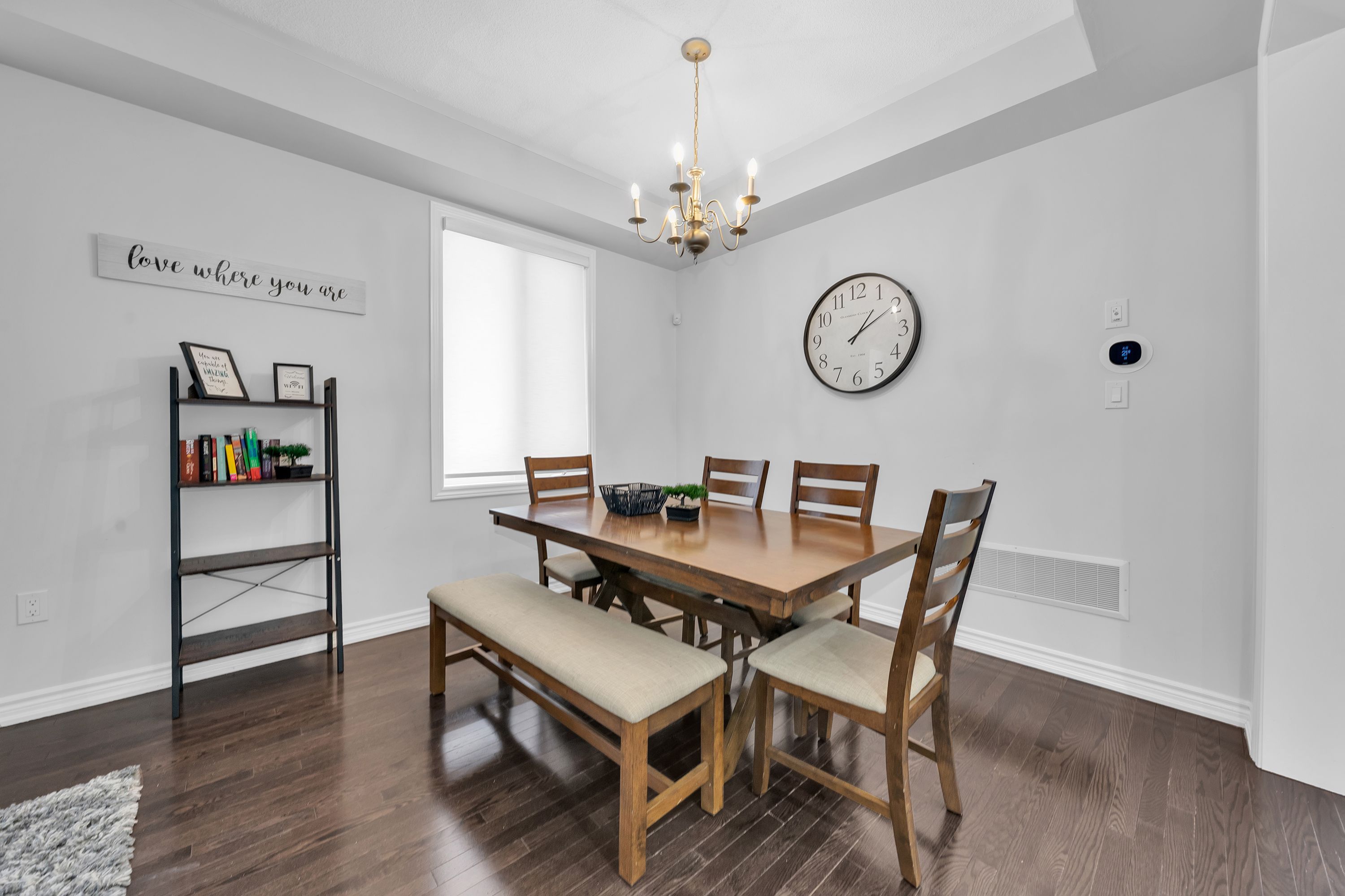 • Combined living and dining room featuring beautiful hardwood flooring.