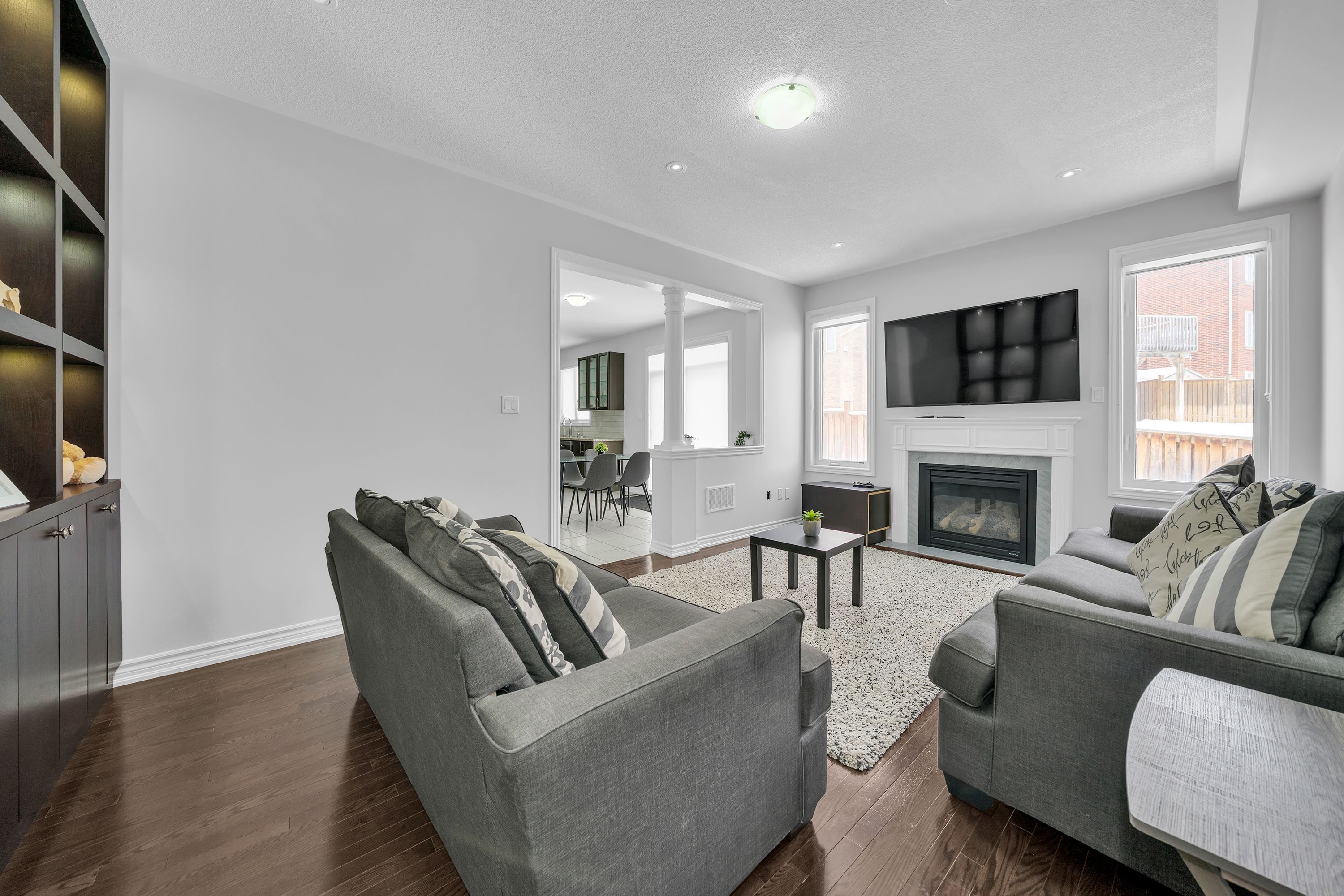 Absolutely stunning all-brick detached home offering 2,868 sq ft, 4 bedrooms, and 4 bathrooms, finished to an exceptional standard throughout. The phenomenal main-floor layout is ideal for both everyday living and entertaining, featuring an upgraded kitchen with granite countertops, centre island, stainless steel appliances, and a walk-out to the backyard. The combined living and dining room showcases hardwood flooring, while the spacious family room features a gas fireplace, pot lights, and built-in shelving. A dedicated main-floor office provides an ideal work-from-home setup. Upstairs, the primary suite offers a private retreat with hardwood flooring, walk-in closet, and a spa-like 4-piece ensuite with soaker tub, complemented by the convenience of an upper level laundry room. Ideally located on a quiet, family-friendly street in ajax, close to public, catholic, and french immersion school options, as well as public transit and highways 401, 407 & 412. Move-in ready and meticulously maintained.