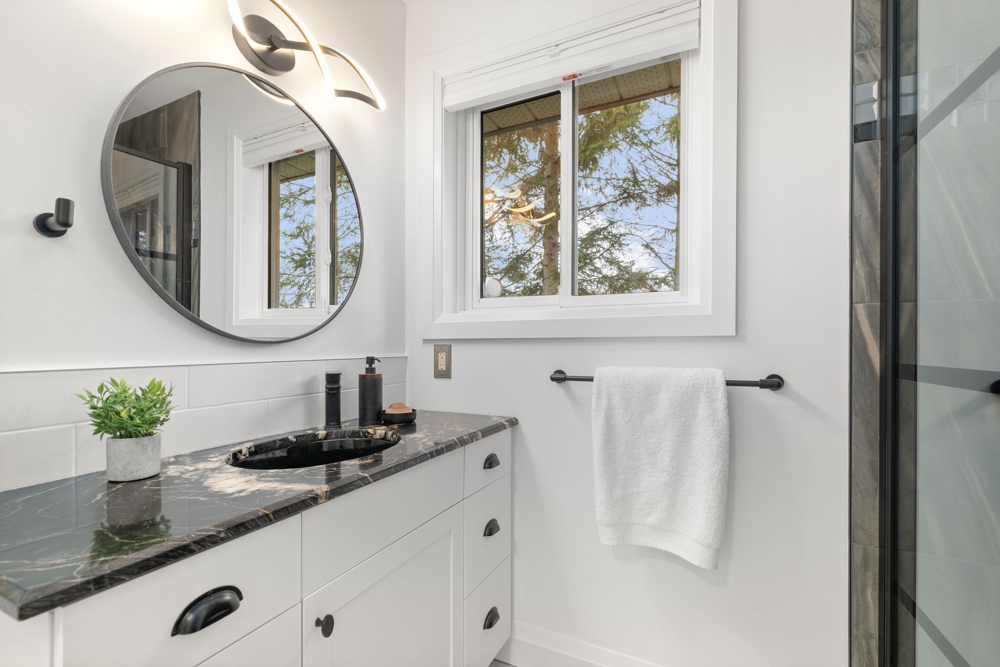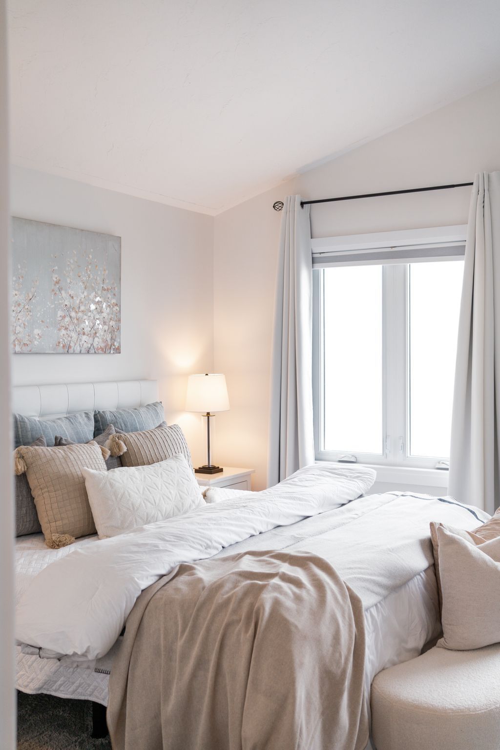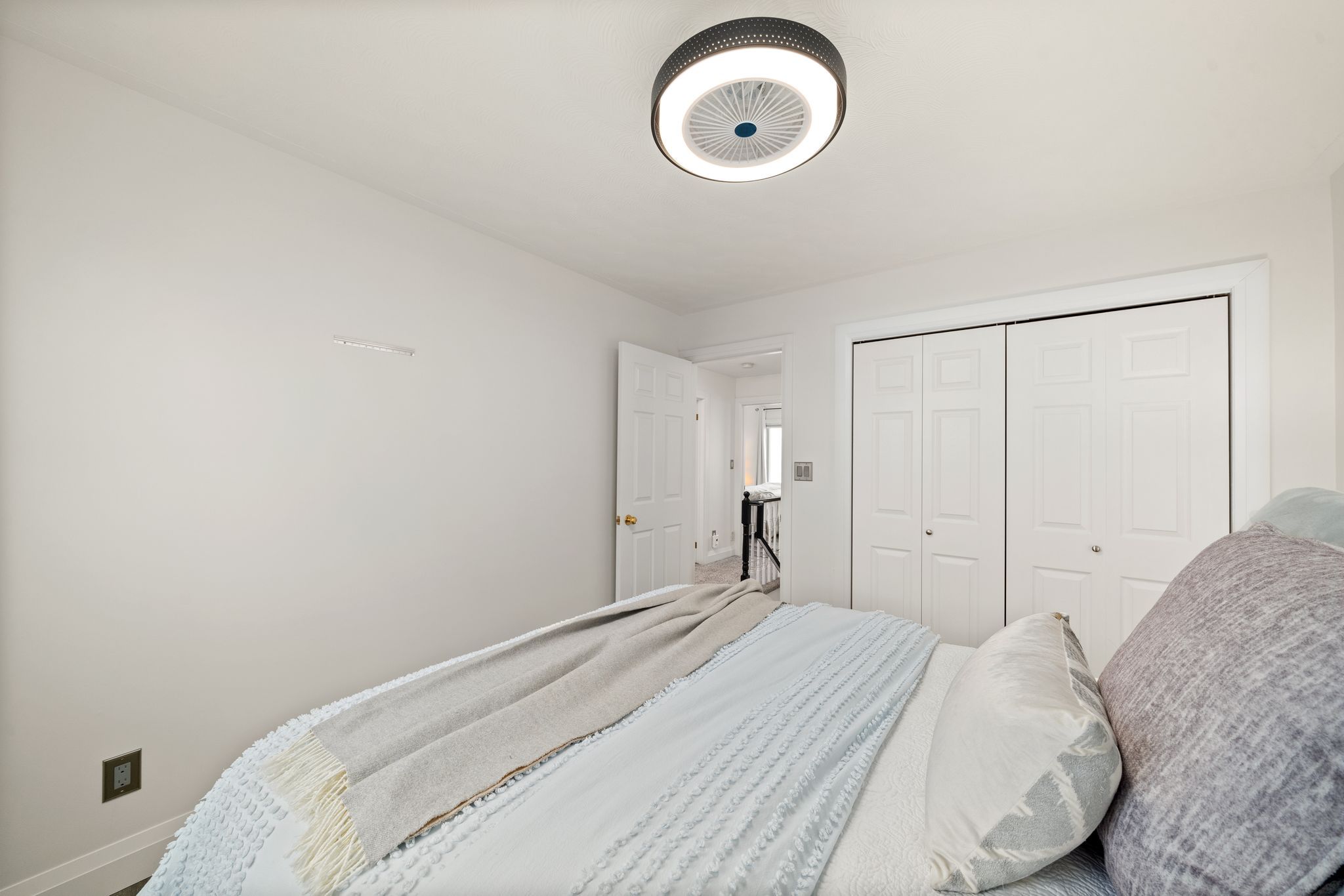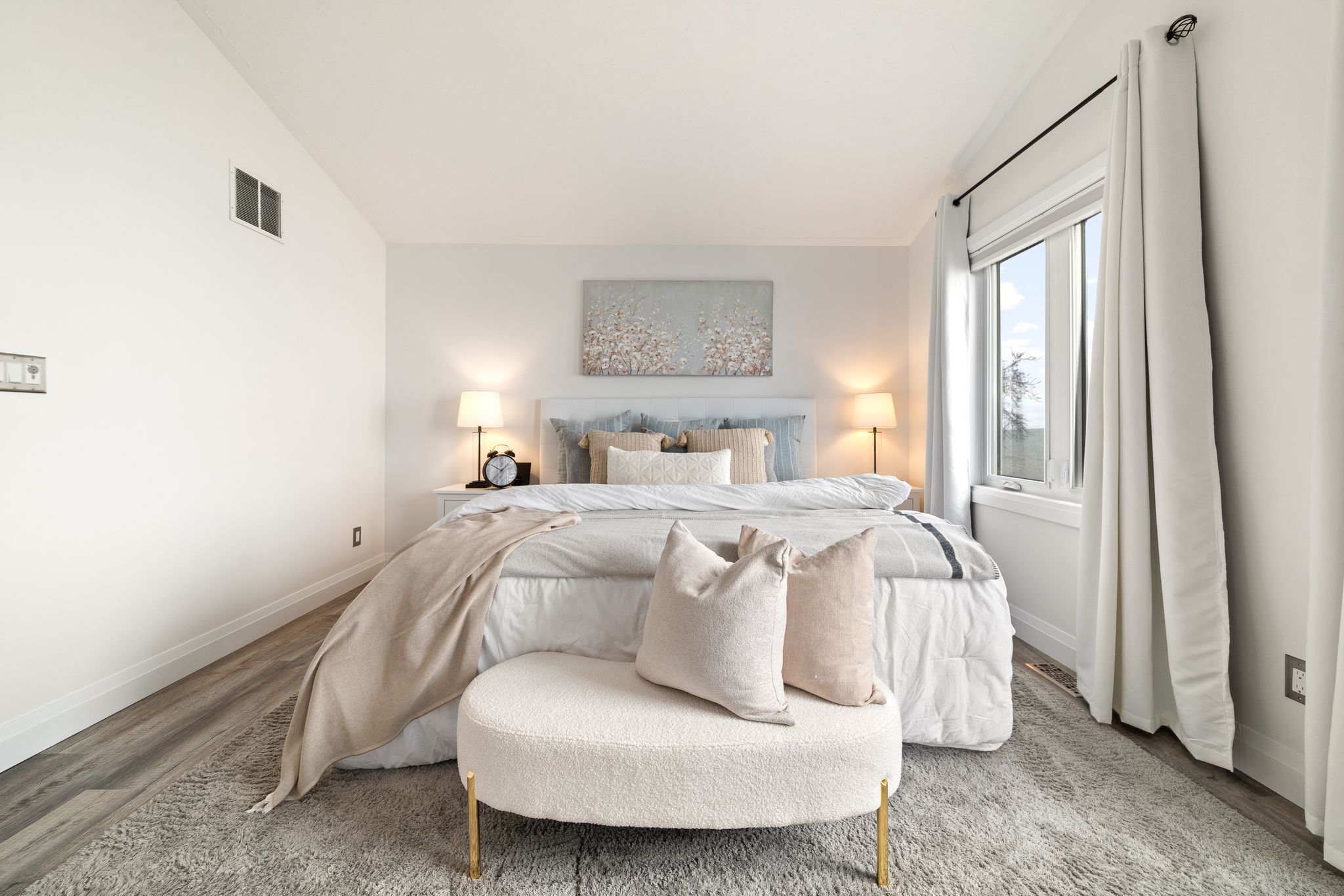 • Spacious primary bedroom with lake views and vaulted ceilings.
