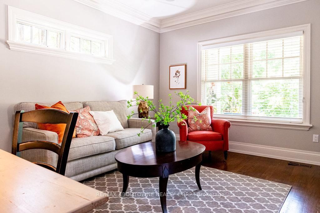 Welcome to 44 head st - an exceptional home in the heart of oakville- steps from kerr village & downtown. Enjoy walkable access to local shops, dining & the lakefront-the perfect blend of convenience & tranquility. Offering almost 2200 sq ft plus fully finished basement ( 1015 sq ft),this remarkable residence offers timeless charm & modern functionality. Set behind pretty gardens, the dark slate wood siding & crisp white trim frame an inviting front porch-perfect for morning coffee or evening wine. Inside, 9' ceilings, hardwood floors, crown moulding & high baseboards create a refined, elevated feel. The entertainer's kitchen showcases granite countertops, a large island, professional-grade appliances & generous storage, seamlessly flowing into the bright, open-concept living & dining areas. A cozy gas fireplace with custom millwork adds warmth, while french doors lead to the beautifully landscaped rear garden-perfect for relaxing or hosting outdoors. A versatile room on the main floor can serve as your personal office or den; it could also be transformed into a separate dining room if desired. Upstairs are 3 spacious bedrooms, each with ensuites with heated floors & walk-in closets . The lower level (9' ceilings) includes a spacious family room plus 4thbedroom, 3pc bath & large laundry room. Storage is no issue in this home with the many custom built-in closets & cabinets. A detached garage with ev charger features a rare basement for even more storage! Plus there is parking for 6 cars on the extra long driveway. A fully fenced private rear yard, & unbeatable walkability to parks, shops, cafes & the waterfront make this turnkey property a rare offering. Meticulously maintained by the current owners, recent updates include powder room renovation (2024), driveway resurfaced (2024), exterior newly stained(2024) & insulation upgraded to r60 (2025). Ideal for empty nesters, downsizers & families. Don't miss this opportunity to experience oakville's historic charm.