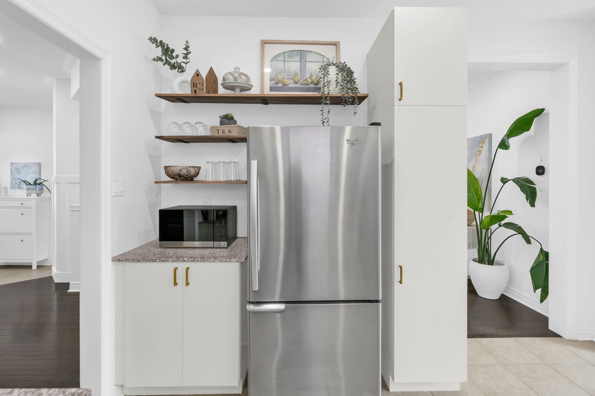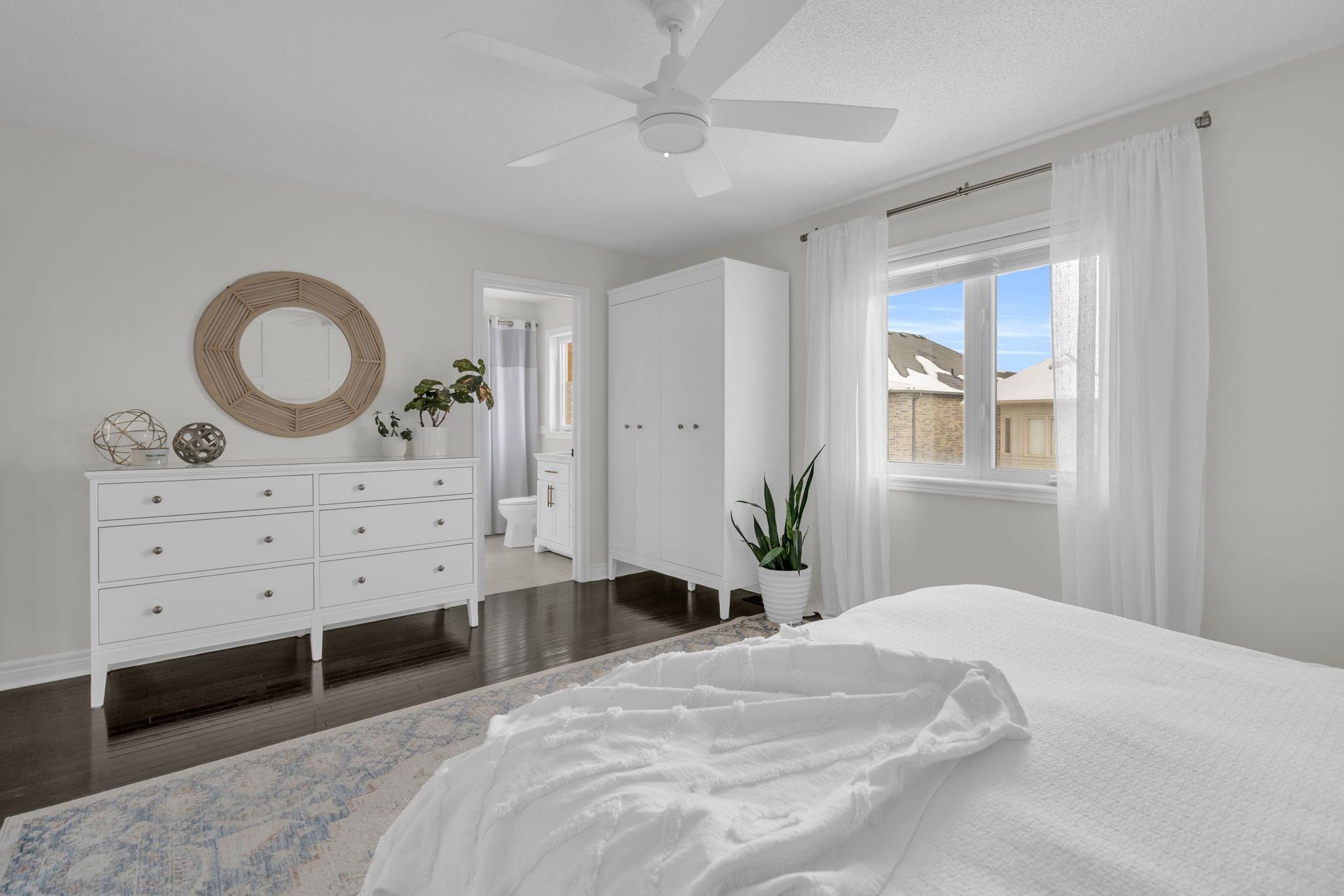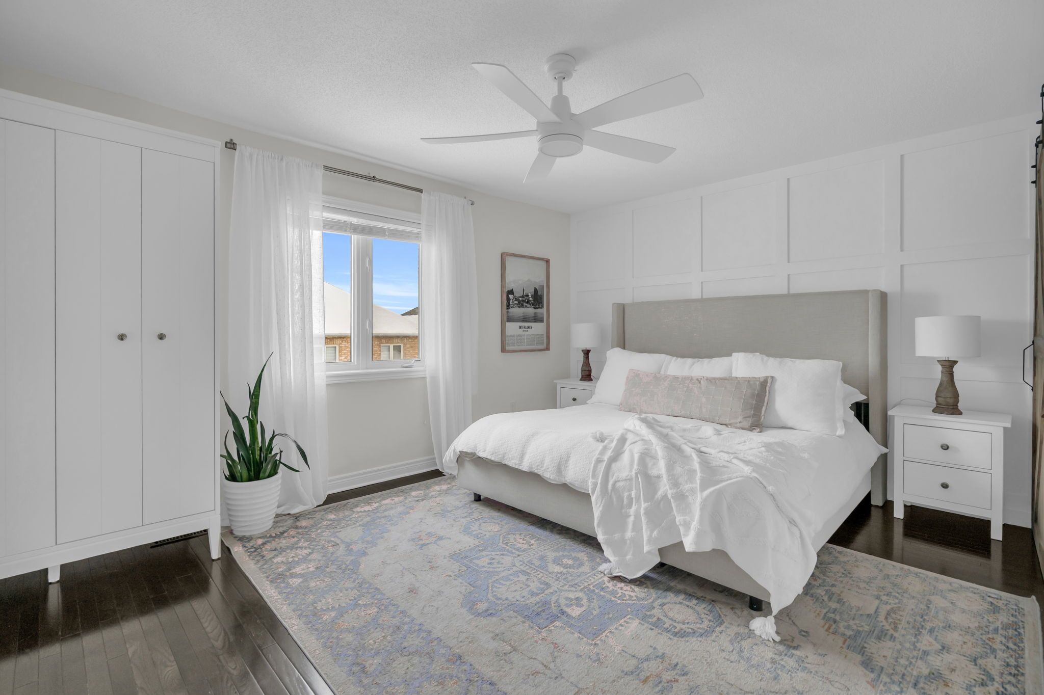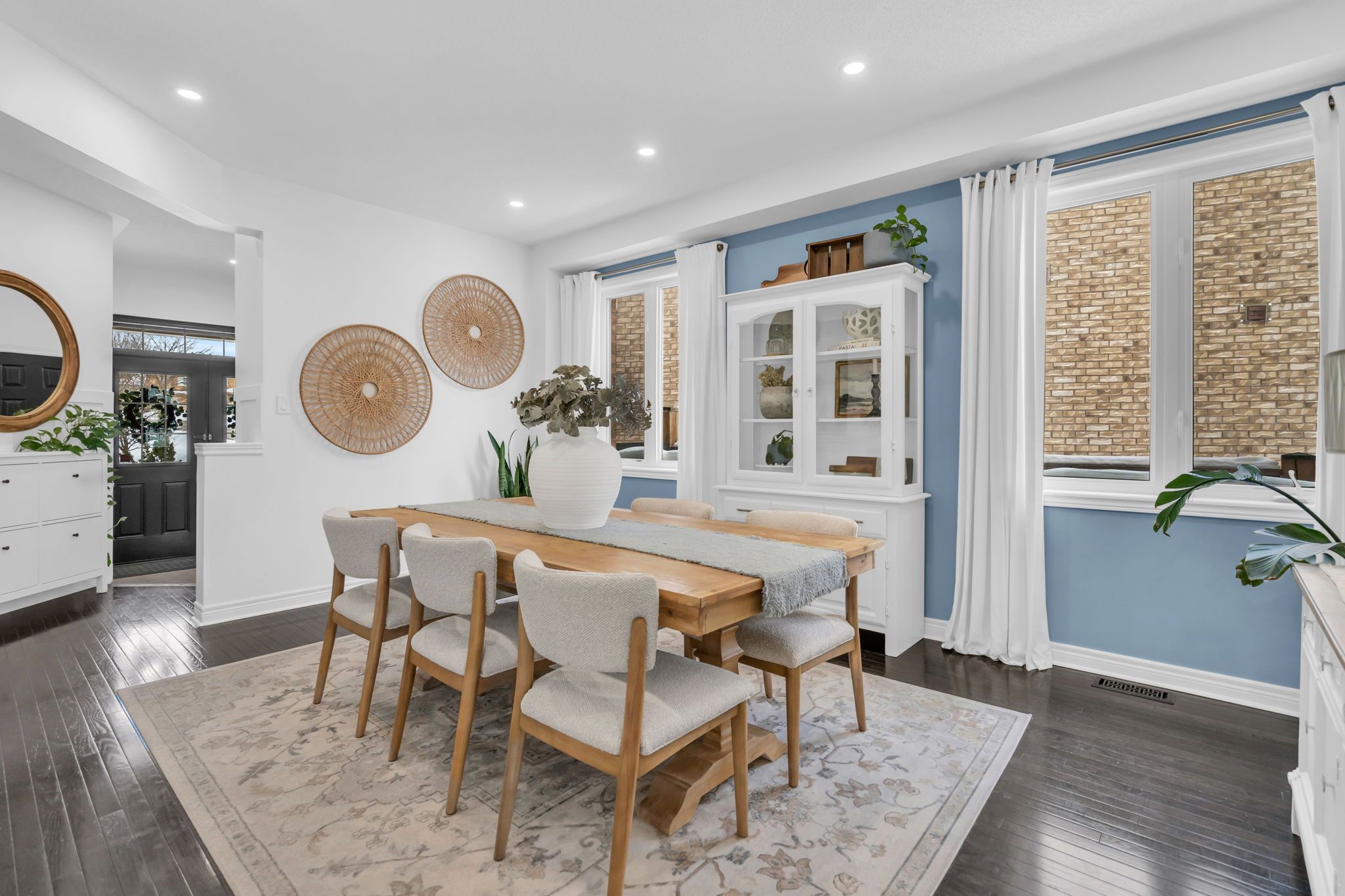 Welcome to this stunning 4-bedroom home nestled on a quiet street in the highly sought-after harvest hills neighbourhood. Bright and spacious, this carpet-free home features 9-ft ceilings on the main level and gleaming hardwood floors, creating an elegant and inviting atmosphere throughout. The modern eat-in kitchen is designed for both everyday living and entertaining, complete with granite countertops, stainless steel appliances, a stylish backsplash, and a walkout to the deck for seamless indoor-outdoor enjoyment. Enjoy hosting in the large dining room and relax in the beautiful living room, highlighted by a soaring cathedral ceiling and cozy gas fireplace. The upper level offers four spacious bedrooms, including a generous primary retreat featuring a walk-in closet and a private ensuite bath. A convenient and beautifully updated second-floor laundry room adds exceptional functionality for busy family living. Showcasing true pride of ownership, this home is enhanced with designer accent walls, custom trim work, and thoughtful upgrades throughout. Ideally located close to scenic trails, parks, top-rated schools, shopping, hwy 400 and all essential amenities, this exceptional property offers the perfect blend of comfort, convenience, and lifestyle. A true move-in-ready home in one of the area's most desirable communities - don't miss this opportunity.