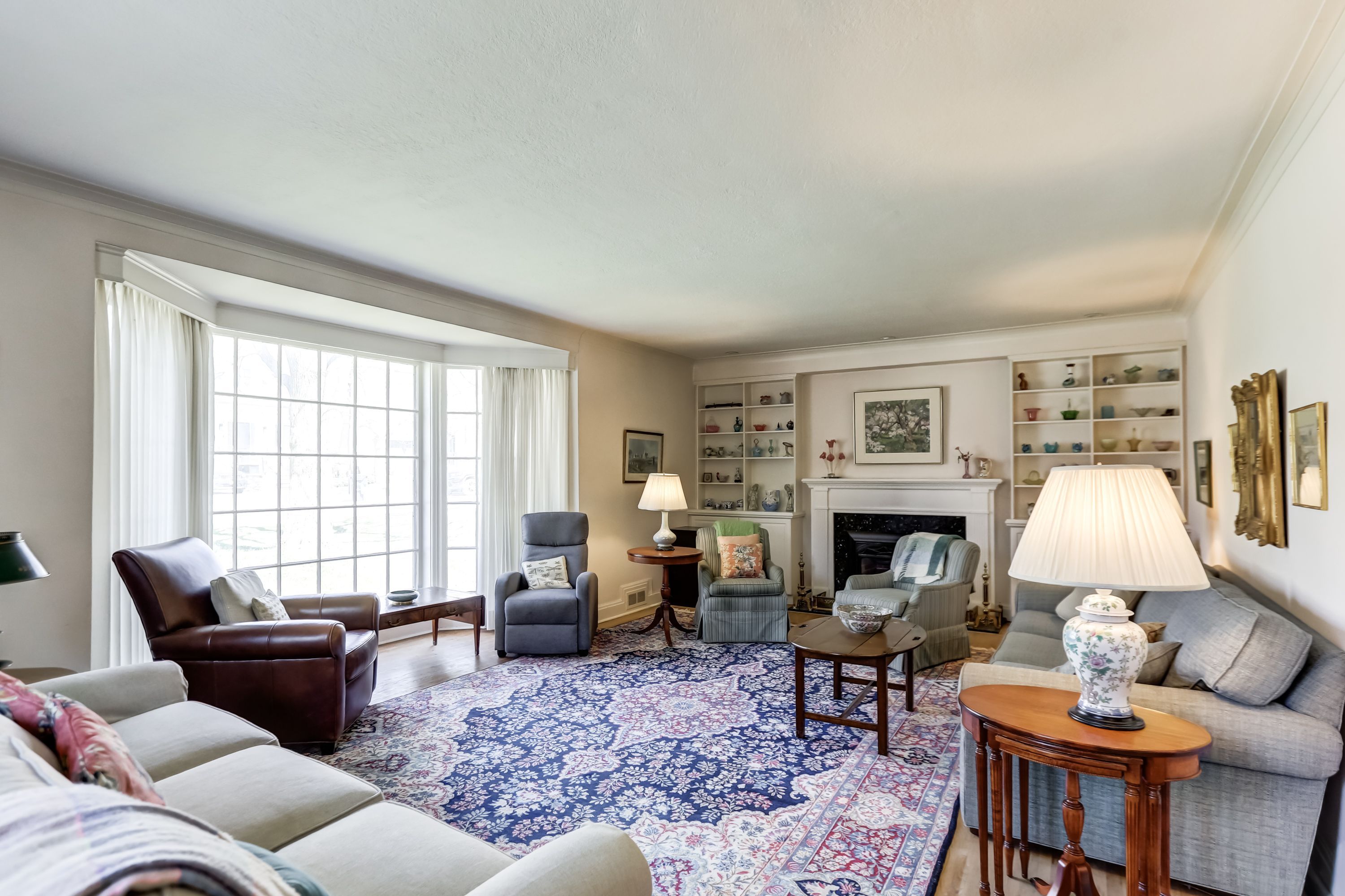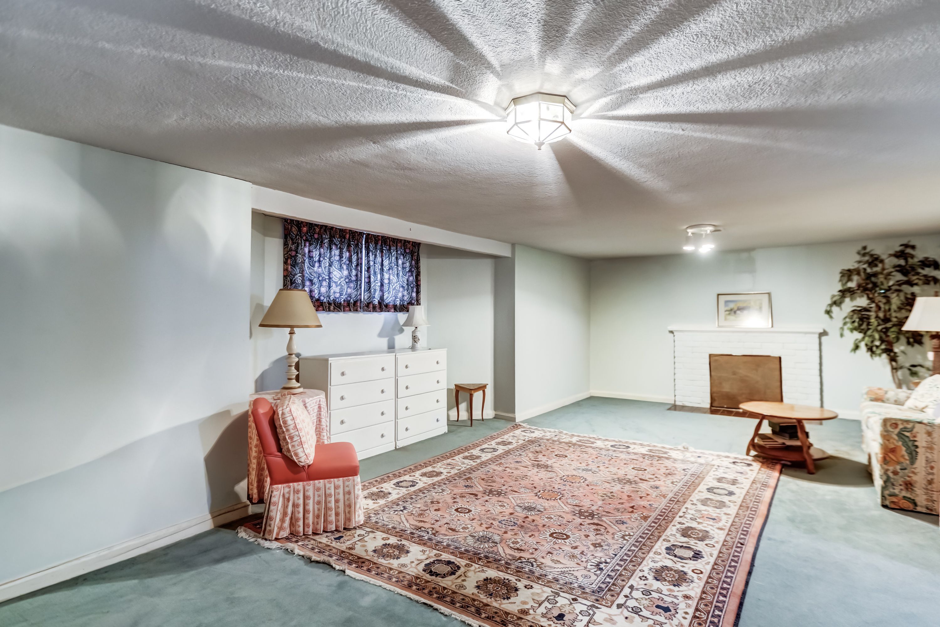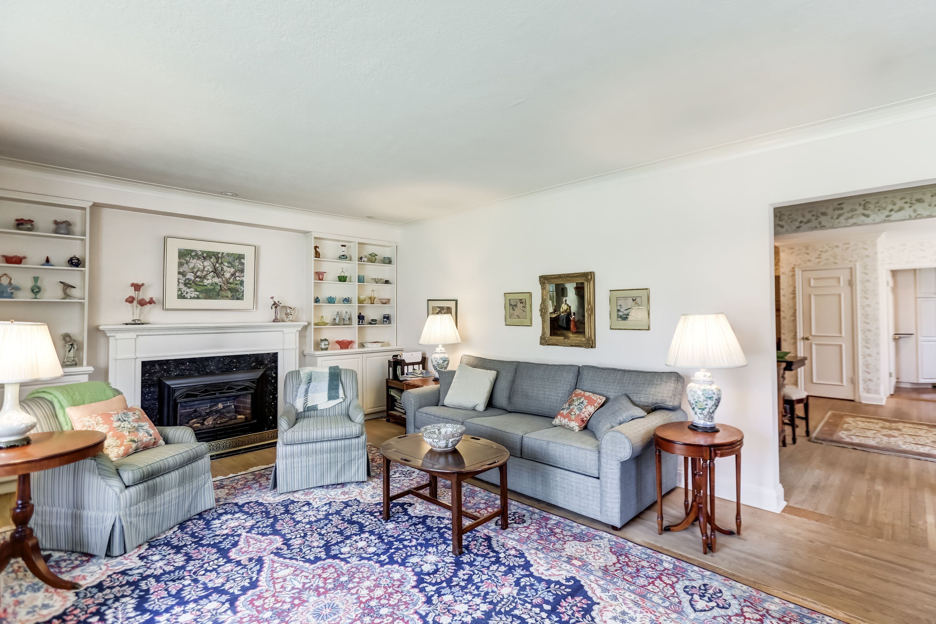 • Spacious living room with a fireplace for entertaining.