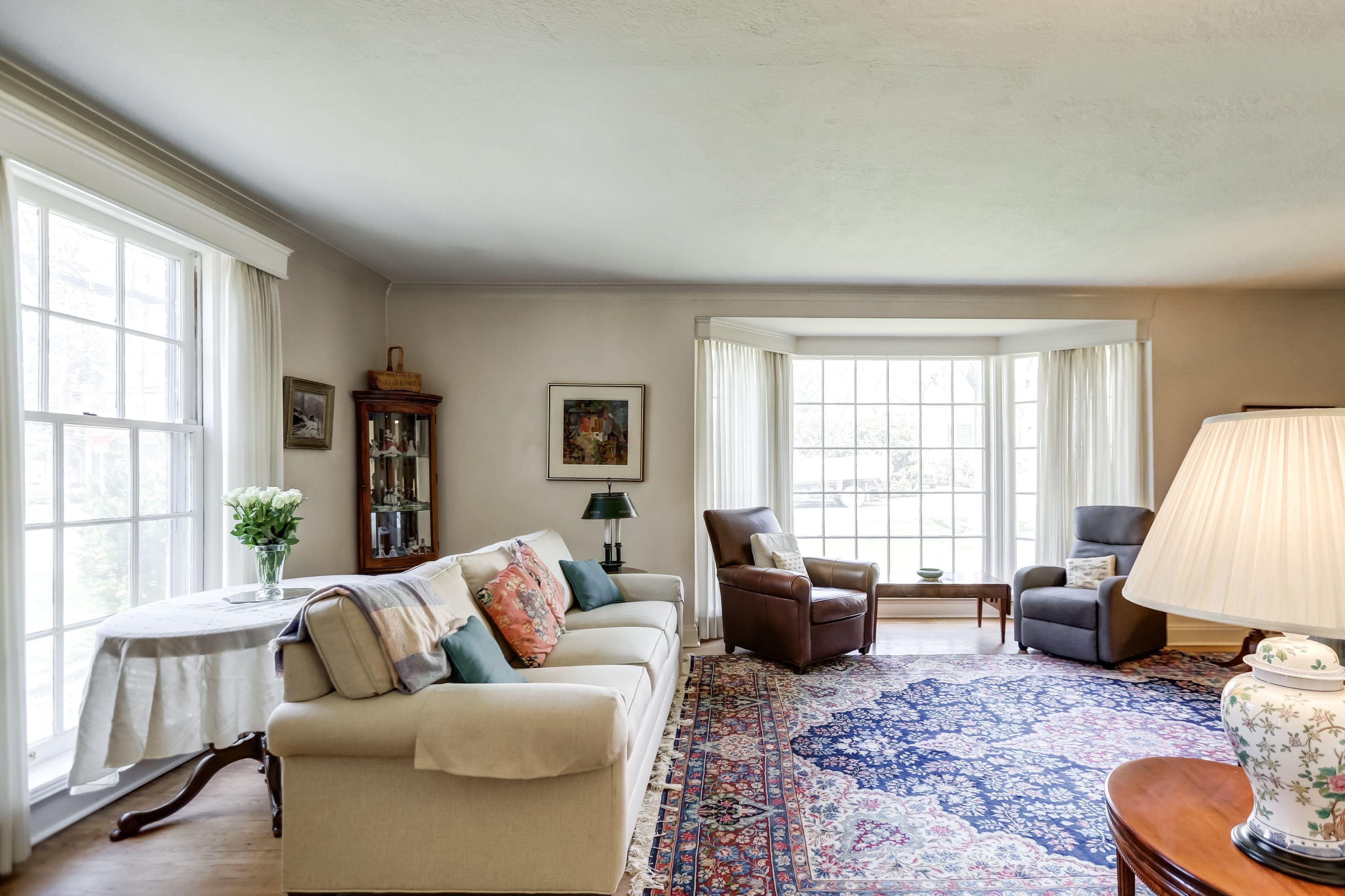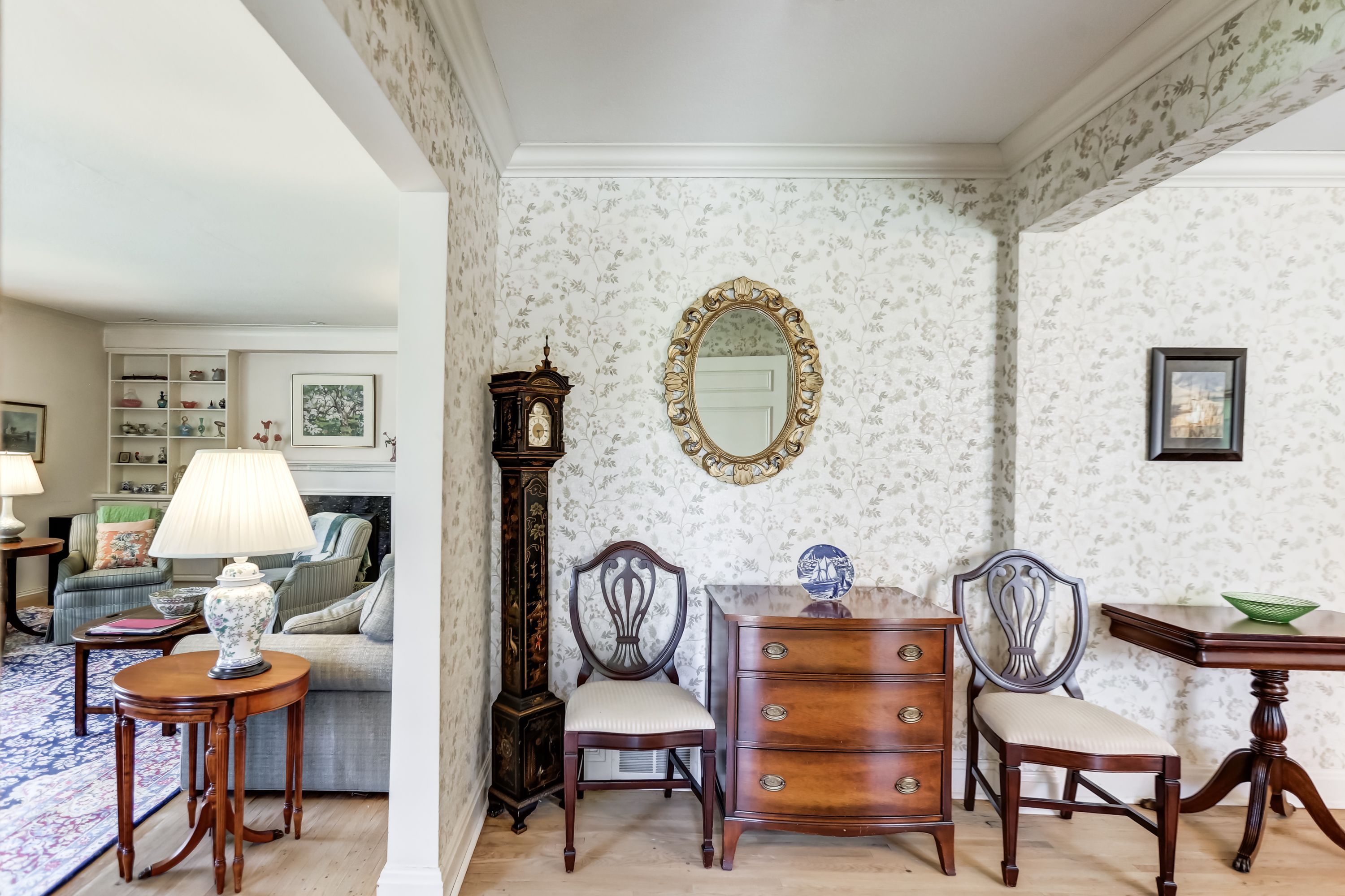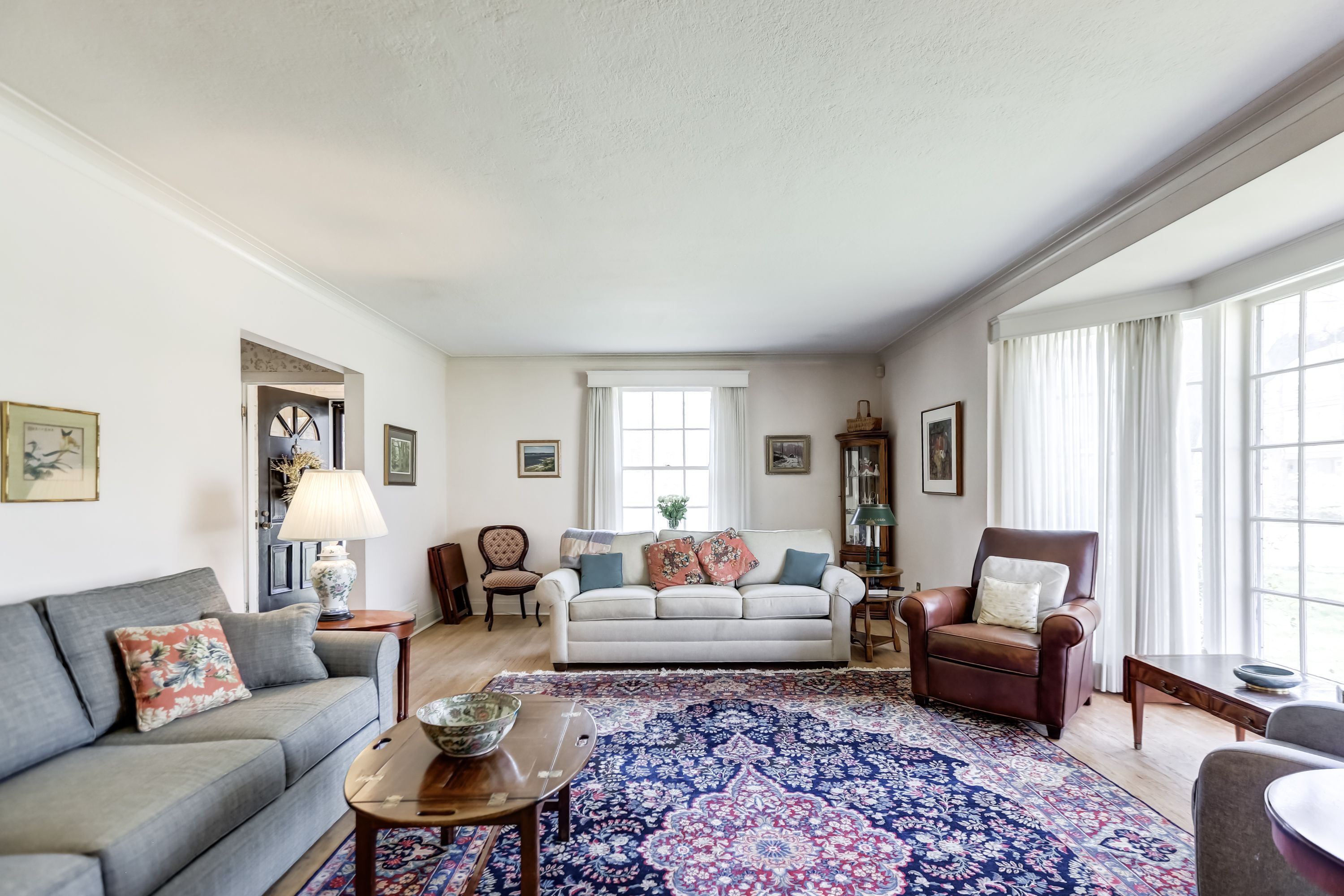 • Spacious living room with a fireplace for entertaining.