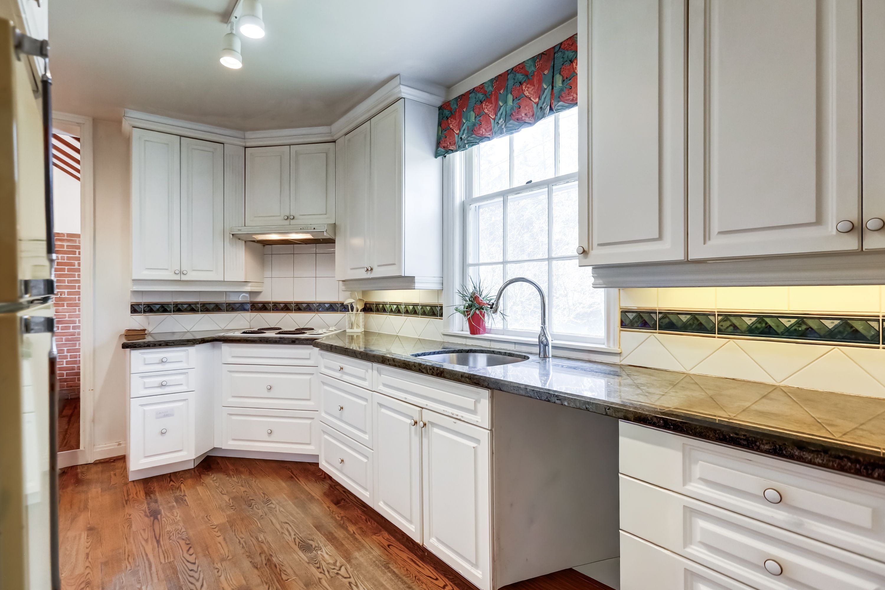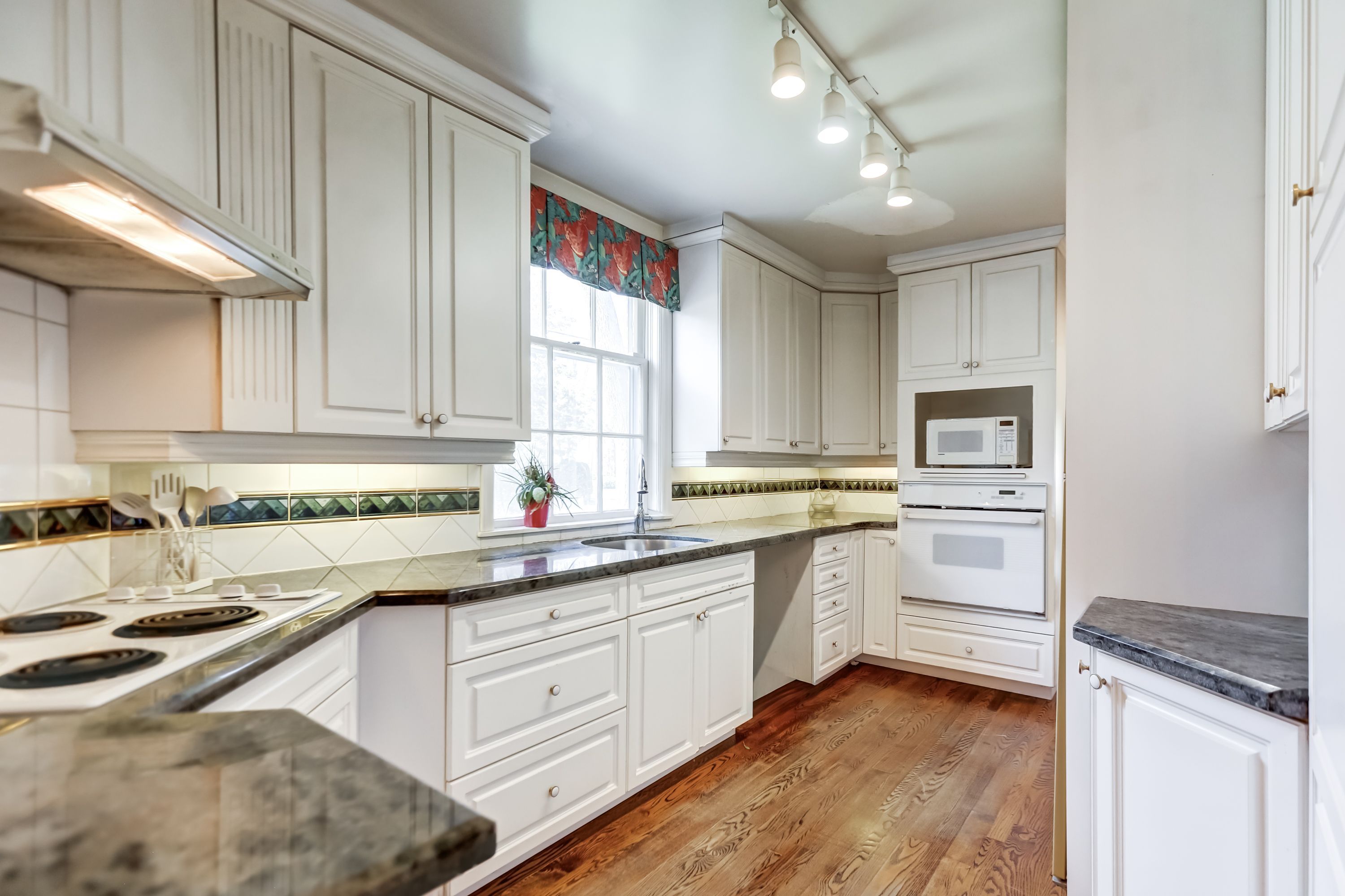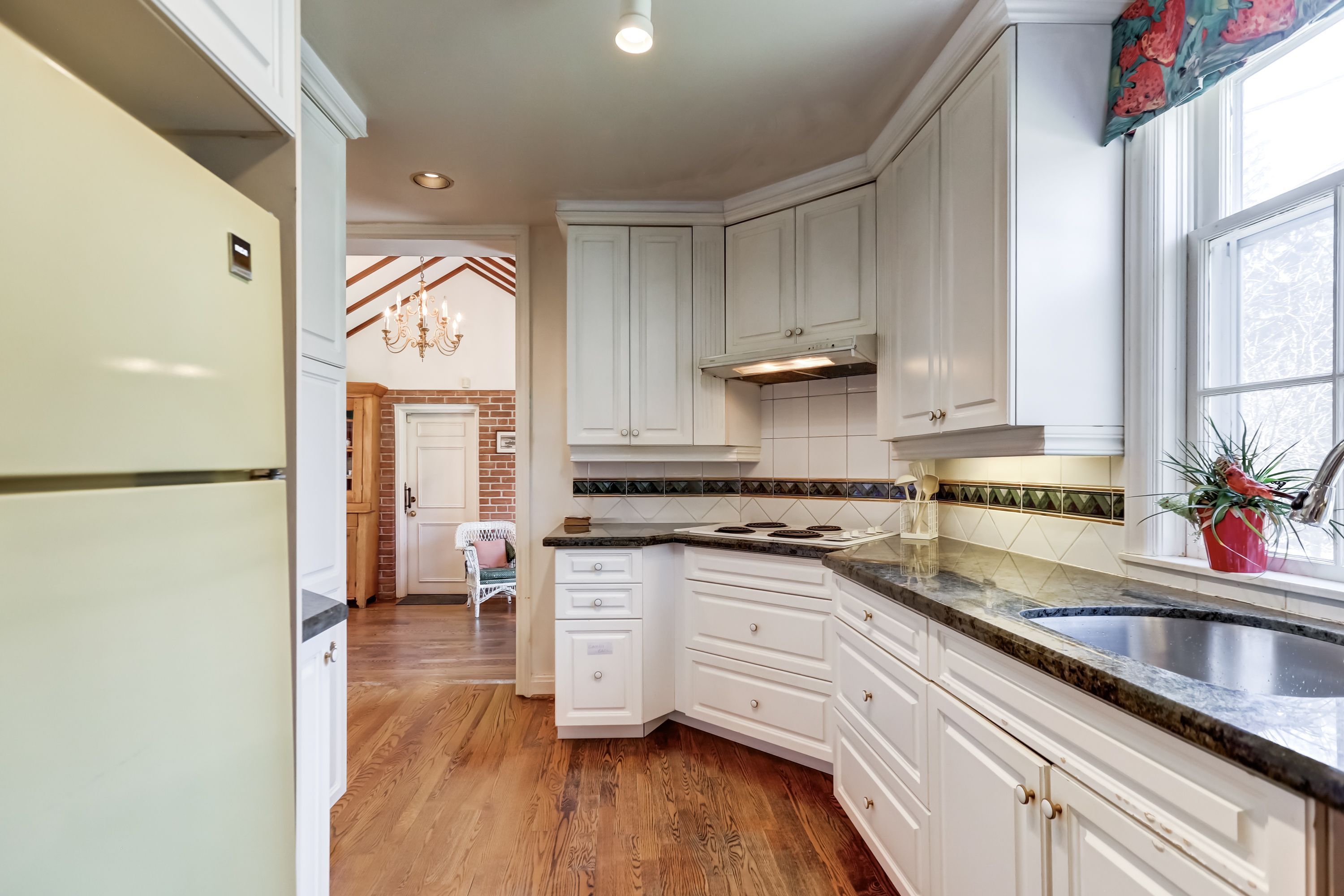 • Hardwood floors throughout the upper levels add charm.
