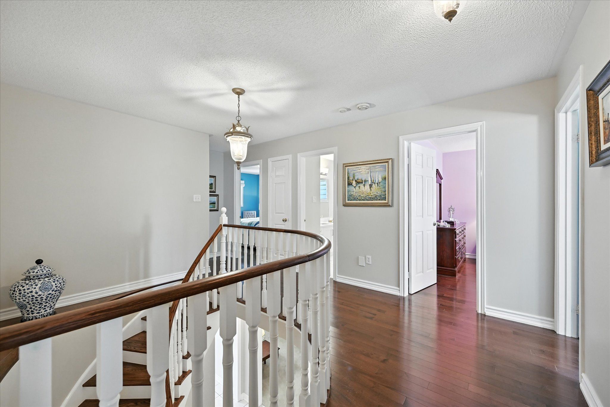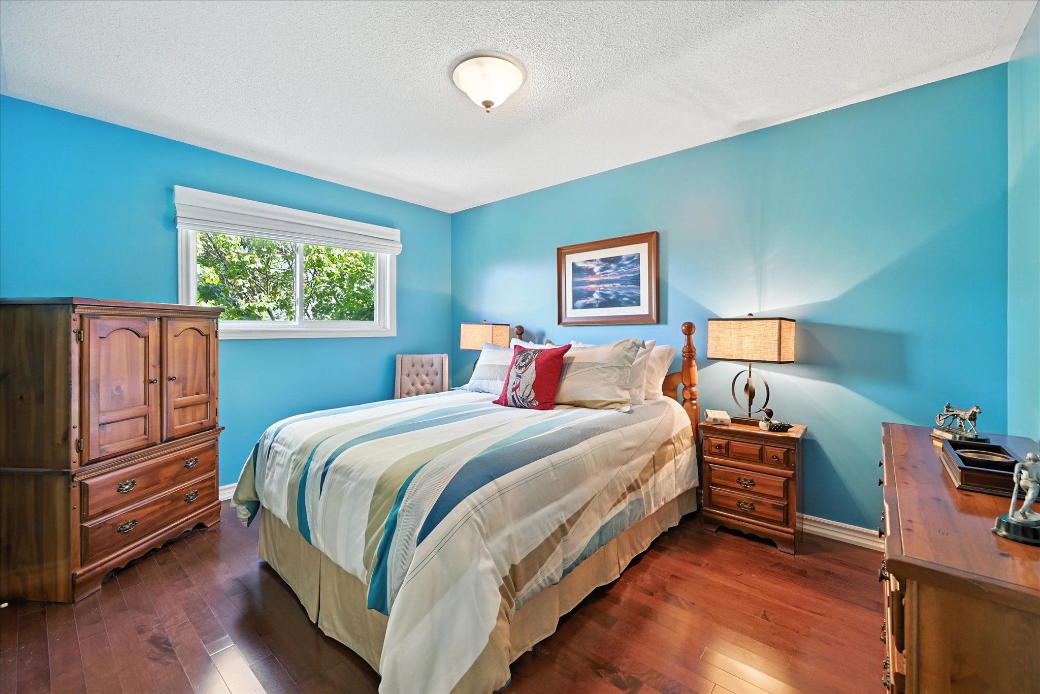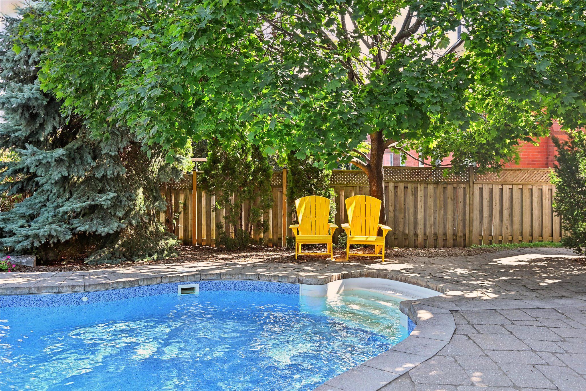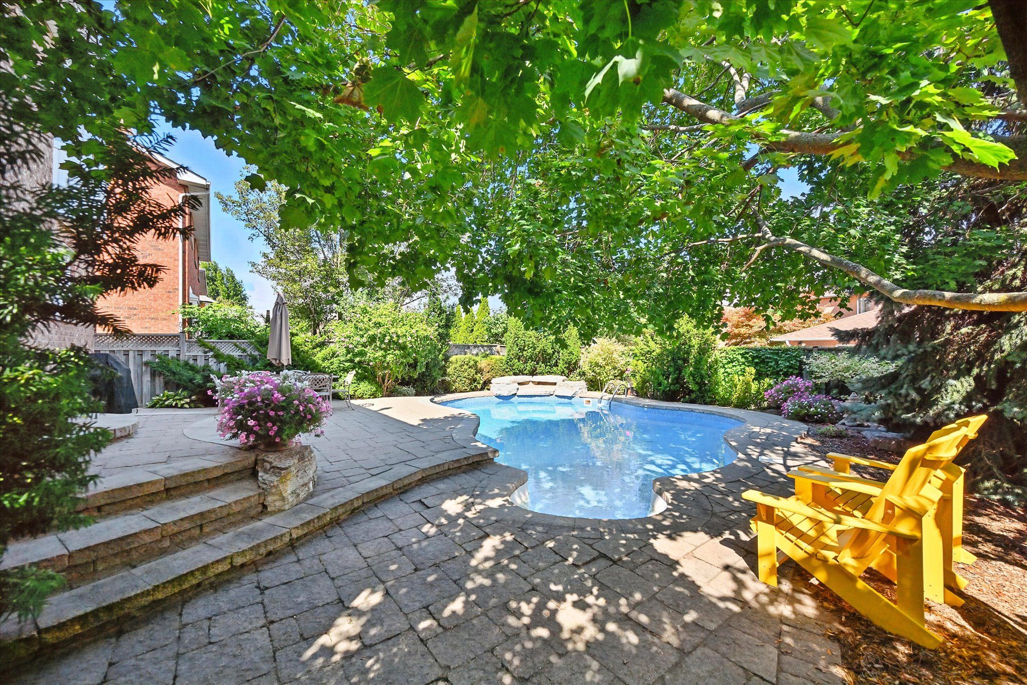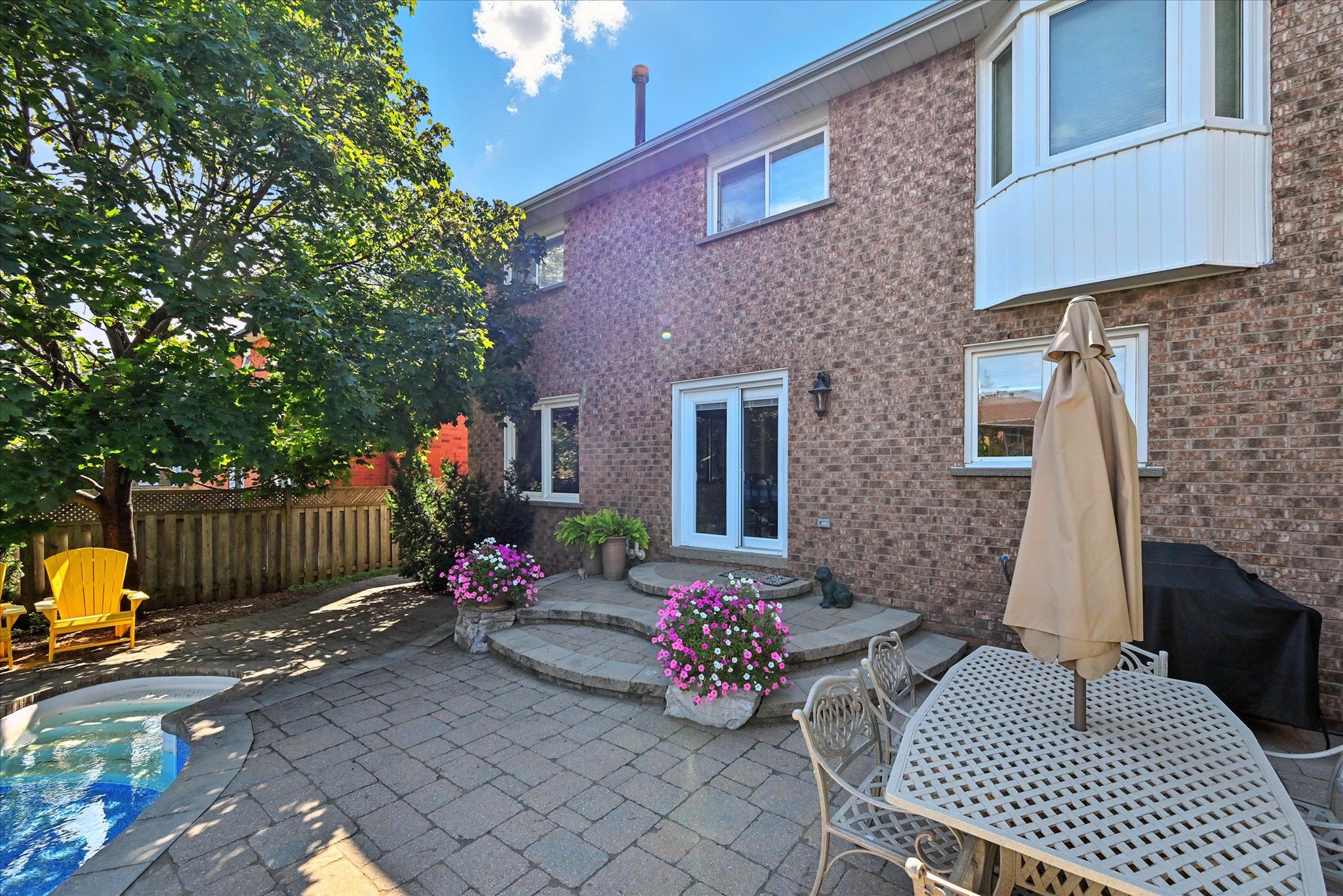 Sought-after river oaks! Quiet, family-friendly street! Welcome to 44 inverhuron trail - an exceptionally well-maintained greenpark-built five-bedroom executive residence thoughtfully designed for comfortable, modern family living. The main level offers elegant open-concept living and dining areas, an inviting family room with a classic brick woodburning fireplace, powder room, and convenient laundry room with direct garage access. The renovated kitchen features granite countertops and flows seamlessly into the bright breakfast area with a large pantry and walkout to the patio. Upstairs, the oversized primary retreat boasts maple hardwood flooring, a walk-in closet plus secondary closet, and a spa-inspired five-piece ensuite complete with double sinks and a relaxing soaker tub. Four additional bedrooms and a well-appointed four-piece bathroom complete the upper level, offering ample space for growing families. The partially finished basement further expands your living space with a versatile recreation area featuring a cozy gas fireplace, three-piece bathroom, and plenty of storage. Additional highlights include extensive maple hardwood flooring, crown moldings throughout the main level, beautifully updated kitchen and bathrooms, two fireplaces, and a two-car attached garage with newer doors and convenient backyard access. Step outside to an incredibly private, low-maintenance backyard oasis, showcasing a 22' x 29' inground heated pioneer saltwater pool with waterfall, stunning natural stone patios, and beautifully landscaped gardens - an exceptional setting for summer entertaining and family enjoyment. Ideally located just steps to holy trinity catholic secondary school and river oaks community centre, and close to parks, extensive trail network, top-ranked schools, shopping, dining, hospital, and everyday amenities. A rare opportunity to own a truly turnkey family home in one of river oaks most desirable locations. This is the lifestyle you've been waiting for!