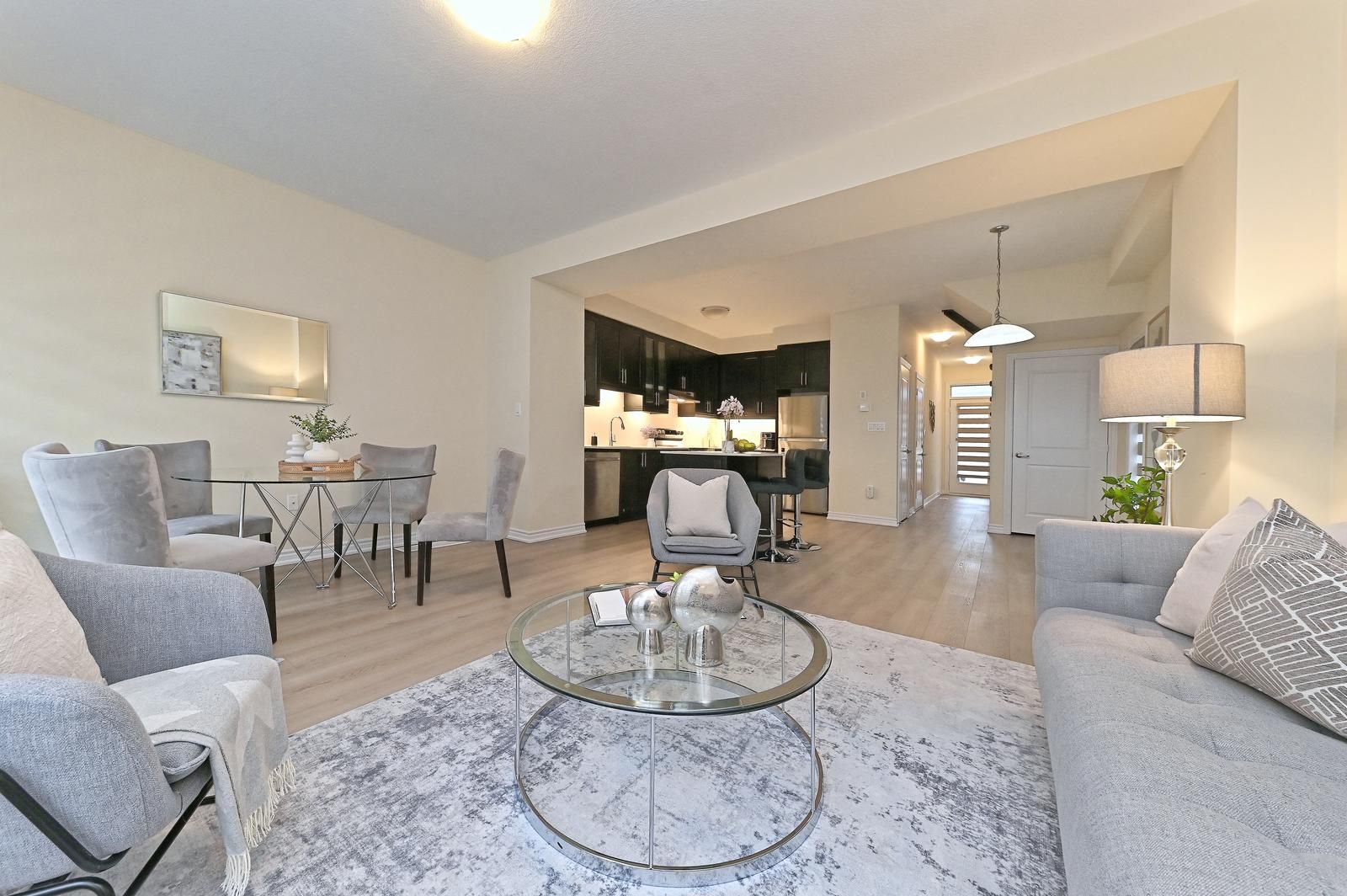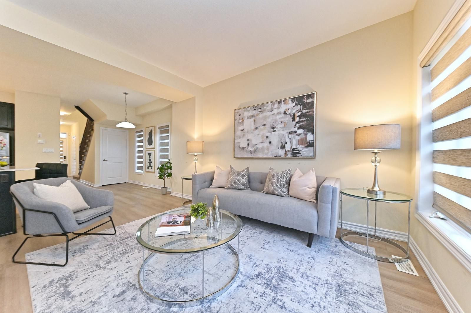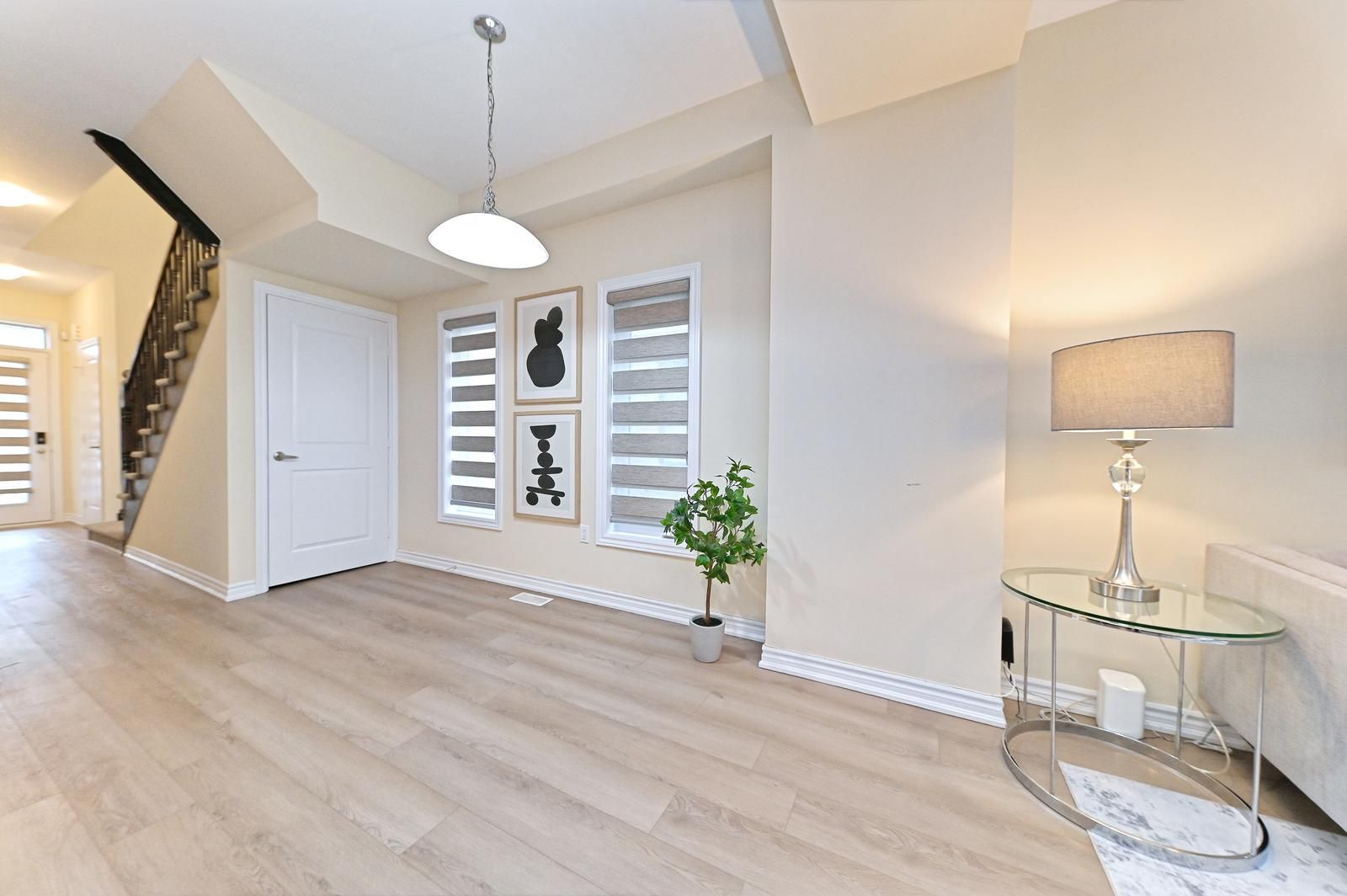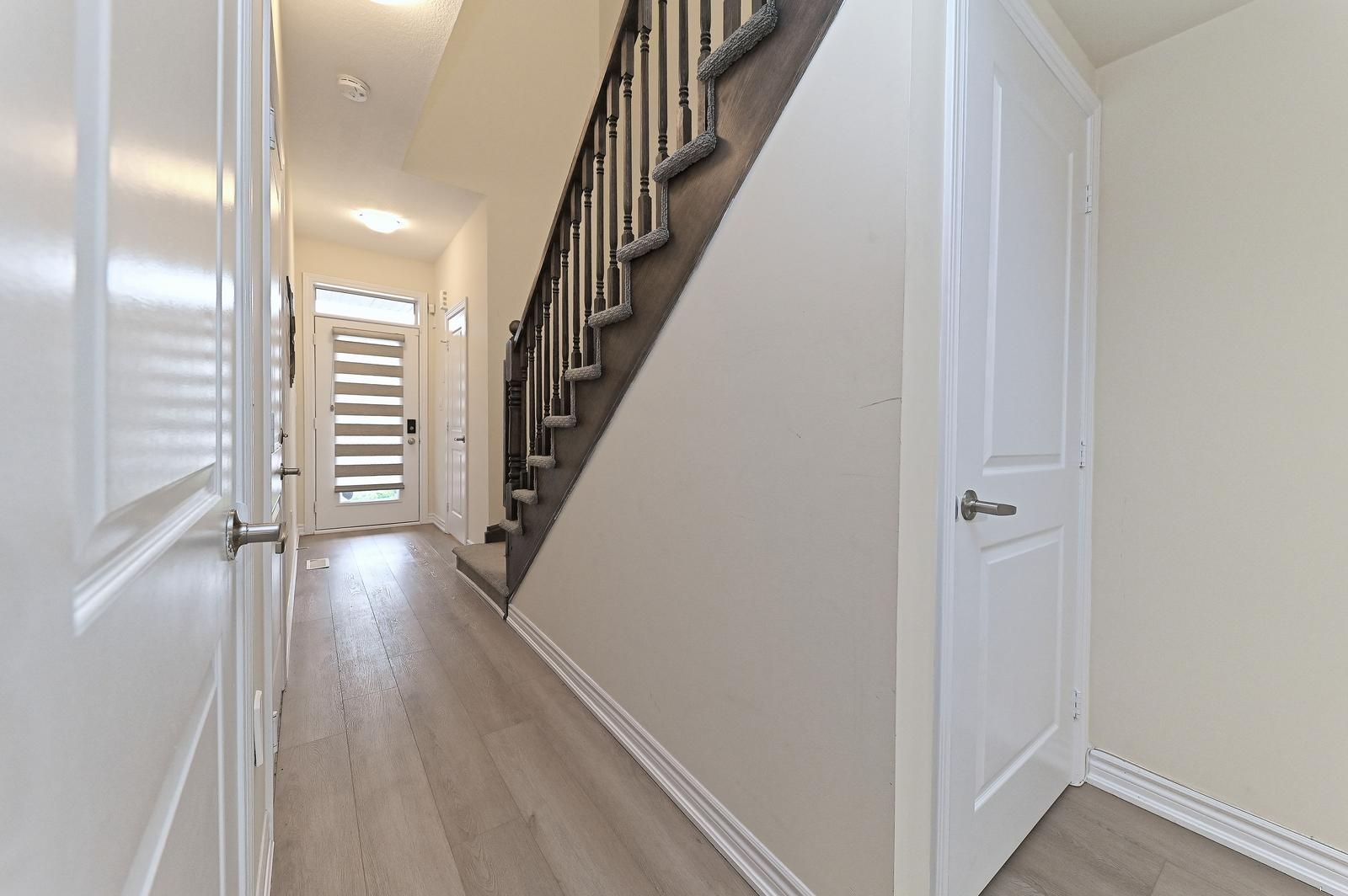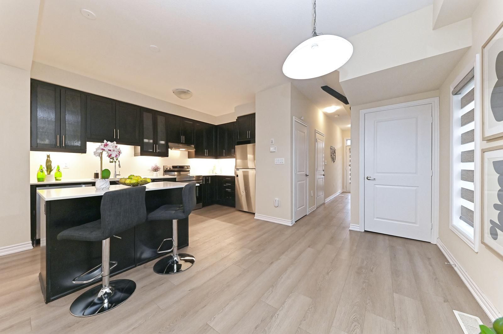 Welcome to this beautiful end-unit freehold townhouse that truly feels like a semi-detached home. Located in the highly desirable west brantford community, this 3-year-old, move-in ready home offers 3 bedrooms, 2. 5 bathrooms, and a bright open-concept layout perfect for modern living. The main floor features 9-ft smooth ceilings, laminate flooring, and oversized windows that fill the space with natural light. The upgraded kitchen is a standout with quartz countertops, extended-height cabinetry, stainless steel appliances, led under-cabinet lighting, a deep undermount sink, and a functional island with a microwave space saver provision, overlooking the spacious living and dining areas. Walk out to the backyard - ideal for entertaining or relaxing. Upstairs, the primary bedroom includes a walk-in closet and private ensuite. A second bedroom also offers a walk-in closet. Convenient second-floor laundry adds everyday comfort . Situated in a family-friendly neighborhood close to schools, parks, community centre, trails, shopping, visitor parking, and easy highway access. Corner units like this don't come up often - exceptional value for first-time buyers, families, or investors