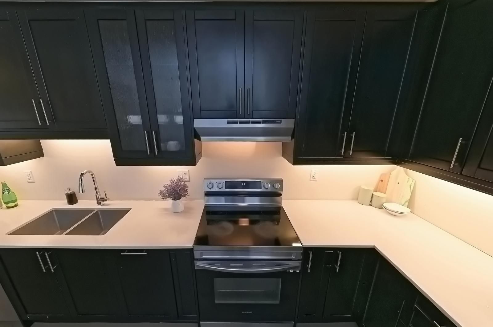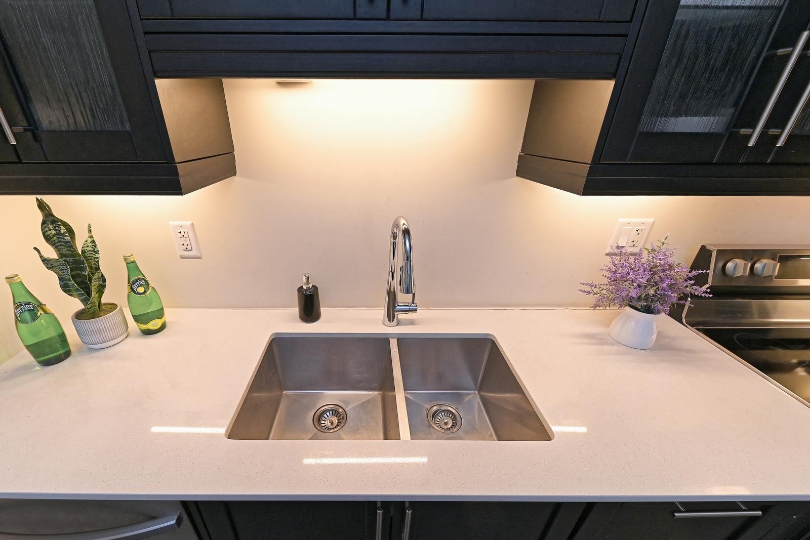 • Upgraded kitchen featuring quartz countertops and stainless steel appliances.