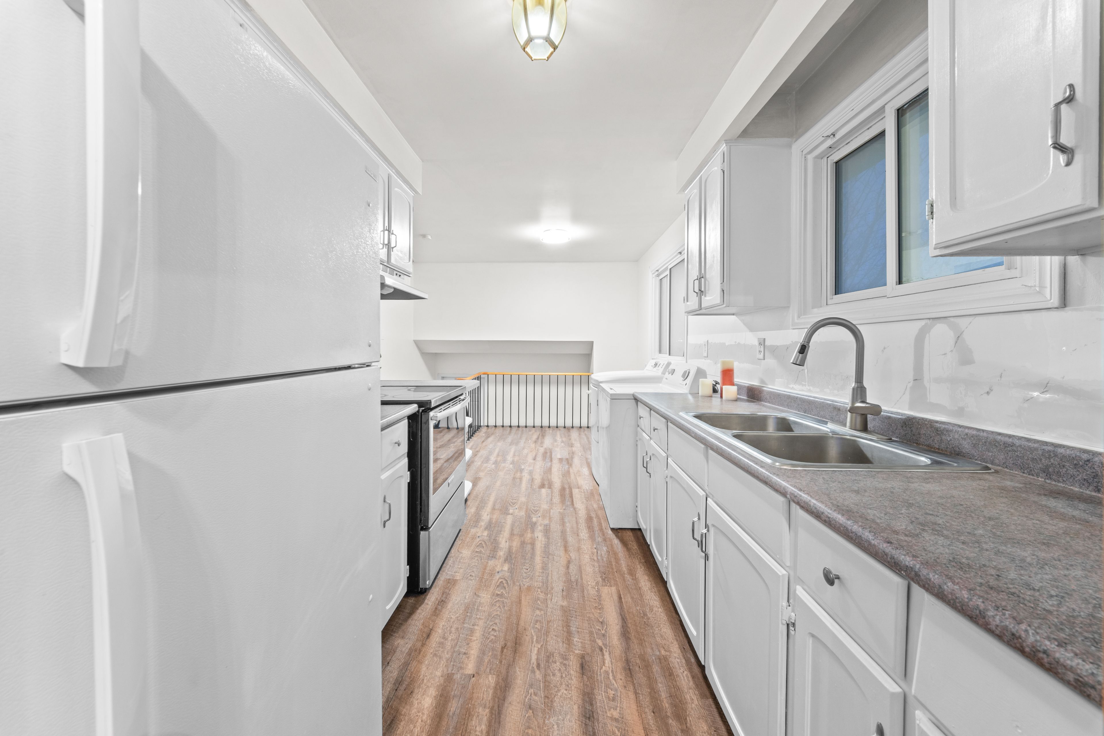 • Separate laundry and fully equipped kitchens on multiple levels for convenience.