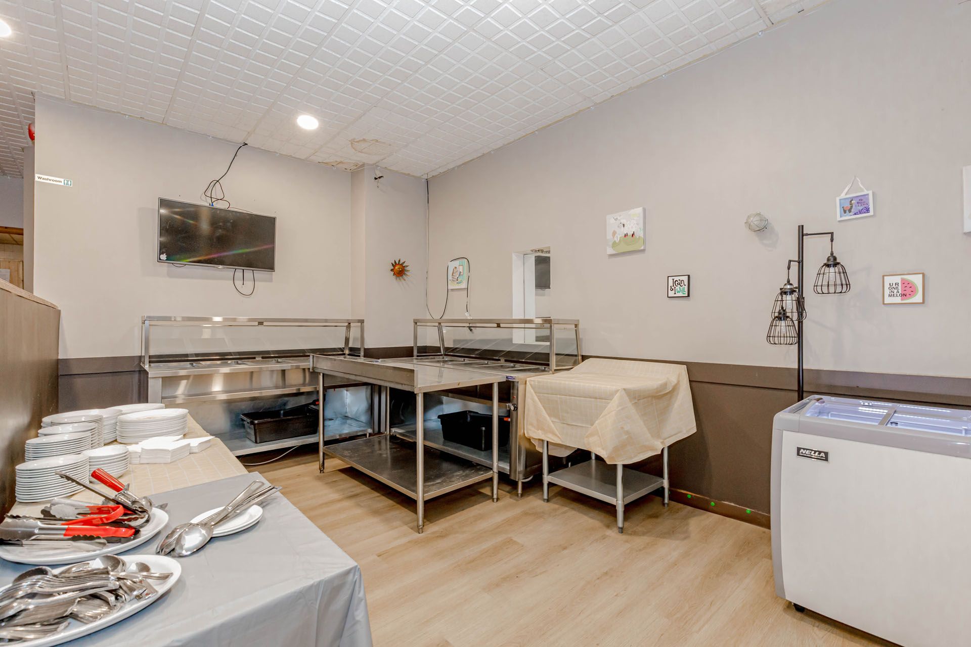 • Fully equipped kitchen with extensive commercial-grade appliances for efficient operation.
