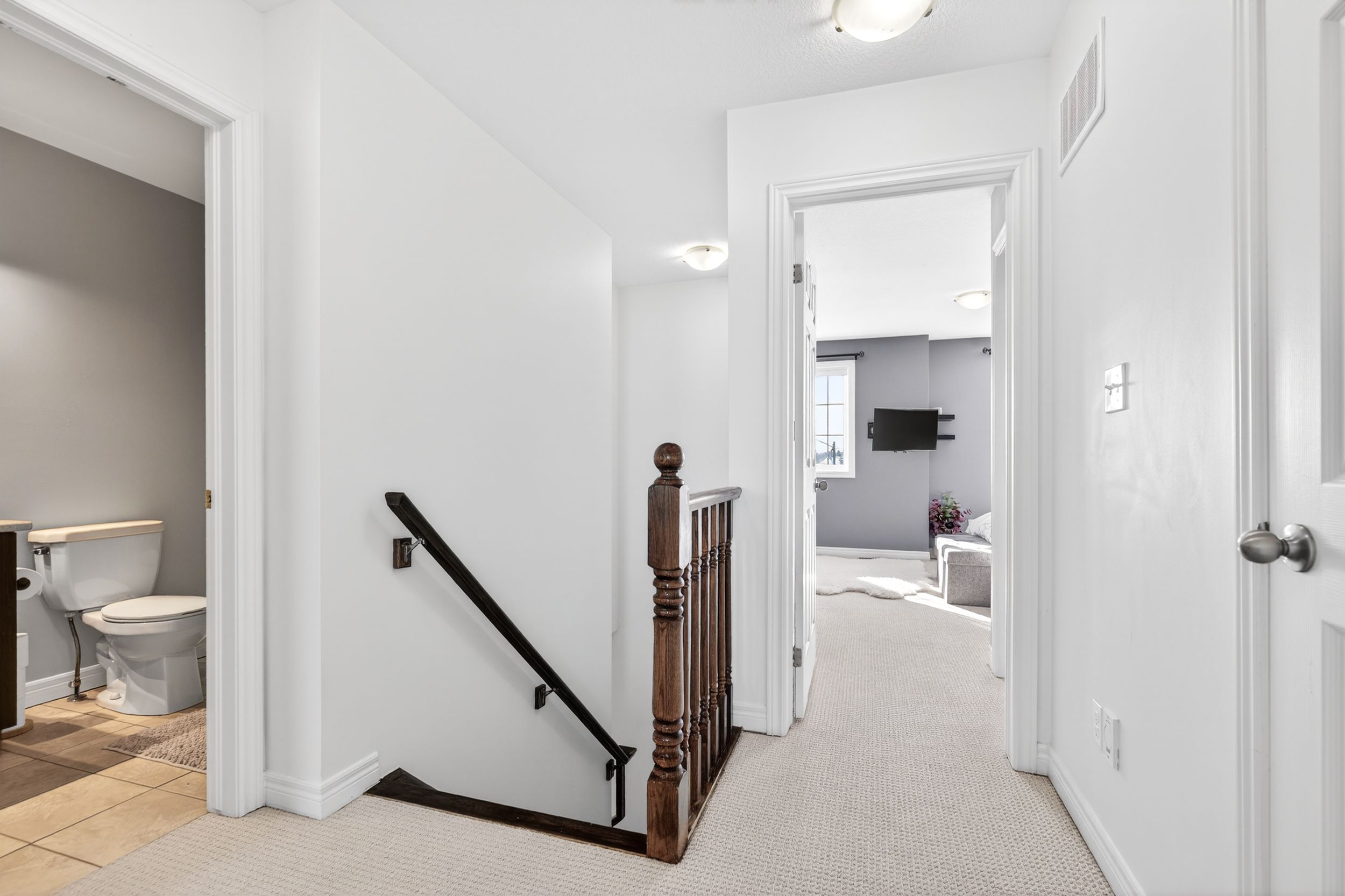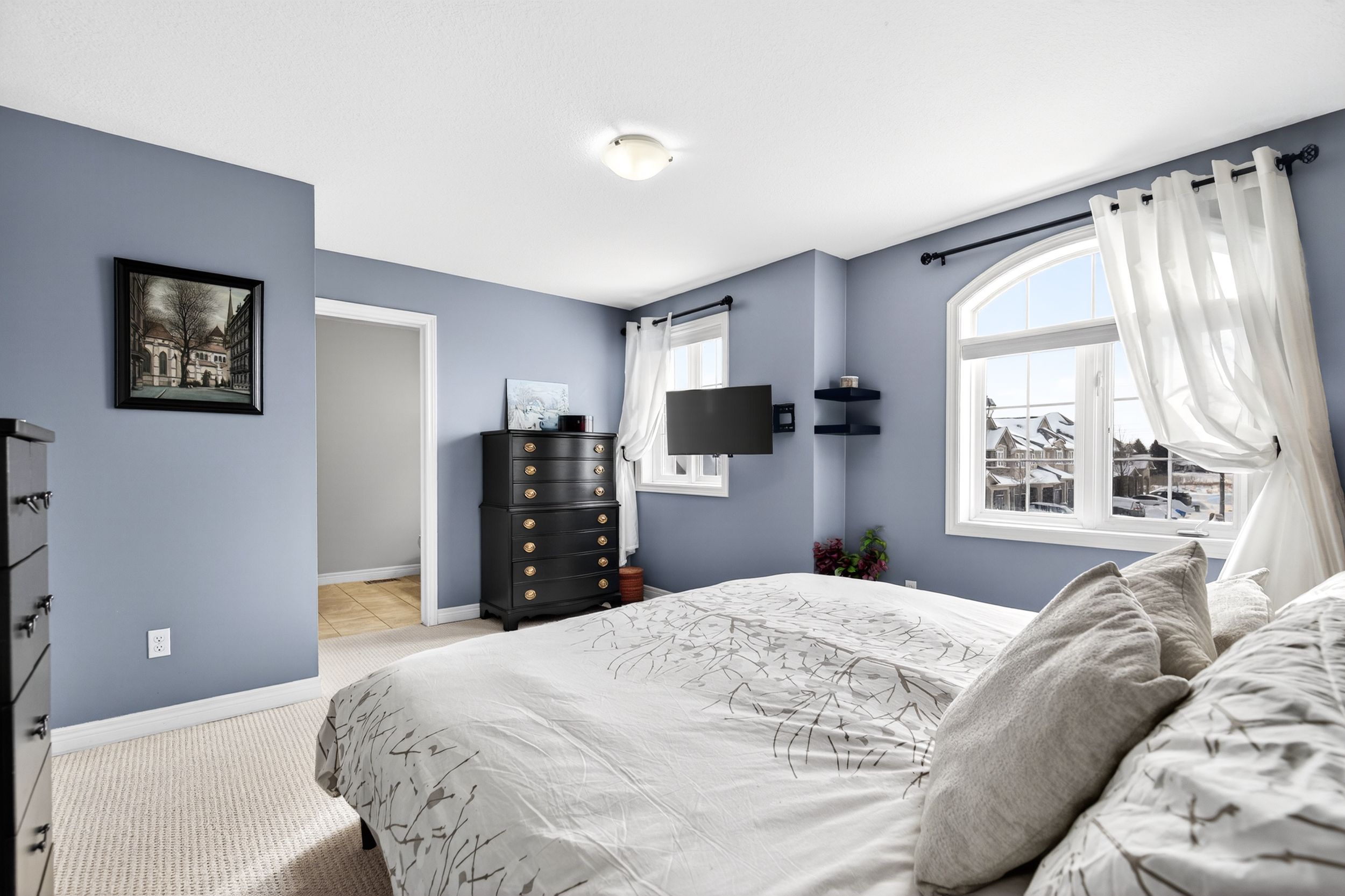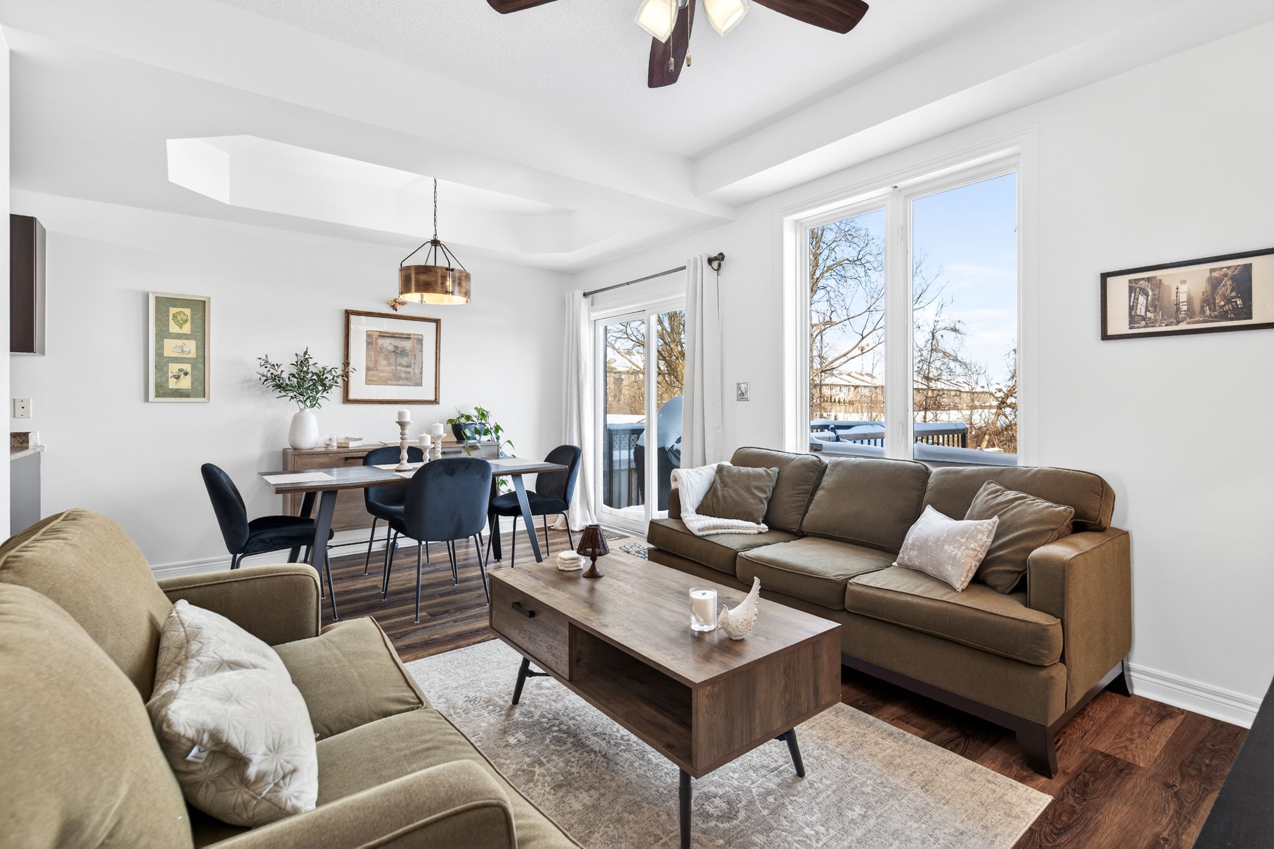 Welcome home to this beautifully updated two-storey freehold townhome, perfectly set in a family-friendly neighbourhood surrounded by upscale homes. With gorgeous curb appeal and a private, backing onto scenic open green space, this property offers the ideal blend of comfort, style, and location. Step inside to a freshly painted interior (2025) featuring coffered ceilings in the dining room and a thoughtful layout designed for everyday living and entertaining. The kitchen shines with all new appliances (2024), while new carpeting throughout (2024) adds warmth and a fresh, move-in-ready feel. Upstairs, the spacious primary bedroom boasts a large walk-in closet plus an additional closet, while the second bedroom also features its own walk-in closet. The finished basement provides valuable extra living space for a rec room, home office, or gym. Outside, enjoy your own private retreat with a two-tiered deck, stone patio, and garden, ideal for summer entertaining or quiet evenings outdoors. Added conveniences include interior garage access, backyard access directly from the garage, and a double driveway that is rare and highly sought after. This is the one you've been waiting for- move-in ready, beautifully updated, and perfectly located.