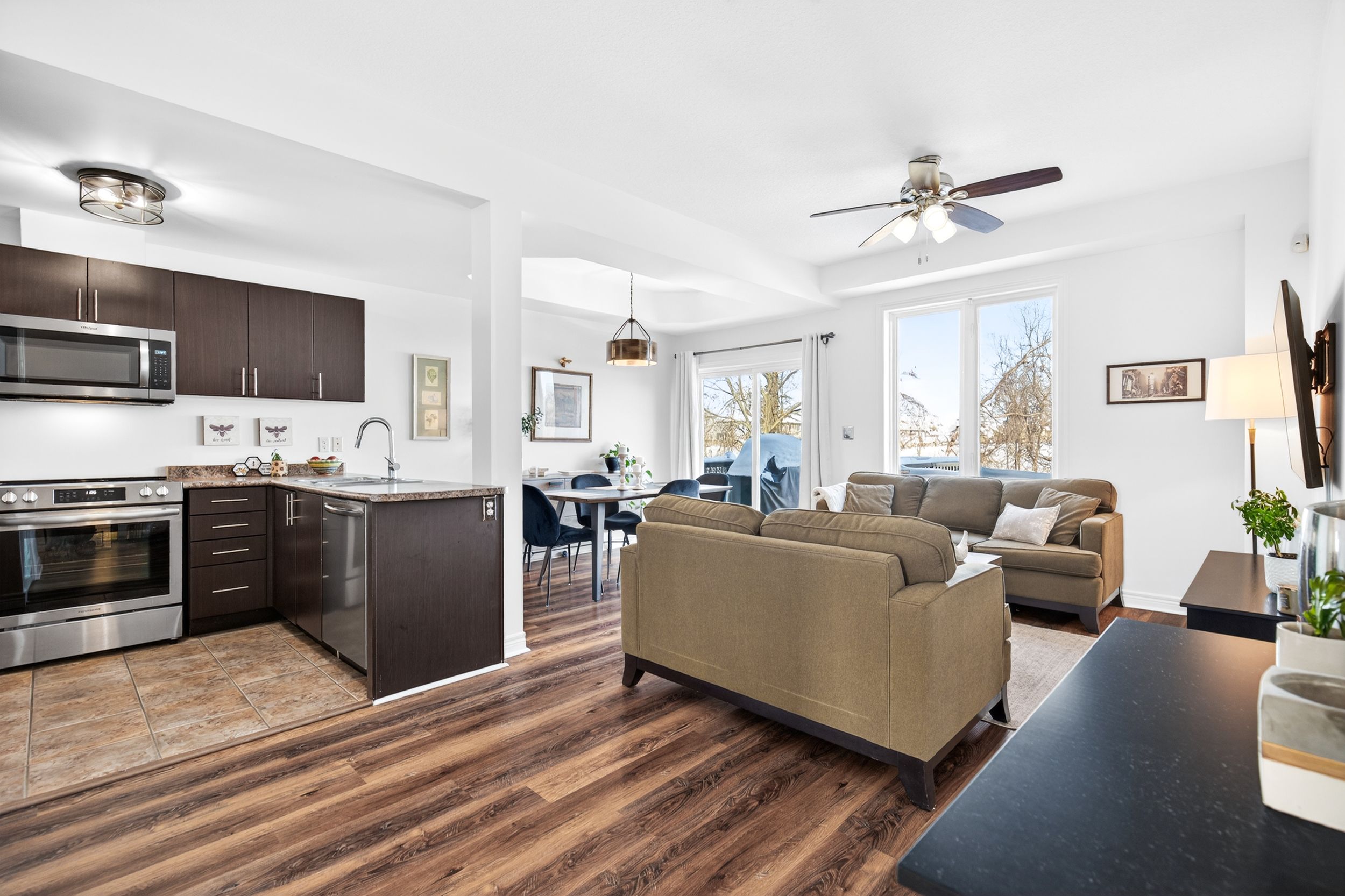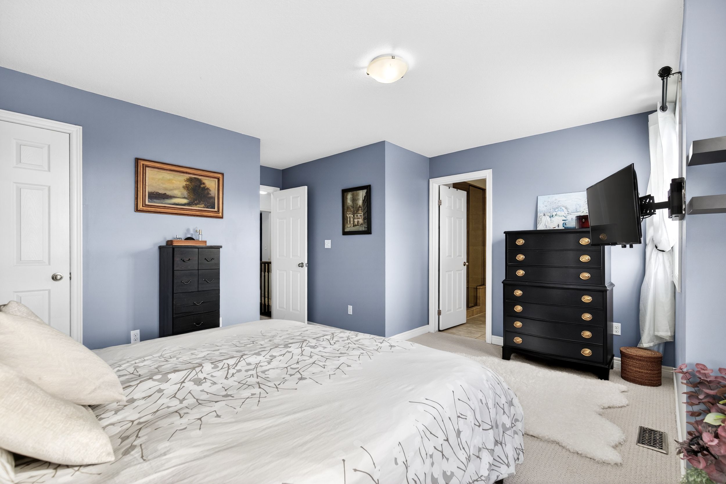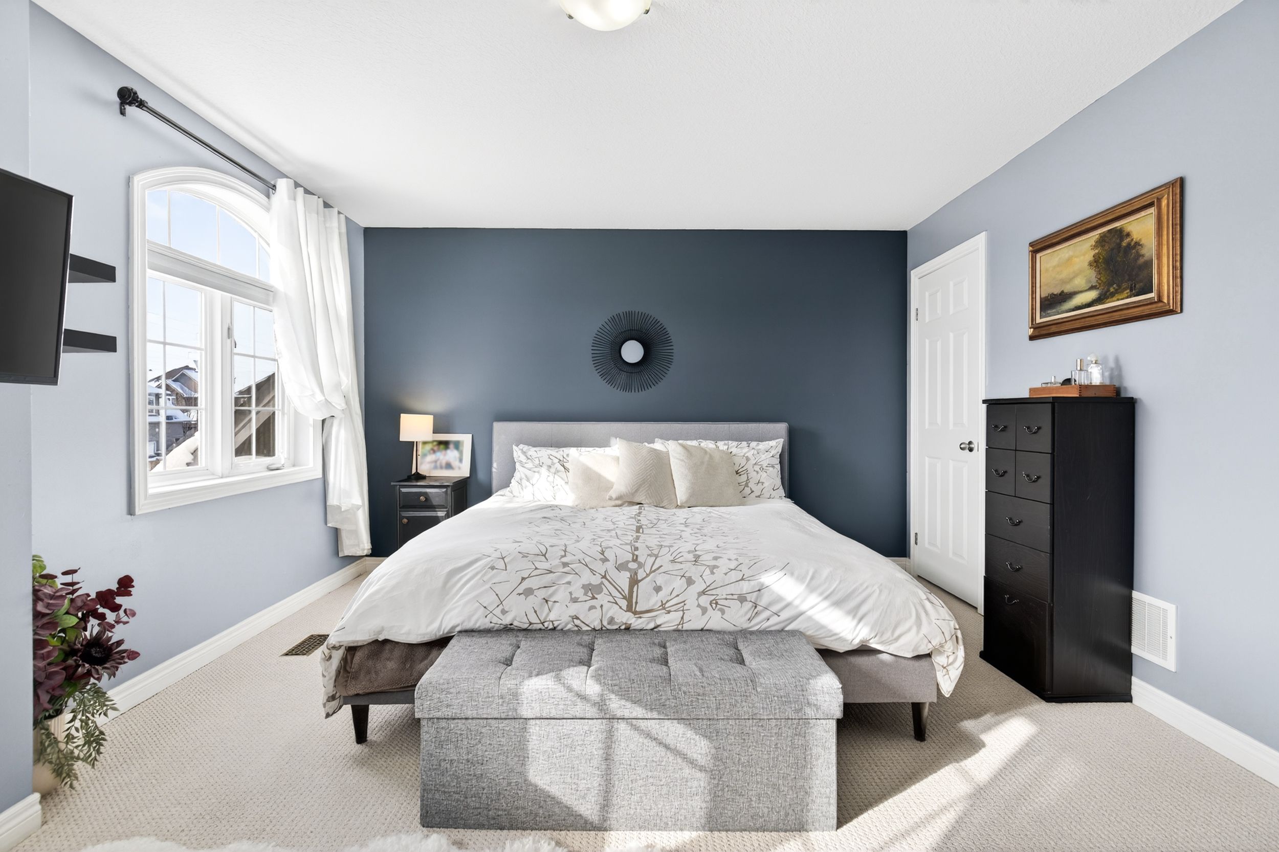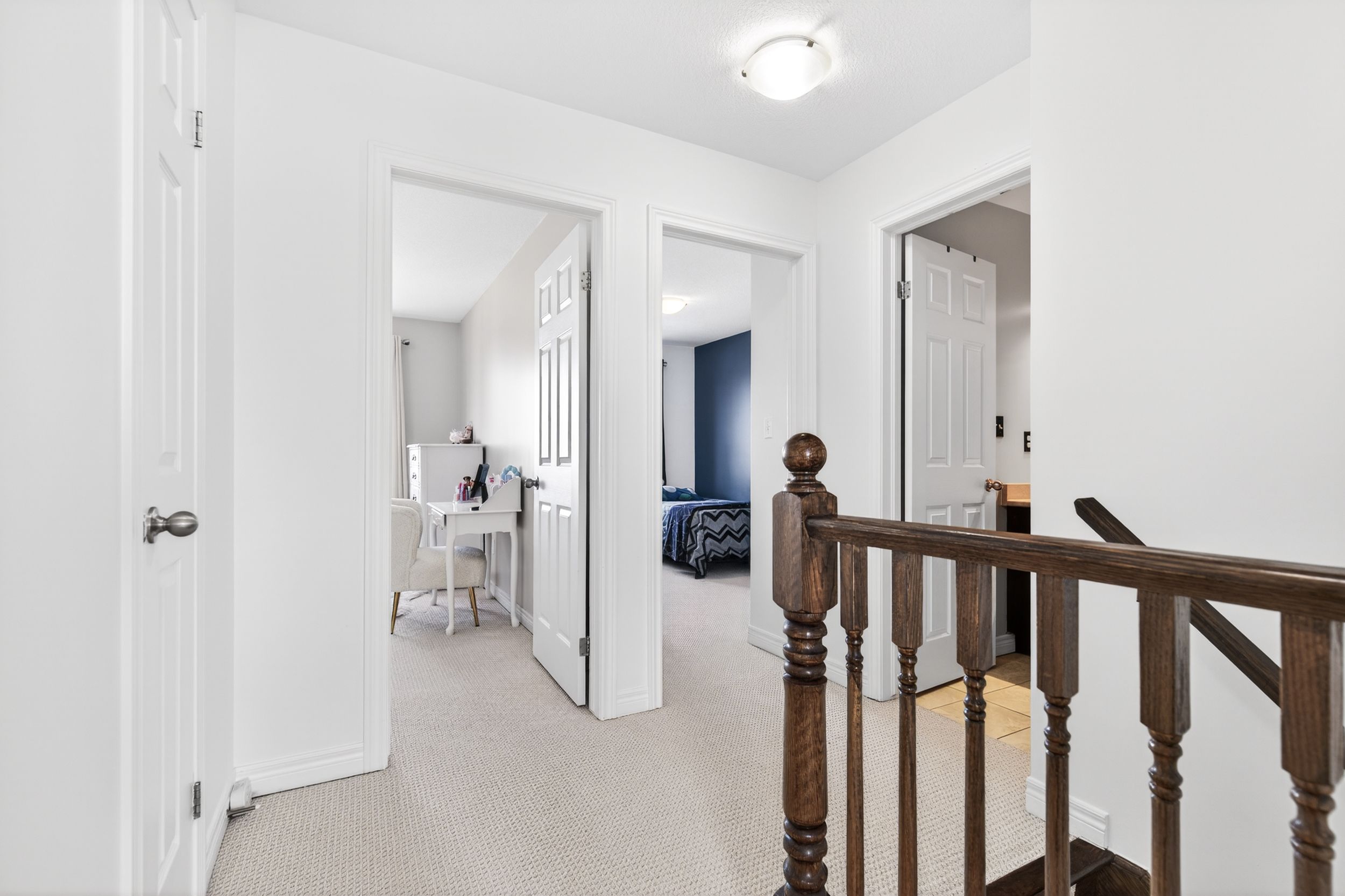 Welcome home to this beautifully updated two-storey freehold townhome, perfectly set in a family-friendly neighbourhood surrounded by upscale homes. With gorgeous curb appeal and a private, backing onto scenic open green space, this property offers the ideal blend of comfort, style, and location. Step inside to a freshly painted interior (2025) featuring coffered ceilings in the dining room and a thoughtful layout designed for everyday living and entertaining. The kitchen shines with all new appliances (2024), while new carpeting throughout (2024) adds warmth and a fresh, move-in-ready feel. Upstairs, the spacious primary bedroom boasts a large walk-in closet plus an additional closet, while the second bedroom also features its own walk-in closet. The finished basement provides valuable extra living space for a rec room, home office, or gym. Outside, enjoy your own private retreat with a two-tiered deck, stone patio, and garden, ideal for summer entertaining or quiet evenings outdoors. Added conveniences include interior garage access, backyard access directly from the garage, and a double driveway that is rare and highly sought after. This is the one you've been waiting for- move-in ready, beautifully updated, and perfectly located.