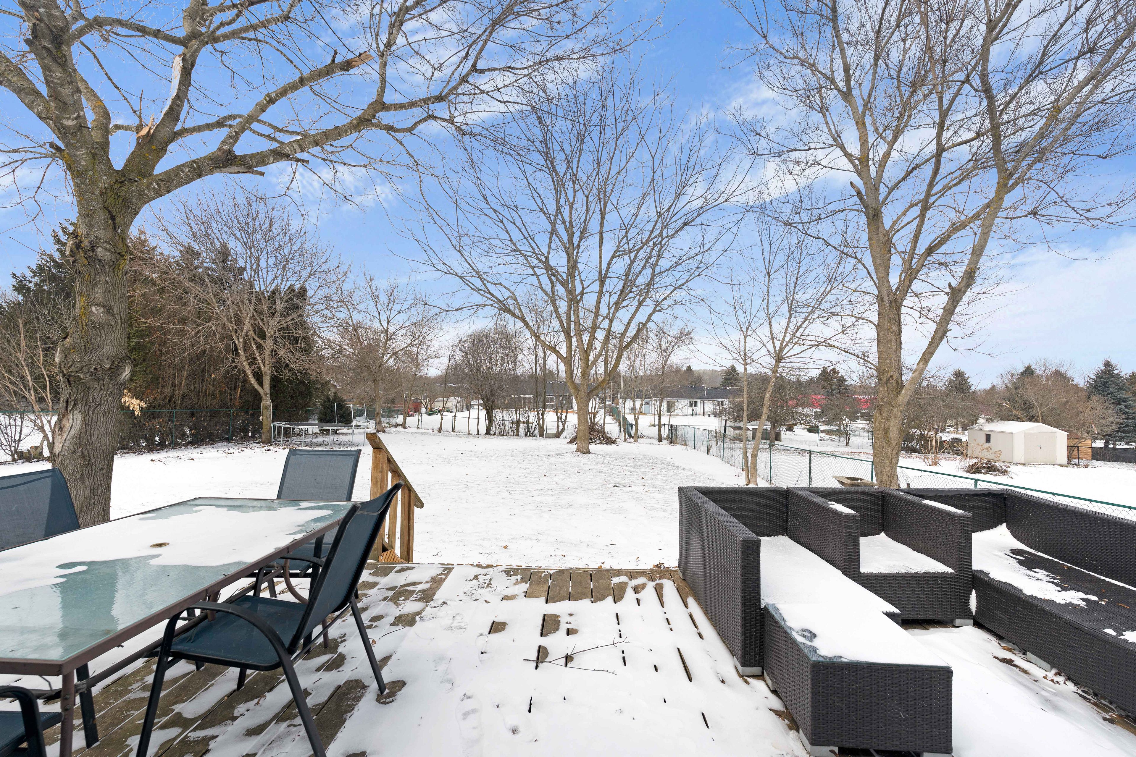 • Large lot with mature trees, perfect for outdoor activities and relaxation.