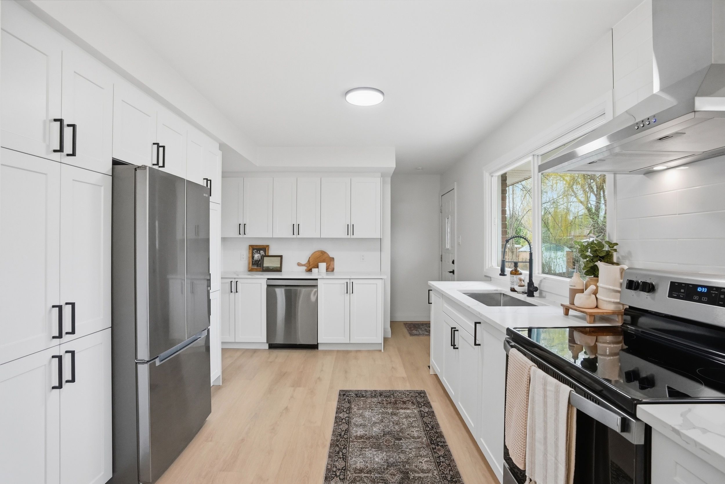 • Quiet tree-lined street with 4 parking spots on a new driveway.