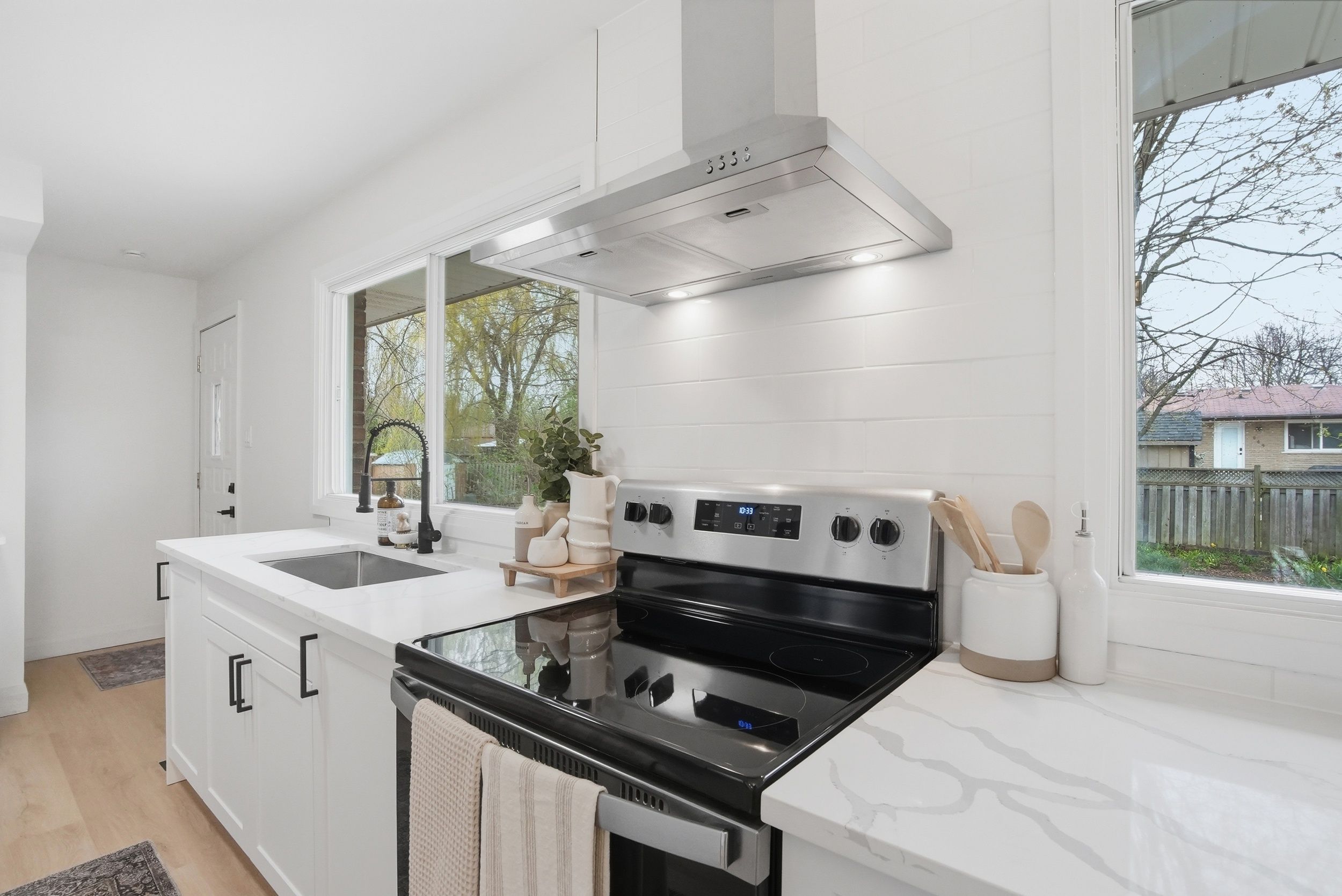 Welcome to 44 mendip crescent, a fully renovated, high-end 3+2 bedroom, 2 bathroom bungalow in south london set on a 55 x 100 ft lot, offering a bright open-concept main floor where the living, dining, and brand-new kitchen flow seamlessly together, featuring quartz countertops, newer appliances, a large sink, and views of the beautifully landscaped backyard. The home has been updated top to bottom and the main level include three generously sized bedrooms and a stunning 5-piece bathroom with double sinks, and the fully finished basement offers two additional bedrooms closets and egress windows, a spacious living area, a full bathroom with double sinks and a shower, and extra storage space, making it ideal for families, investors exploring a potential two-unit conversion with the separate rear entrance, or anyone looking for a turnkey home with modern finishes, all complemented by a fully fenced backyard with fresh mulch, a large patio, plenty of green space. Out front, there is 4 parking spots on a freshly blacktopped driveway, all set on a quiet, tree-lined street.