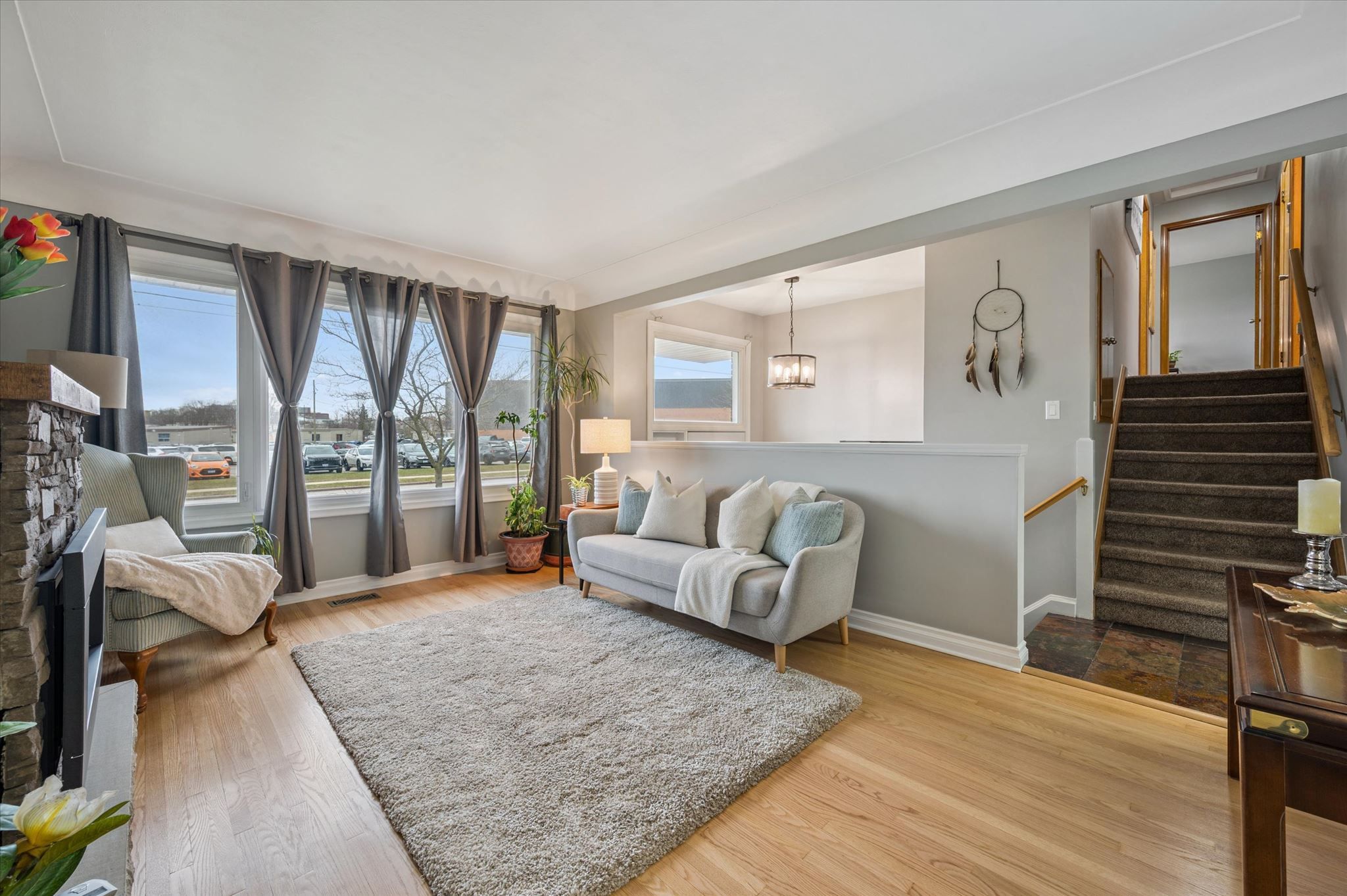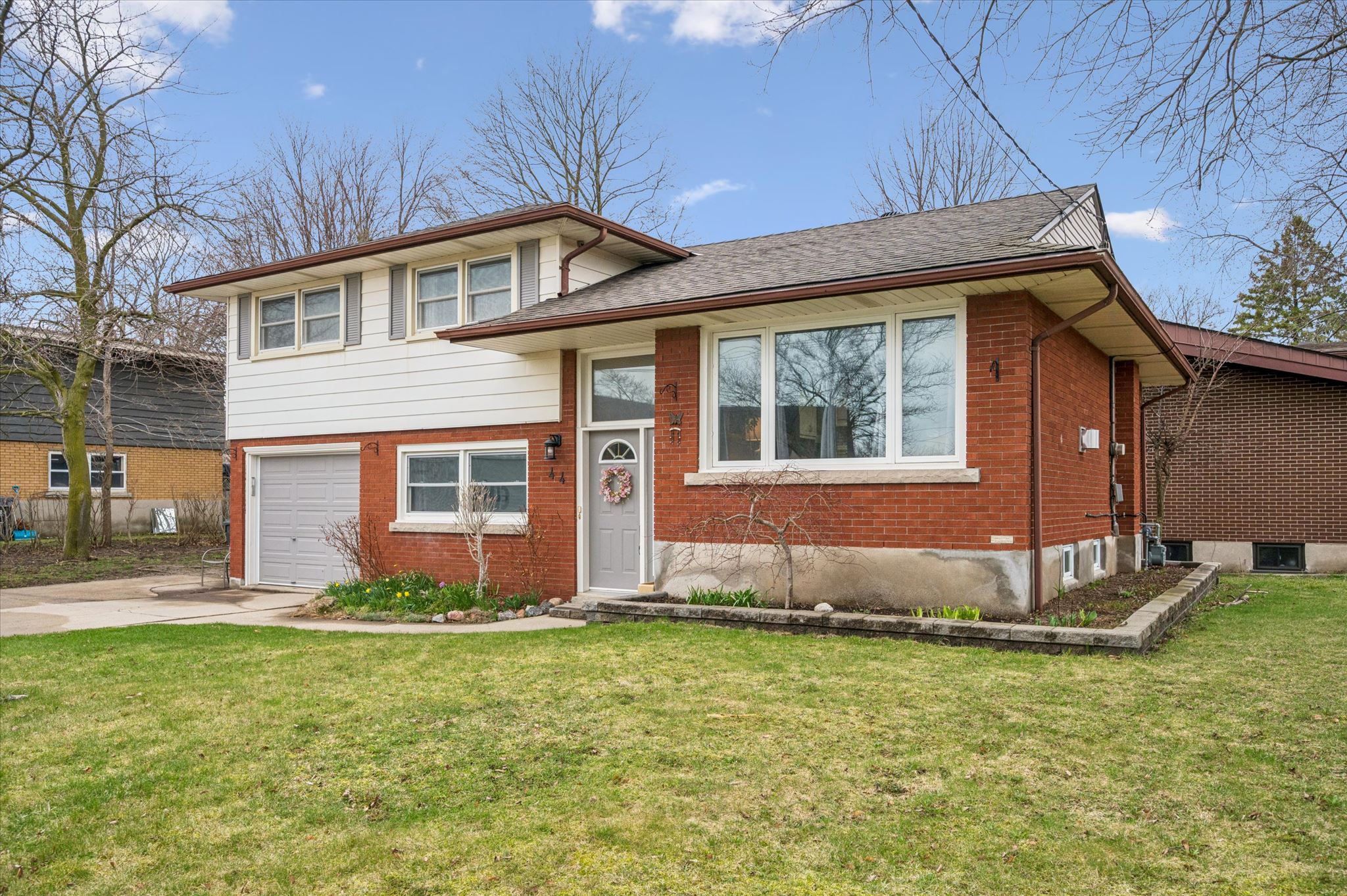 Welcome to 44 meyer drive, a beautiful 4-level sidesplit in the highly sought-after st. George's park neighbourhood! This bright and spacious home offers multiple levels of living, giving your family the flexibility and room to truly spread out. Recent updates include fresh paint and reglazed tile in the front entry and bonus family room, while the home continues to showcase its warm and inviting character. The main living area features rich hardwood floors and a custom gas fireplace, creating a comfortable space to relax or entertain. Downstairs, the oversized family room is filled with natural light and offers direct access to the attached garage and yard, along with a stunning stone feature wall and electric fireplace perfect for cozy nights or hosting guests. Location is everything here, enjoy being within walking distance to schools (including john f. Ross right across the street!), grocery stores, shopping, and everyday amenities. This is a home where convenience meets lifestyle. If you've been searching for a home that offers space, functionality, and an unbeatable location, you won't want to miss this one.