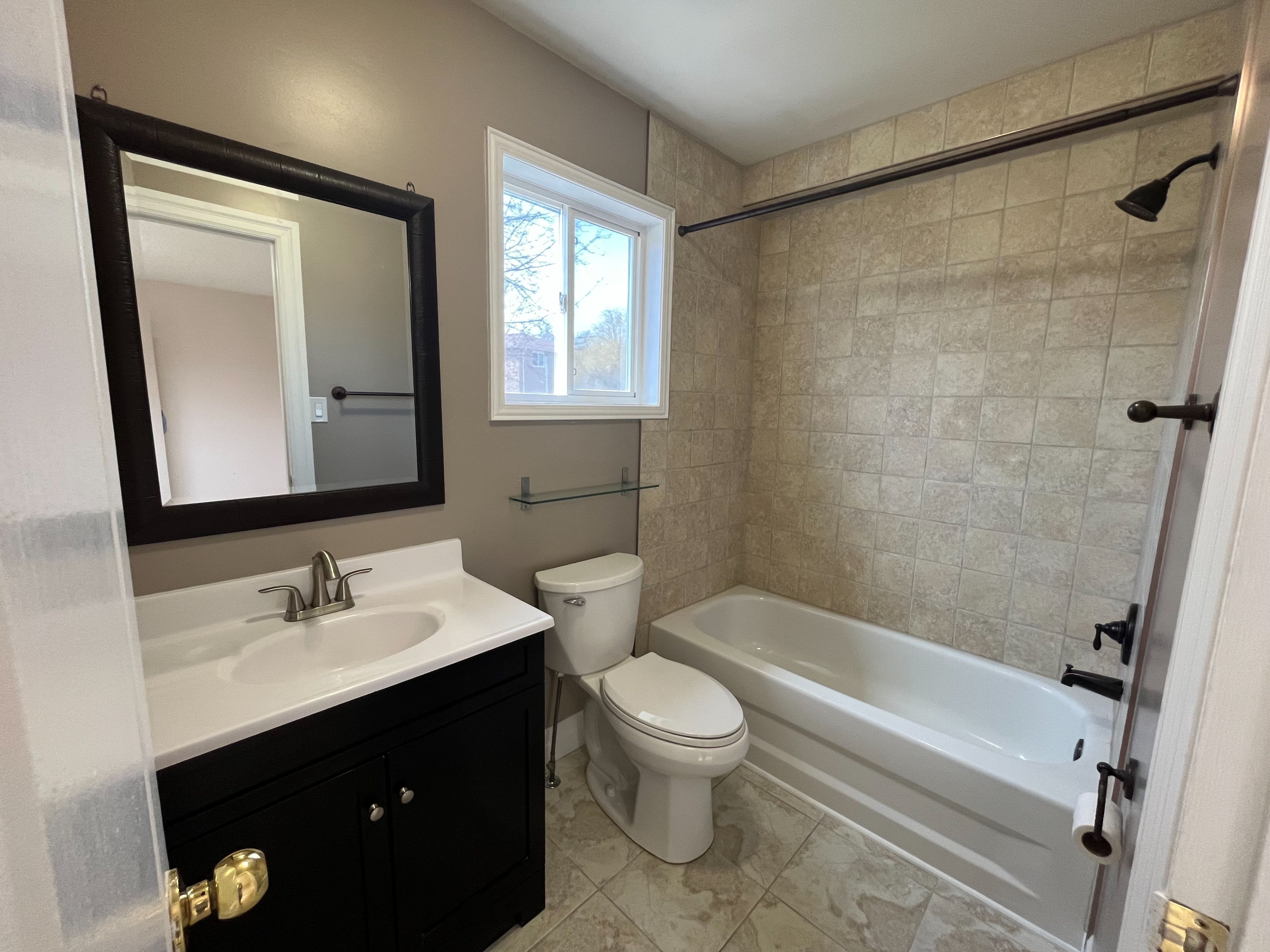 • Stylish kitchen features new backsplash and quartz counters.
