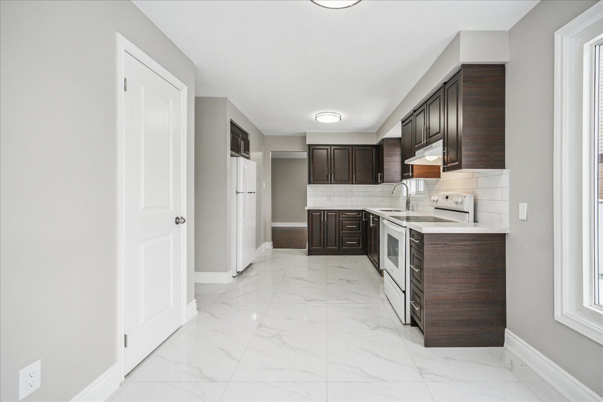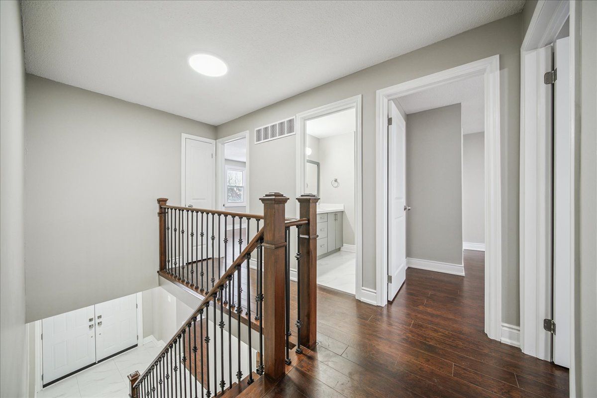 Fully renovated 4-bedroom detached home with a legal 2-bedroom basement apartment in brampton's quiet westgate community. Vacant and ready for immediate use as rental income or multigenerational living. The main floor features a bright tiled foyer, open flow between living, dining, and kitchen, new laminate flooring, new baseboards, and pot lighting throughout. The updated kitchen and breakfast area include quartz countertops, modern cabinetry, subway tile backsplash, and a pantry. New 2-piece powder room and new double front entry door. Upstairs offers four generously sized bedrooms including a primary with walk-in closet and 4-piece ensuite. The remaining bedrooms share a renovated 5-piece main bathroom. New oak staircase with metal spindles. The family room at the rear features a fireplace and provides interior access to the basement suite. The legal basement apartment operates independently via a private rear entrance and includes an open-concept living area with pot lighting, full kitchen, 4-piece bathroom, and access to ground floor laundry. Fully fenced backyard with storage shed. New asphalt driveway and new double garage doors. Close to brampton civic hospital, bramalea city centre, trinity common, parks, and public transit. Quiet tree-lined street.