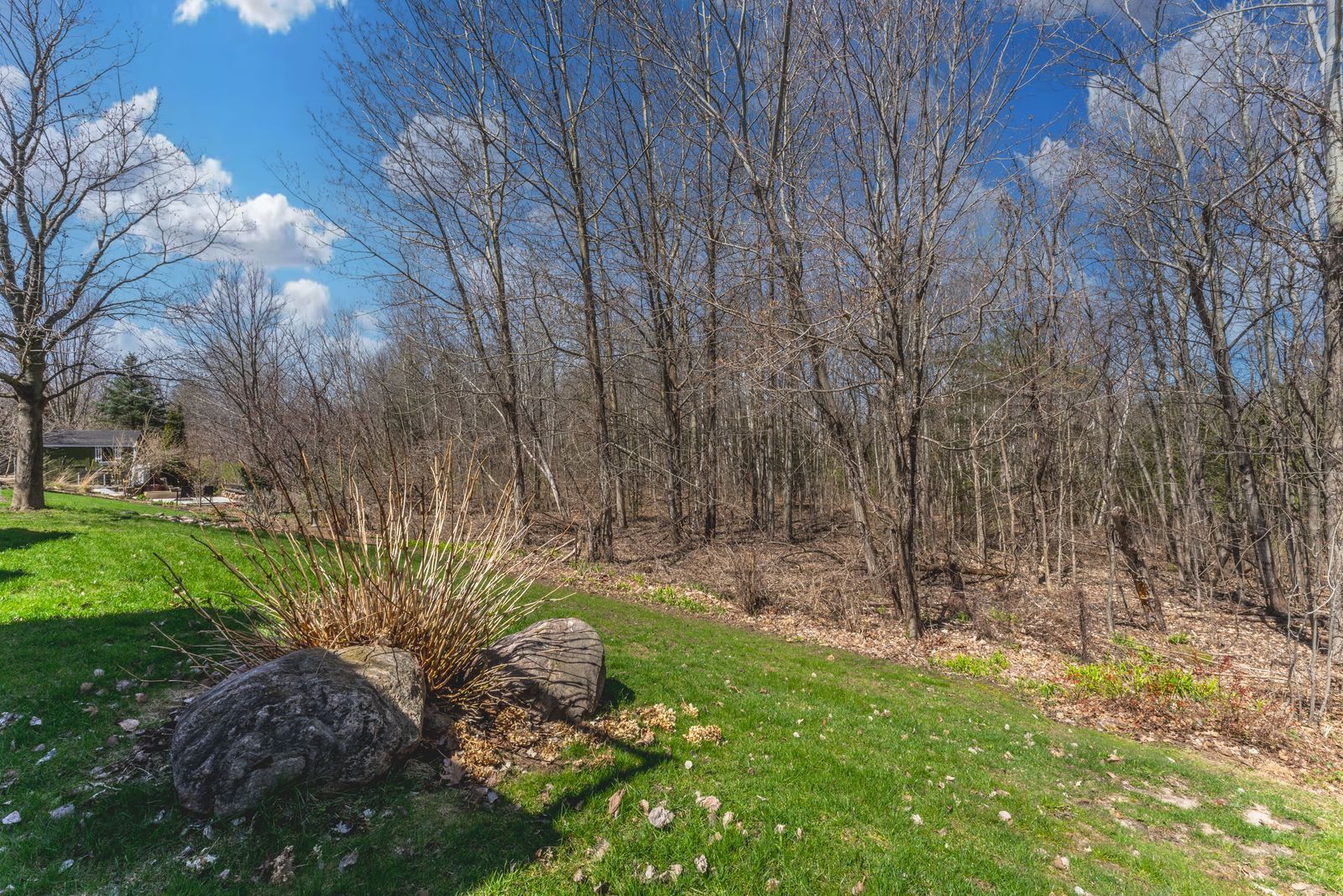 • Back deck overlooks a serene forest, perfect for relaxing mornings.