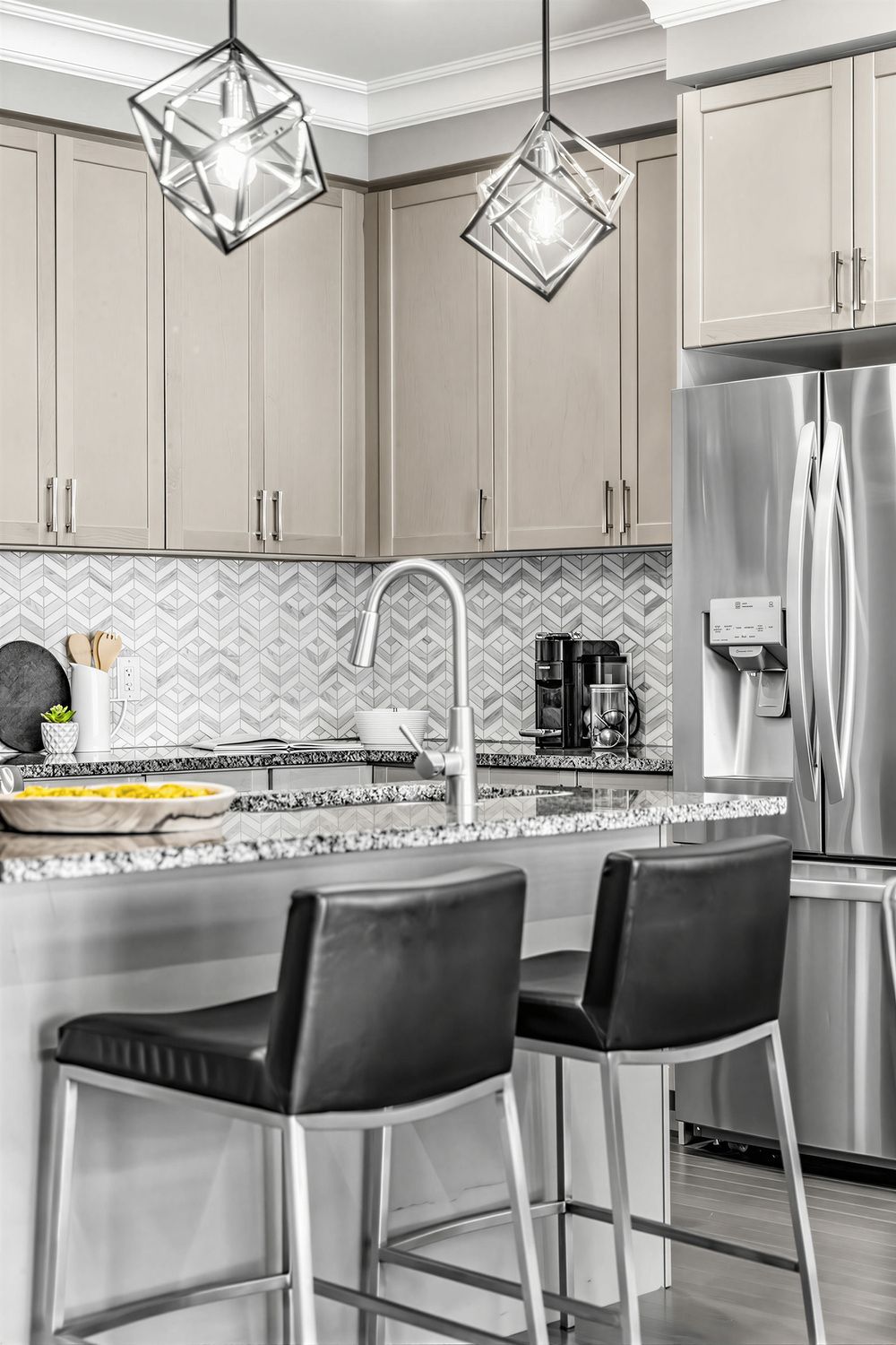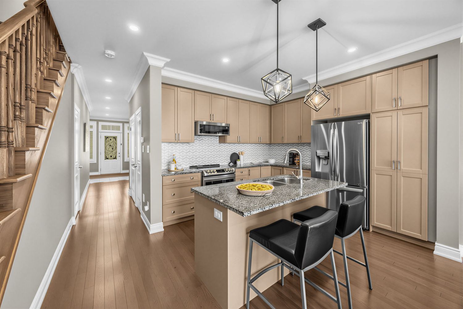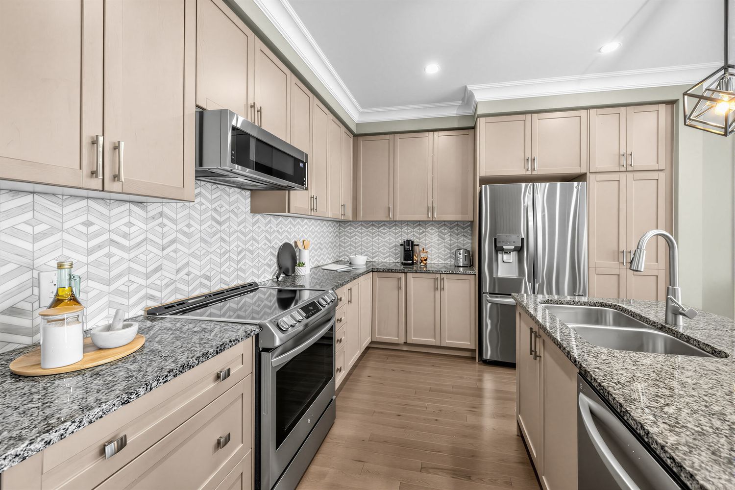 • Modern kitchen features quality appliances and ample storage.