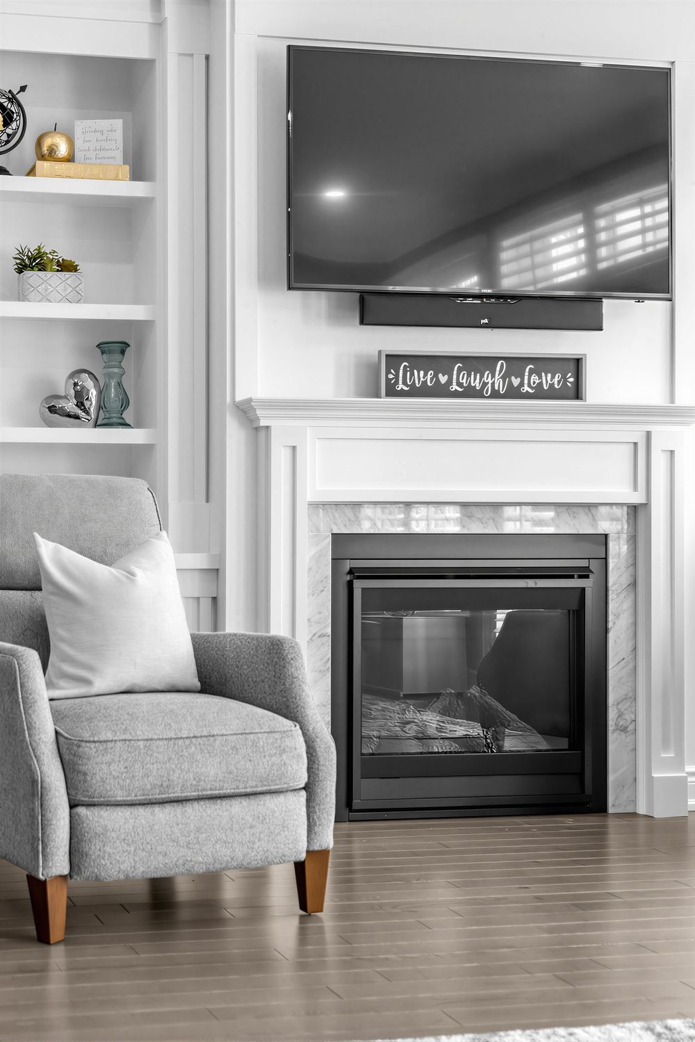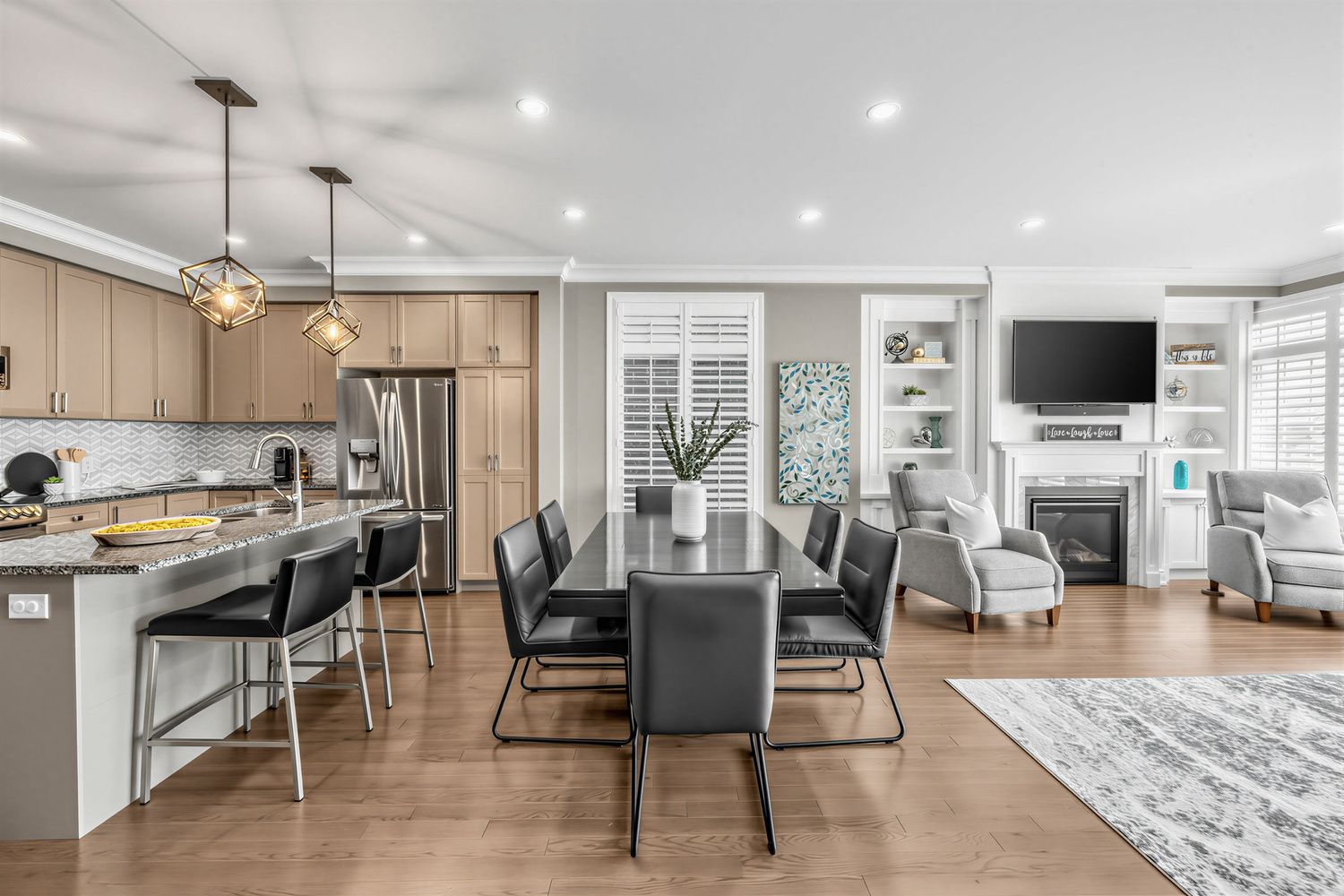 • Open main floor with cozy fireplace and built-ins for entertaining.