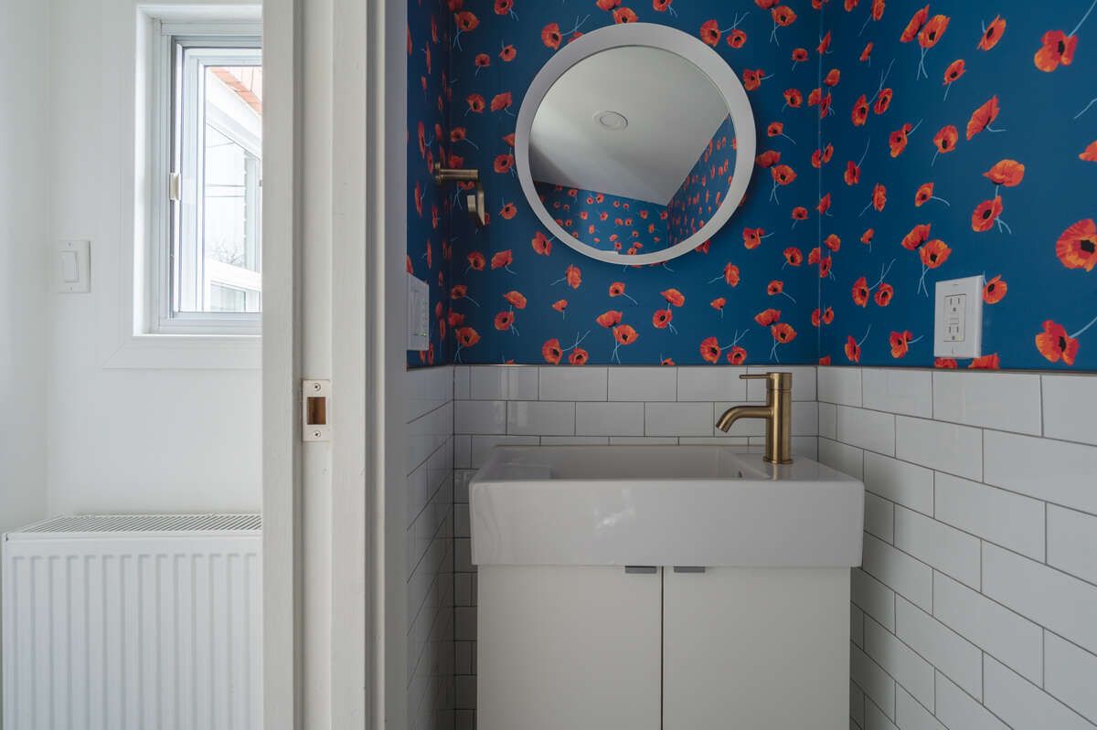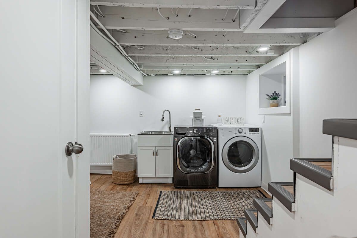 • Modern kitchen and convenient main floor powder room for guests.