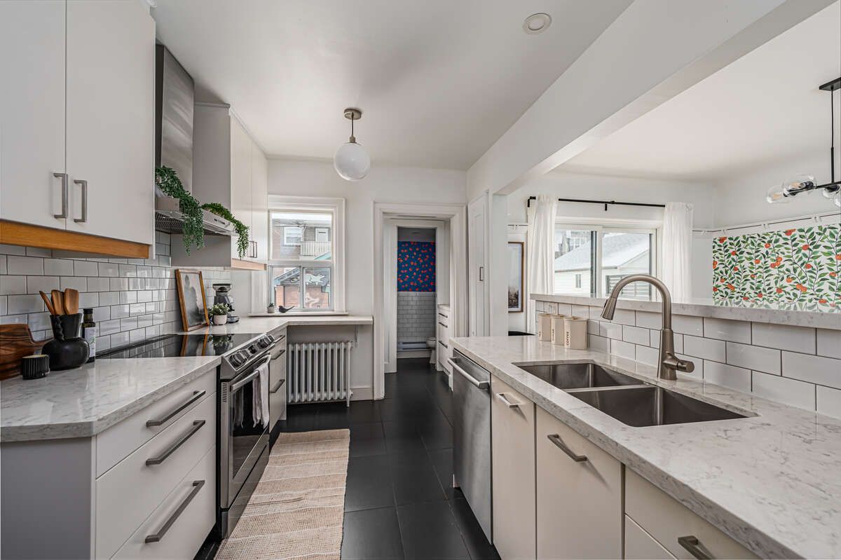 For more info on this property, please click the brochure button. Warm, bright, wonderful roncesvalles home is nestled near high park, lake ontario, up train, shops and restaurants in one of toronto's best neighbourhoods. Top rated schools and childcare options. Walk from a lovely, covered front porch into a fantastic main floor with a modern kitchen and rare main floor powder room. Four bedrooms upstairs, including a murphy bed and renovated bathroom with spa-like bathtub, in floor heating and heated towel bar. Basement with separate side entrance and kitchenette great for visitors, teenagers or income potential. Updated heating with unlimited hot water. Detached garage and fenced back yard provides plenty of room to garden, eat outdoors or kick a soccer ball. Well kept and move in ready home is waiting for you! Home inspection available upon request. Recent updates include insulated basement, boiler, ac, front drive/walkway, eavestroughs and more.