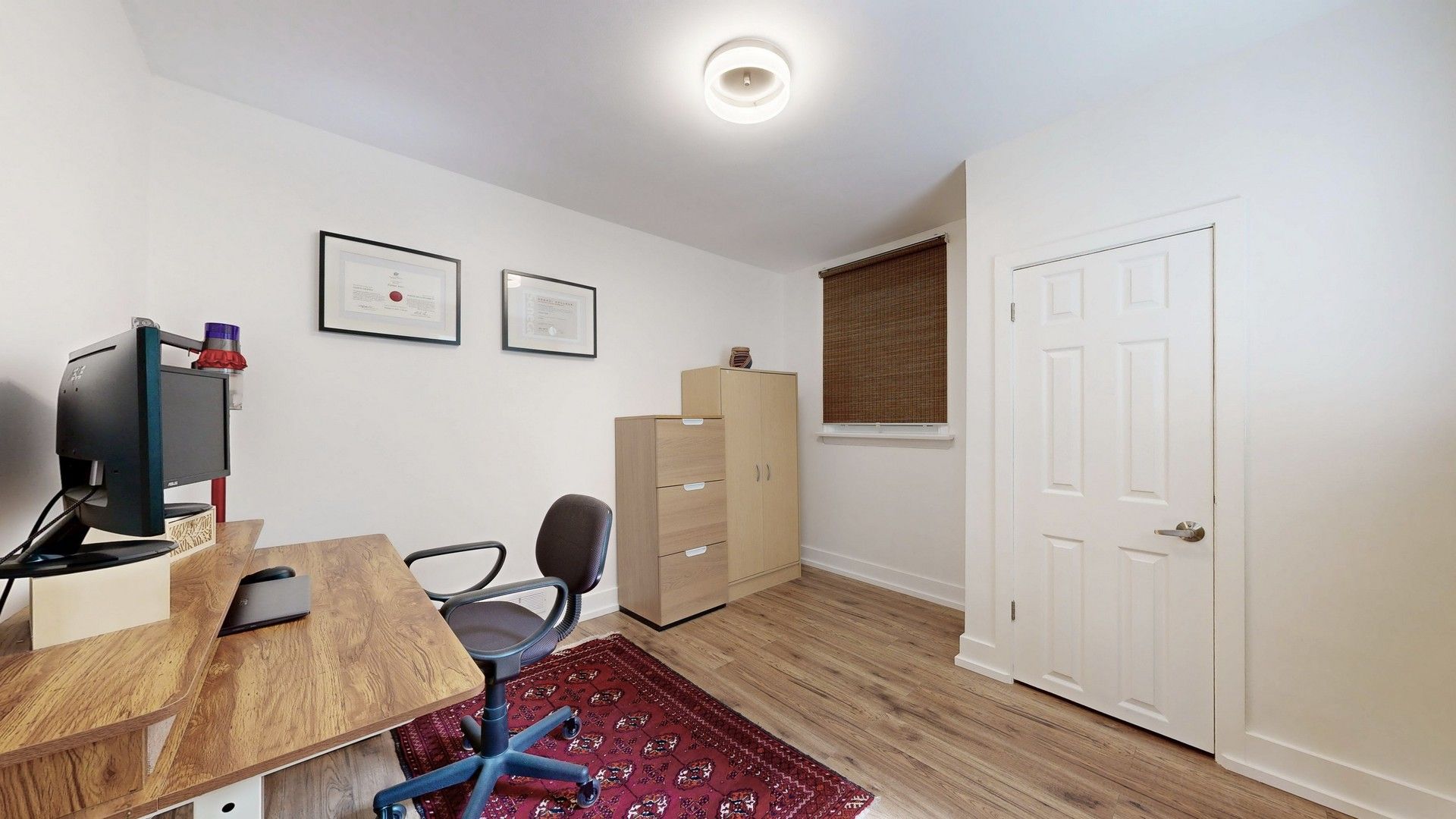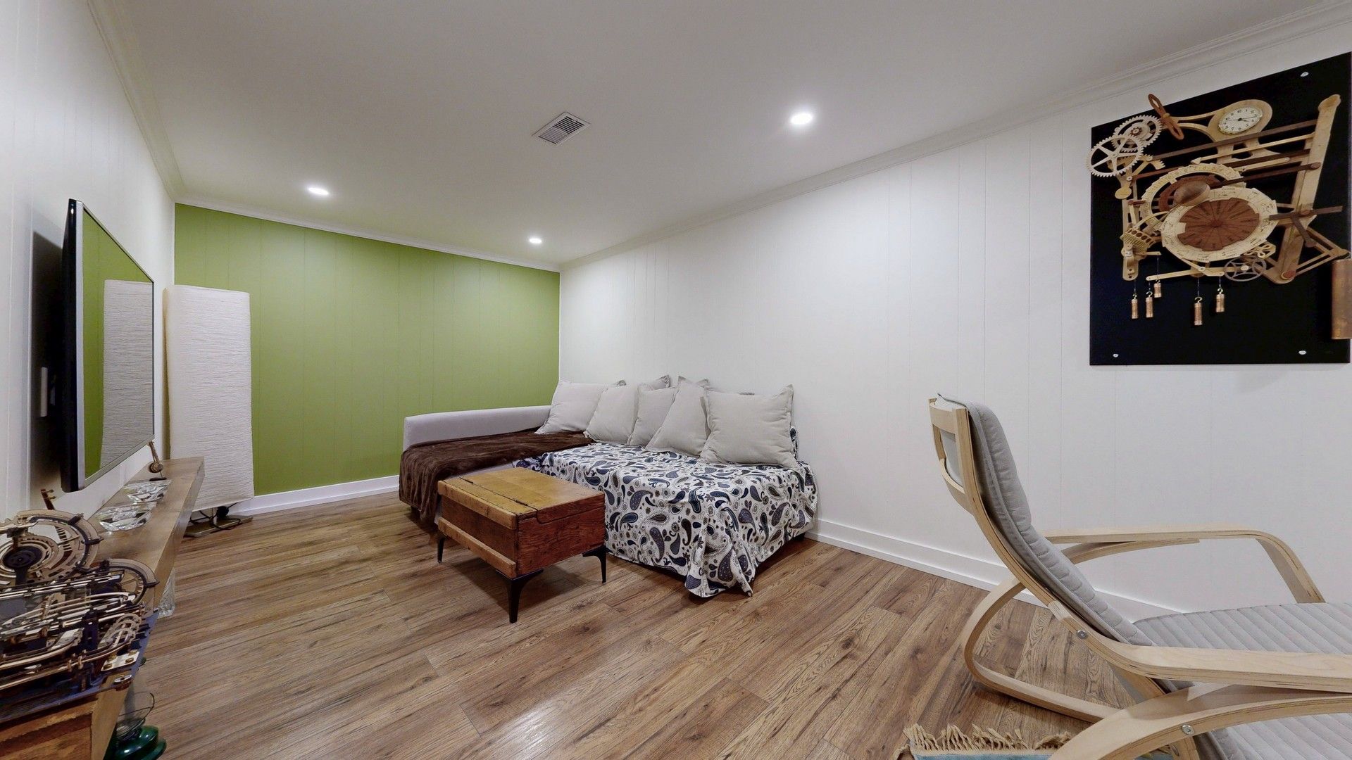 • Custom kitchen with sleek cabinetry and updated appliances for easy living.