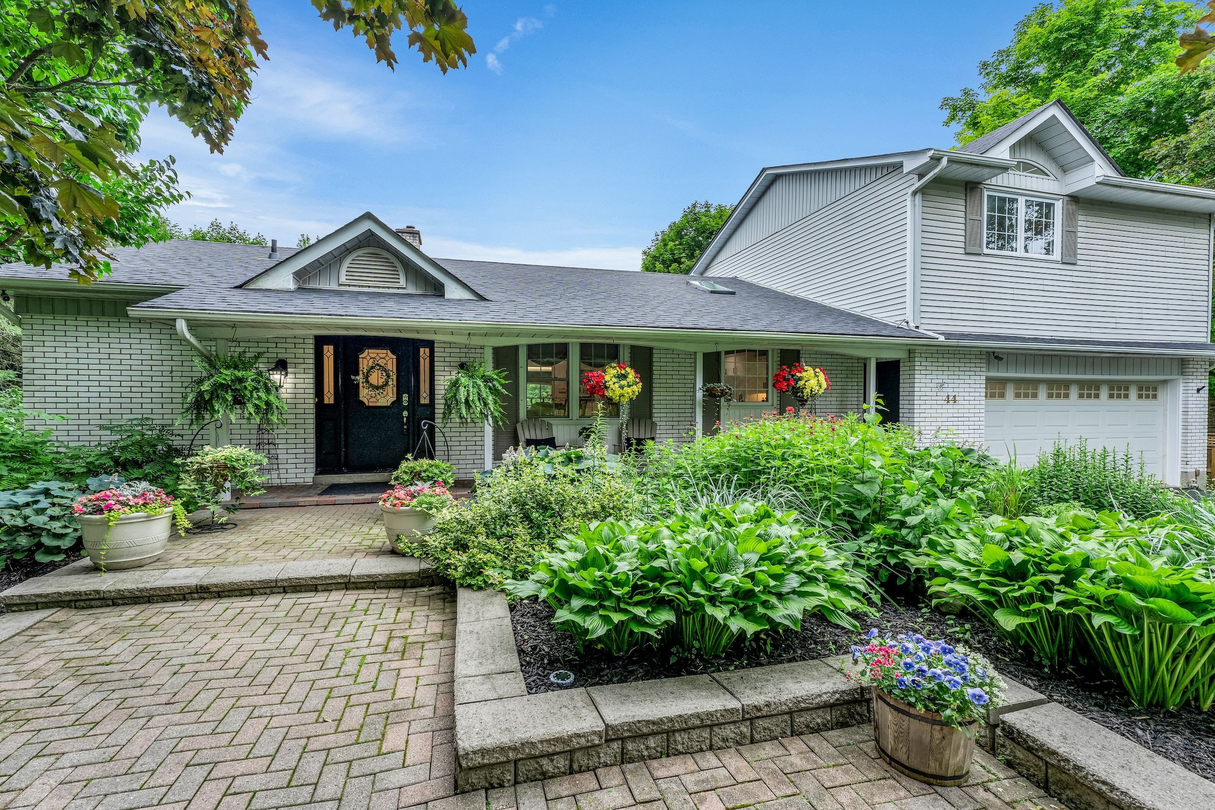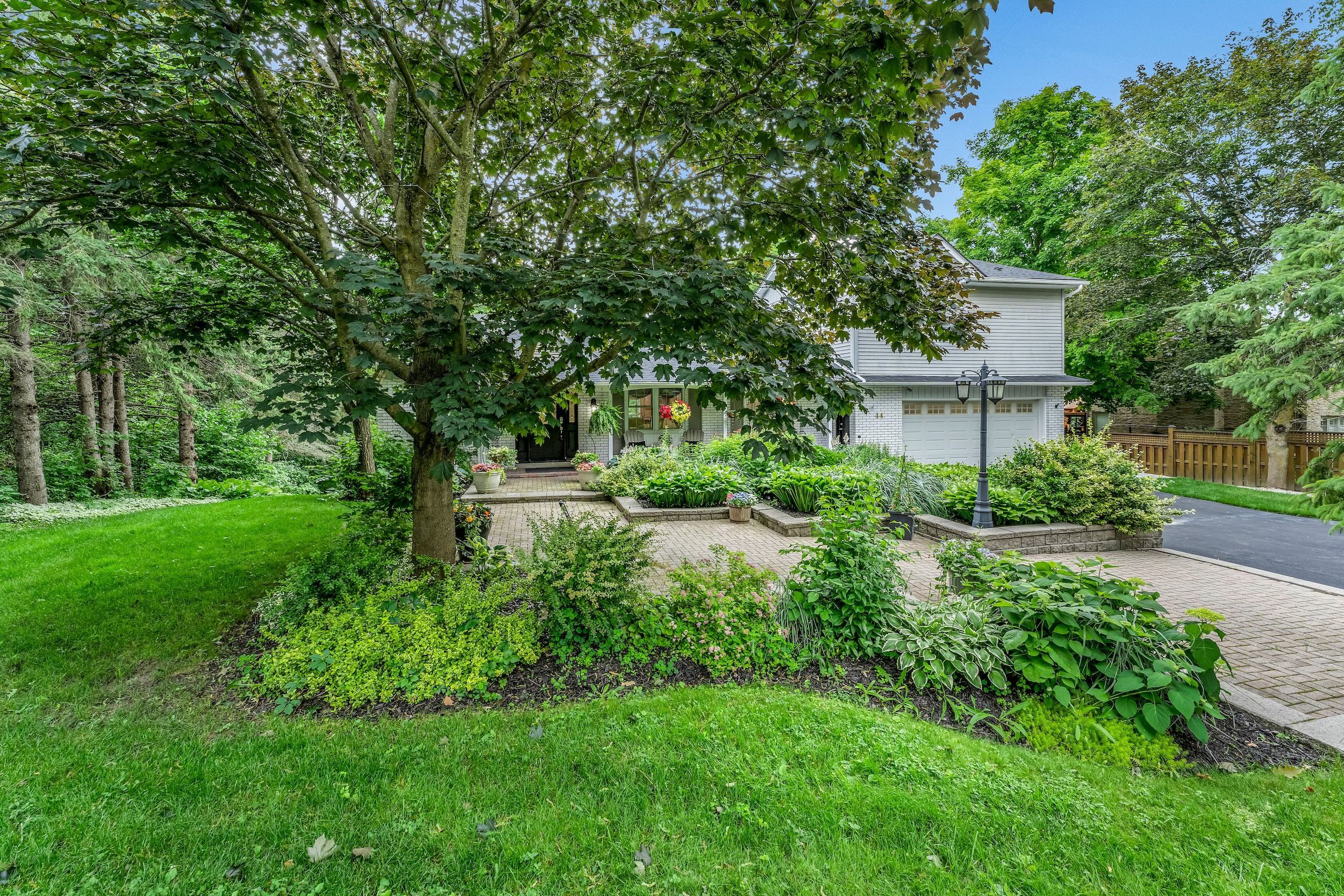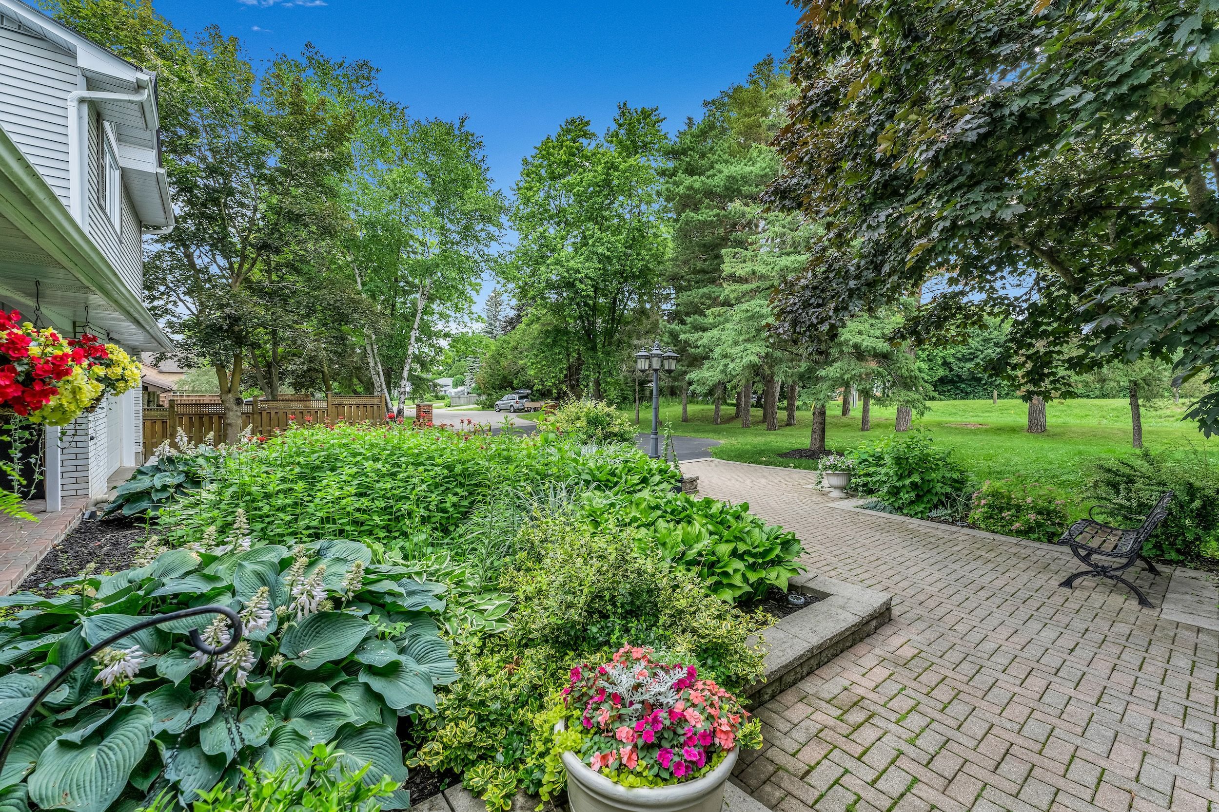Beautiful 1. 18-acre in town property boasts sunsets as it backs onto the tottenham conservation and the caledon trail way path. This home is nestled at the end of a quiet cul de sac where privacy and tranquility waits. This charming home resonates family and gatherings through every aspect of this home. Unwind on the back deck featuring modern glass/aluminium railings (2022) and private views. 2+2 bedrooms, each with ensuite baths, with a total of 5 bathrooms and 2 kitchens. Approx. 3000 sq ft living space. It suits families or multigenerational living. The main floor offers a luminous large eat-in kitchen with a skylight and breakfast bar, a cozy living room with an electric fireplace and a breathtaking view of the backyard. A sunroom/family room with walkout to the expansive deck. The main floor bedroom with ensuite bath has deck access to enjoy your morning coffee. Main floor laundry. Upstairs, revel in the large secluded primary suite with two large double closets, a dressing/sitting area and a private updated 4-piece bath. The bright open foyer features a spacious closet and newer hardwood stairs leading to an incredible finished lower level, complete with a second kitchen, two bedrooms, two baths, and a new electric napoleon insert fireplace (2023) with a walkout to a stone patio. This bright lower level makes a wonderful in-law suite or more space for the family. Stunning perennial gardens and new stone walkway/patio (2023) guideyou to the vast backyard and endless trails. Toboggan in the winter to bonfires in the summer. This stunning private property is on municipal services, a rare find for such a large property. 2 car garage, ample parking. Excellent commuter location, 30 min to newmarket, 30 min to brampton, orangeville, barrie, 40 min to pearson airport and the gta. Short walk to town and schools. Enjoy the trail system, fairy trail village, blue grass festival, conservation, shopping and dining. Don't miss out on all this town and property has to offer