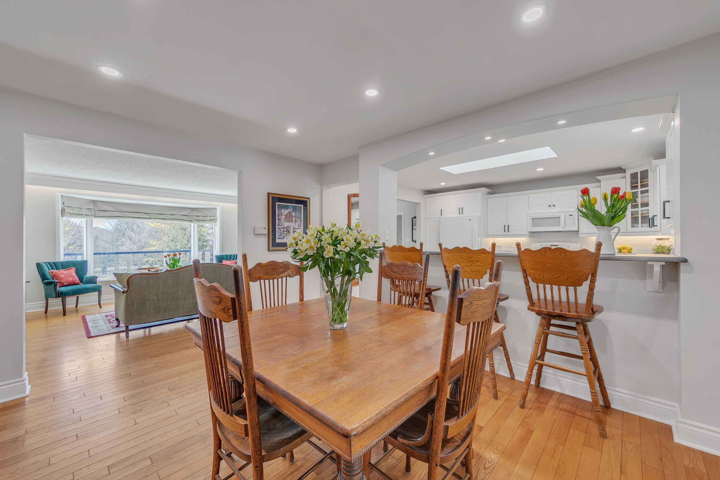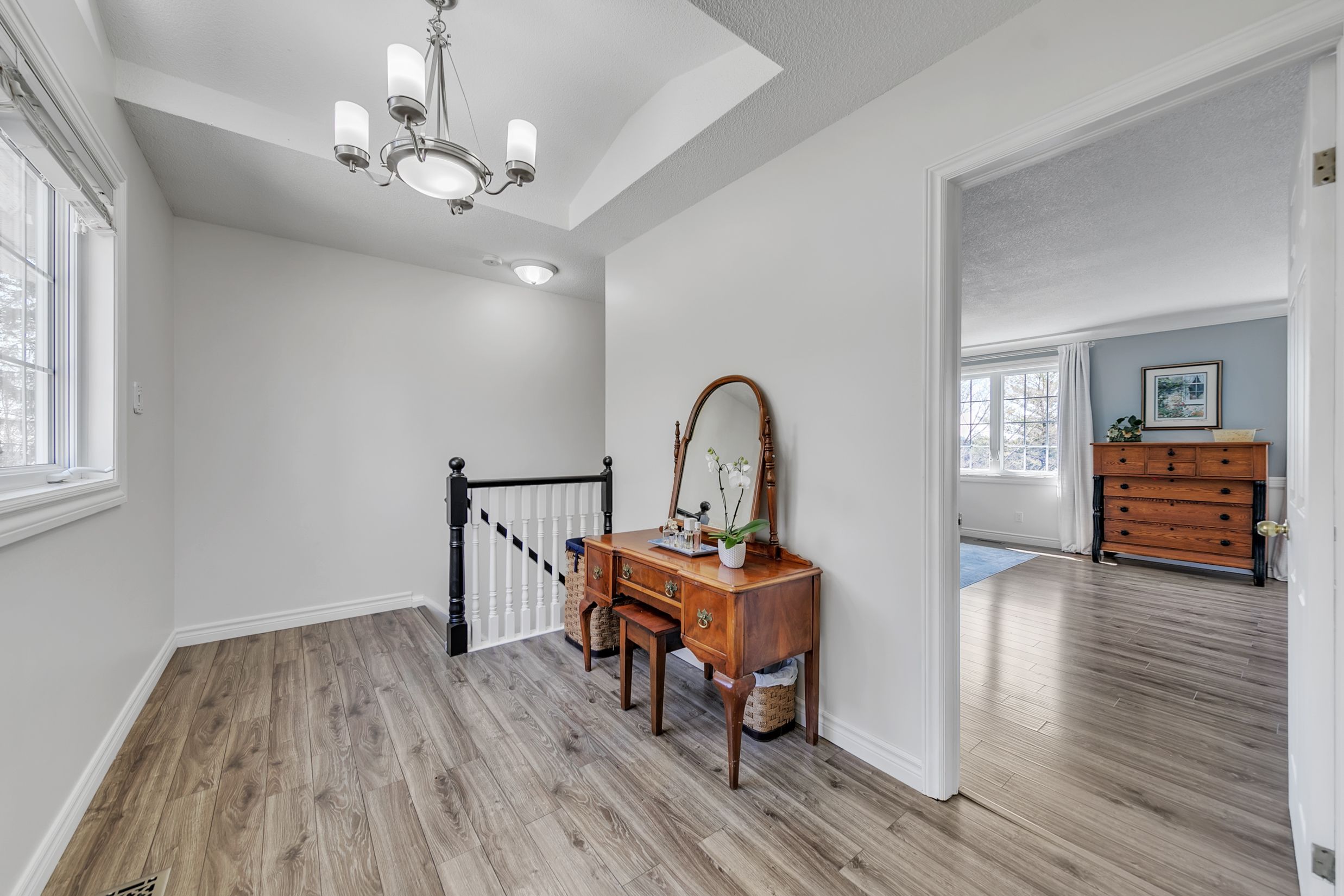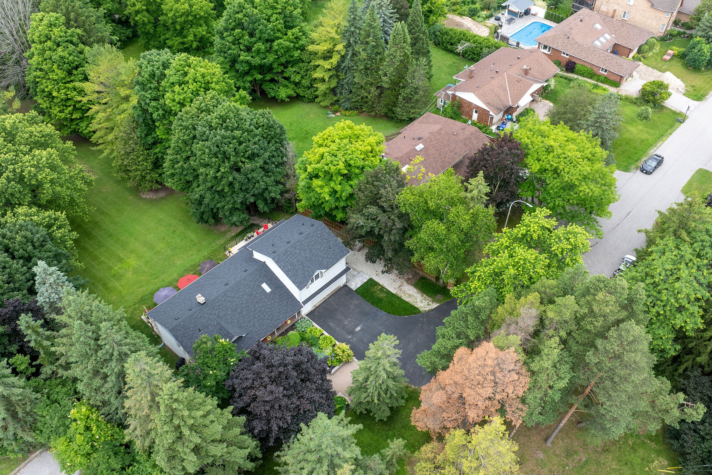 Beautiful 1. 18-acre in town property boasts sunsets as it backs onto the tottenham conservation and the caledon trail way path. This home is nestled at the end of a quiet cul de sac where privacy and tranquility waits. This charming home resonates family and gatherings through every aspect of this home. Unwind on the back deck featuring modern glass/aluminium railings (2022) and private views. 2+2 bedrooms, each with ensuite baths, with a total of 5 bathrooms and 2 kitchens. Approx. 3000 sq ft living space. It suits families or multigenerational living. The main floor offers a luminous large eat-in kitchen with a skylight and breakfast bar, a cozy living room with an electric fireplace and a breathtaking view of the backyard. A sunroom/family room with walkout to the expansive deck. The main floor bedroom with ensuite bath has deck access to enjoy your morning coffee. Main floor laundry. Upstairs, revel in the large secluded primary suite with two large double closets, a dressing/sitting area and a private updated 4-piece bath. The bright open foyer features a spacious closet and newer hardwood stairs leading to an incredible finished lower level, complete with a second kitchen, two bedrooms, two baths, and a new electric napoleon insert fireplace (2023) with a walkout to a stone patio. This bright lower level makes a wonderful in-law suite or more space for the family. Stunning perennial gardens and new stone walkway/patio (2023) guideyou to the vast backyard and endless trails. Toboggan in the winter to bonfires in the summer. This stunning private property is on municipal services, a rare find for such a large property. 2 car garage, ample parking. Excellent commuter location, 30 min to newmarket, 30 min to brampton, orangeville, barrie, 40 min to pearson airport and the gta. Short walk to town and schools. Enjoy the trail system, fairy trail village, blue grass festival, conservation, shopping and dining. Don't miss out on all this town and property has to offer