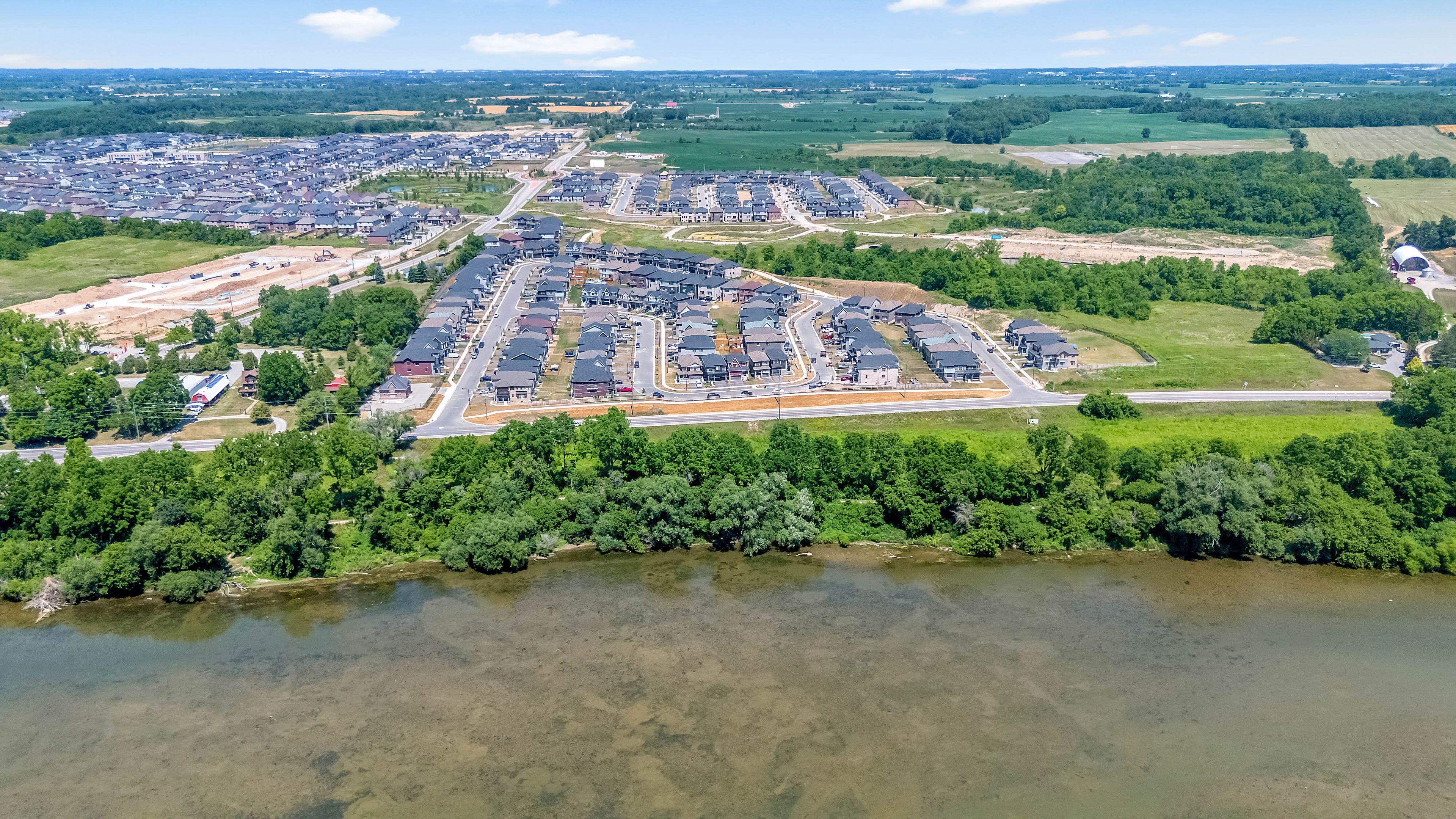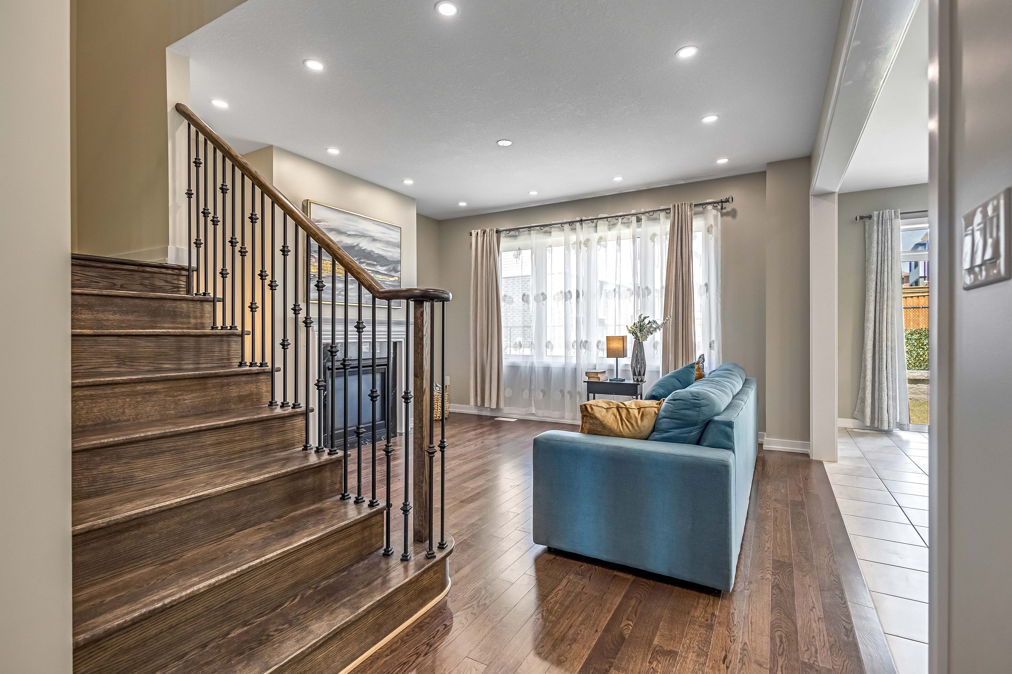 Welcome to 44 santos drive, caledonia! This immaculately maintained 3-bedroom, 2. 5-bathroom empire home blends thoughtful design with quality upgrades, set on a south-facing lot with no front neighbours and a beautiful grand river view across the road. The main floor features 9-foot ceilings, an open-concept layout, and a gas fireplace with marble and metal surround. Hardwood flooring and led lighting enhance the modern, bright feel throughout. The upgraded samsung appliance package includes a smart-screen refrigerator, built-in dishwasher, and sleek backsplash, complemented by granite countertops and extended cabinetry for additional storage and workspace. Upstairs, the primary suite includes a walk-in closet and a private ensuite bathroom. The upper hallway offers hardwood flooring and a stained oak staircase with iron pickets, along with upgraded interior doors for a polished finish. Additional features include garage access with custom stairs, a cold cellar (builder upgrade), owned water softener, rough-in for central vacuum, and an ev charger outlet in the 1. 5-car garage. The driveway accommodates four vehicles, providing excellent parking capacity. Located in the avalon community of caledonia, this home offers a quiet, family-friendly setting close to schools, parks, walking trails, and riverfront views. Immediate possession is available. Experience a welcoming blend of comfort, style, and functionality in this thoughtfully designed avalon home - ready for its next chapter.