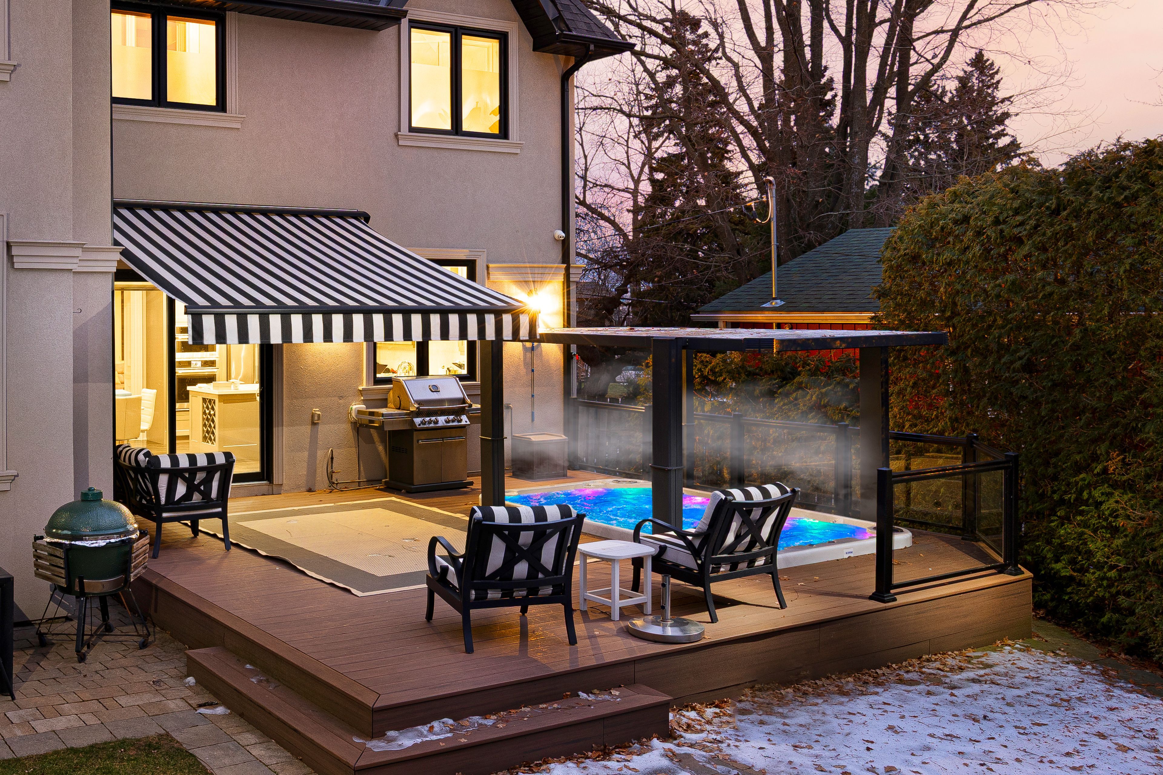 Custom built bluffs home spanning over 4,000 sq. Ft. Of luxury! Set back on a generous 50 foot frontage, with landscaped grounds, an interlocked stone driveway offering ample parking, and a double car garage with epoxy flooring. Step into this pristine residence boasting thoughtful design, detailed millwork, and quality craftsmanship throughout. The welcoming foyer entry with high ceilings, elevates the home's interior appeal, opening up to an elegant living and dining area with ample closet space and a main floor powder room. The exquisite gourmet kitchen overlooks a main floor family room with a walkout to serene views of the private backyard providing an outdoor retreat, complete with composite decking, a retractable awning, swimspa, glass railings, and lush, low-maintenance landscape. Convenient direct access to the home from the garage, a separate side entrance that walks down to the completely finished lower is perfect for an in-law suite with an extra bedroom, or an extension of luxury living and entertaining. The upstairs landing is sun-filled with a skylight and leads to four spacious bedrooms including a grand primary, each with ensuite or semi-ensuite bath. A second-floor laundry room adds functionality and simplicity. Notable upgrades include a whole-home generator, advanced security and camera system, programmable lighting, central vac, triple sump pump with battery backup, and high-capacity hvac. A rare opportunity to enjoy a peaceful, nature-filled lifestyle just steps to parkland and tennis courts. Minutes to rosetta mcclain gardens, kingston road amenities, and top-rated schools including chine drive ps and r. H. King academy.