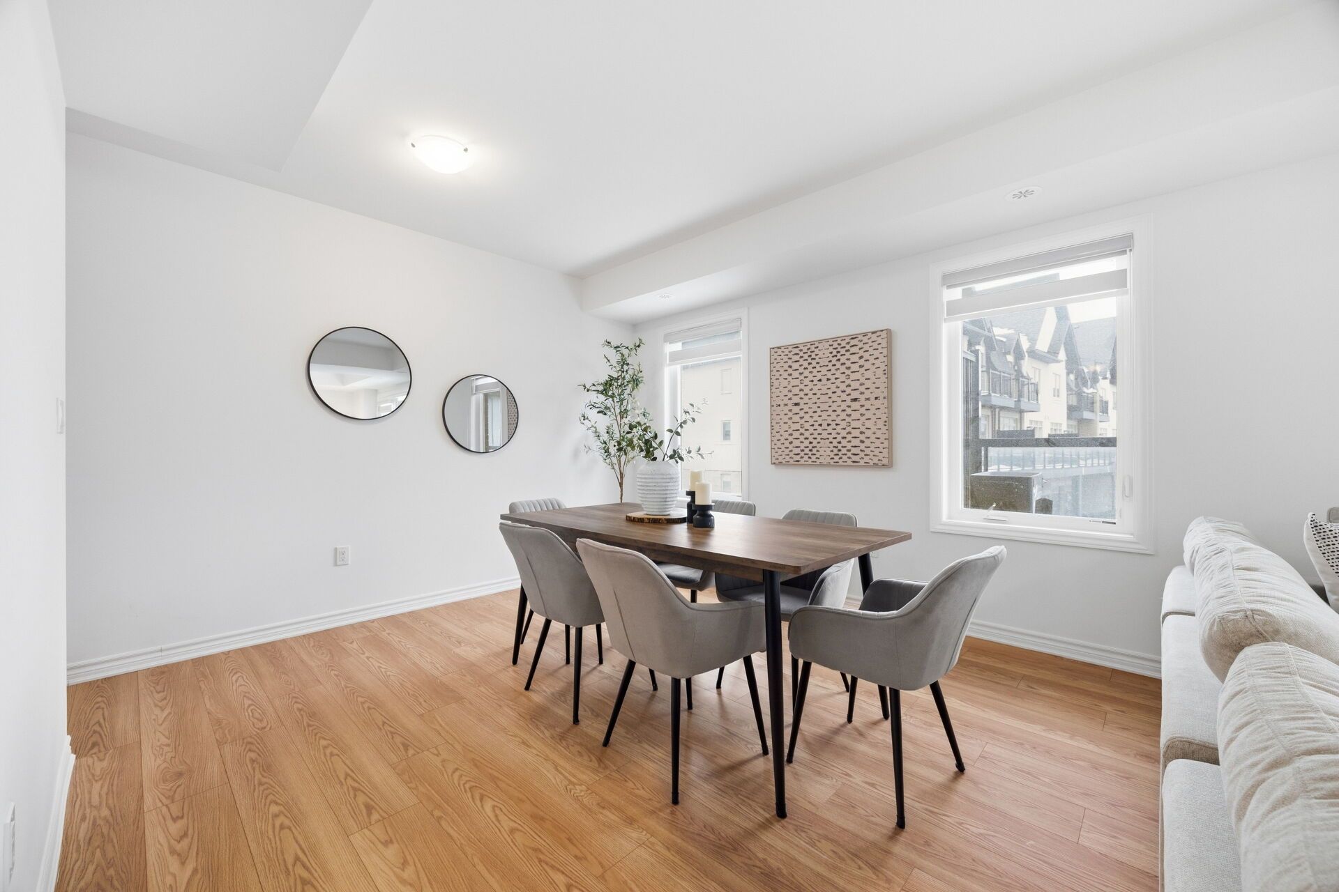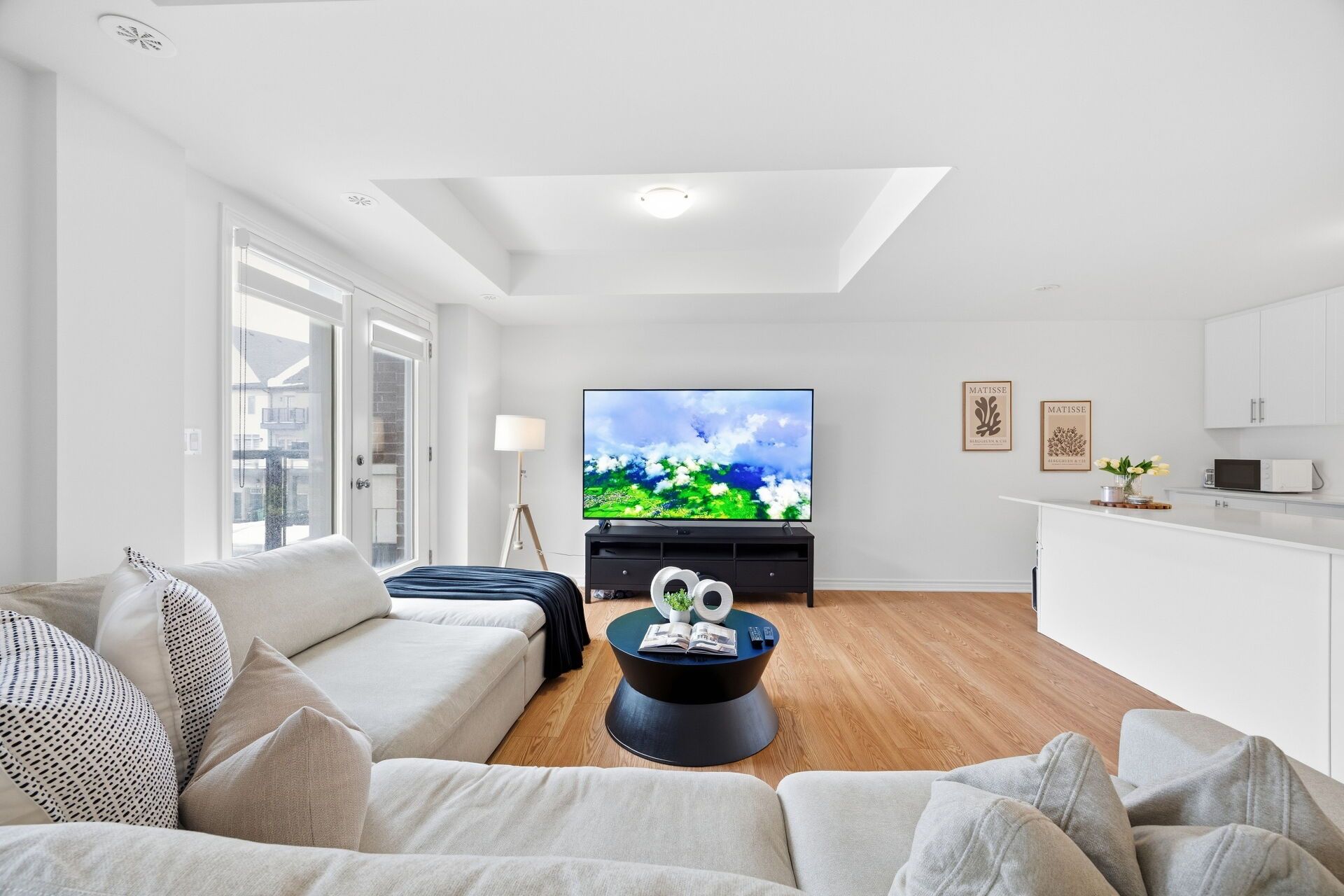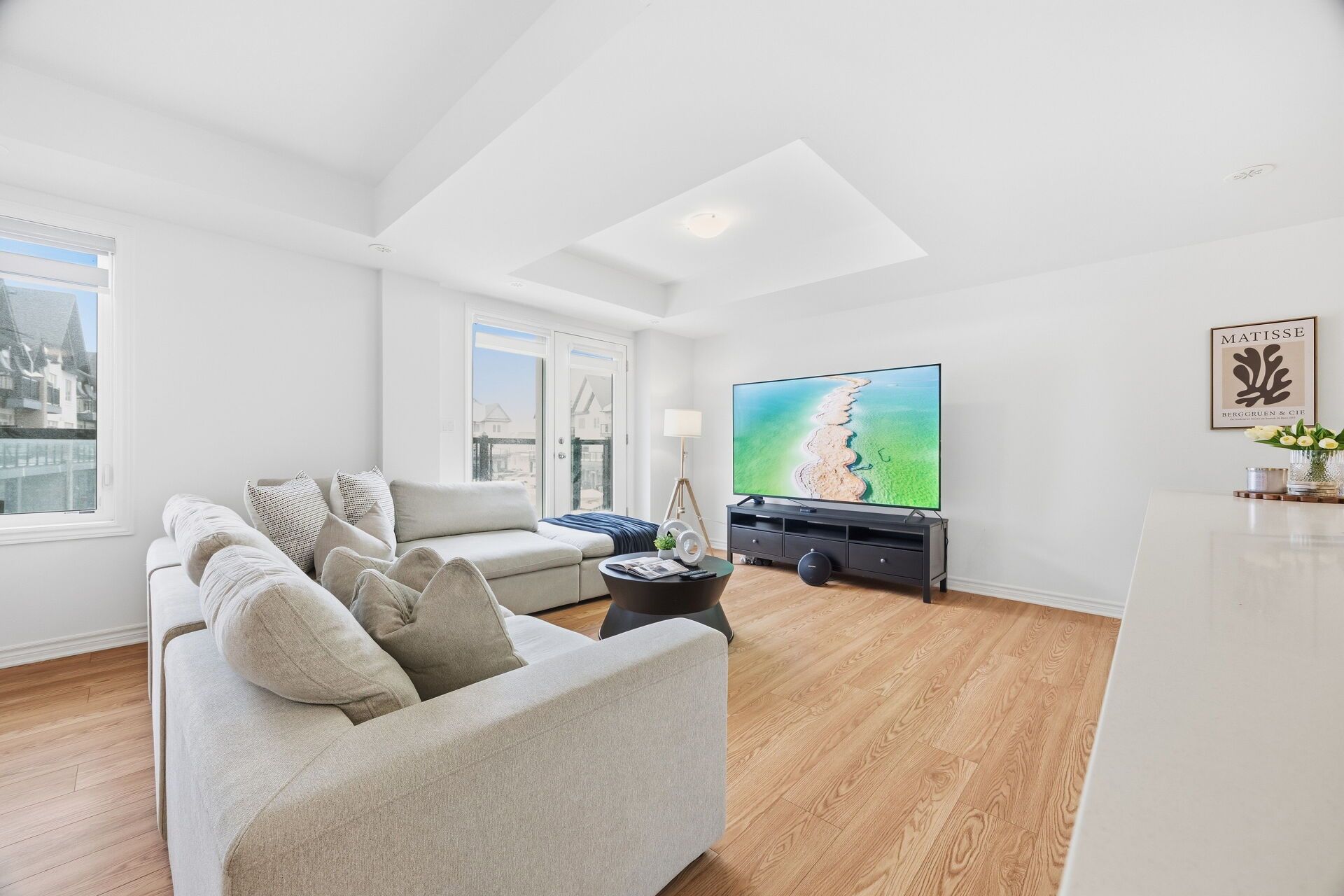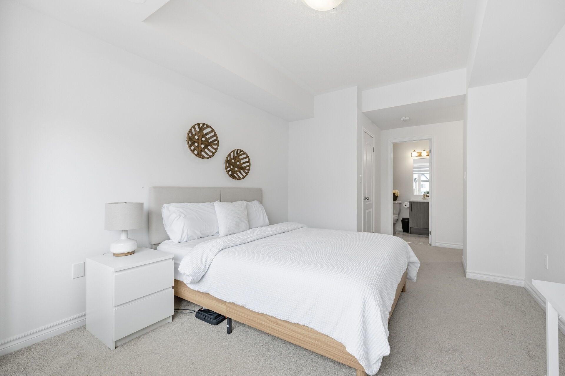 Welcome to this stunning 6-month-new executive 3-storey townhouse in the highly sought-after southfields village, caledon. Offering approx. 1,690 sq ft as per builder's floor plan, this modern home features an elegant stone, brick & stucco elevation and an unbeatable location directly across from the southfields community centre and skate park, and steps to all daily amenities. A spacious foyer with ceramic tiles leads to the bright open-concept great room combined with dining area, perfect for entertaining and everyday living. Walk out to an oversized balcony ideal for summer enjoyment. The modern kitchen boasts stainless steel appliances, ample cabinetry, a large centre island with breakfast bar, and generous counter space. A convenient powder room completes this level. Upstairs features a spacious primary bedroom with large window and 5-piece ensuite. Two additional well-sized bedrooms share an upgraded bathroom with frameless glass shower, and the second bedroom offers access to its own private balcony. A rare highlight is the fully private terrace for summers bbqs and gatherings, perfect for bbqs and outdoor gatherings. Includes 1-car garage plus 1 on driveway (2 total). Location is exceptional: directly across from southfields community centre and skate park, steps to plaza with grocery stores, pharmacy, restaurants, and convenience stores. Walking distance to highly rated southfields village public school, bonnieglen farm park, access to etobicoke creek trails, parks and pond. Close to the newly opened mega gym and conveniently located on a bus route, making commuting simple and accessible.