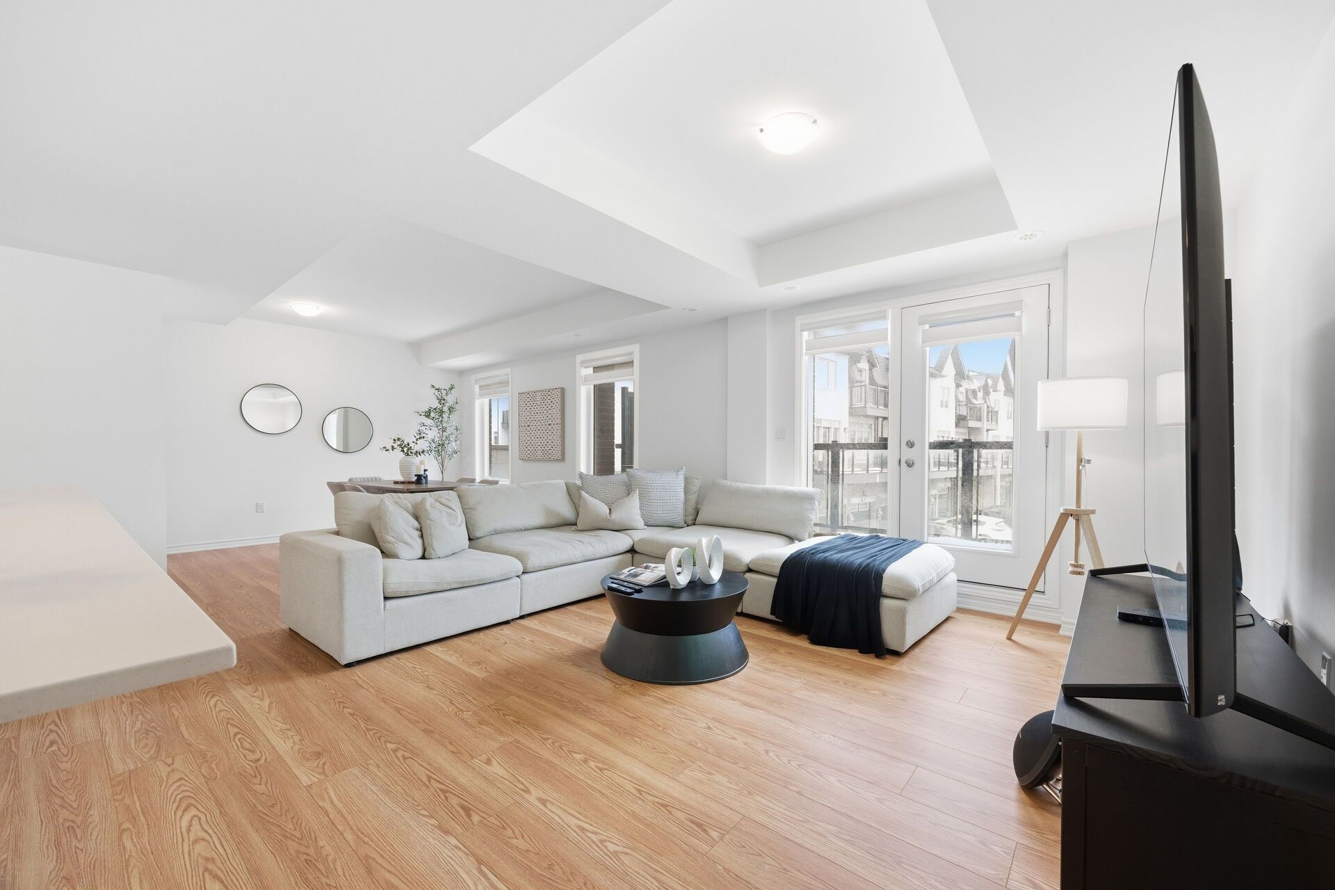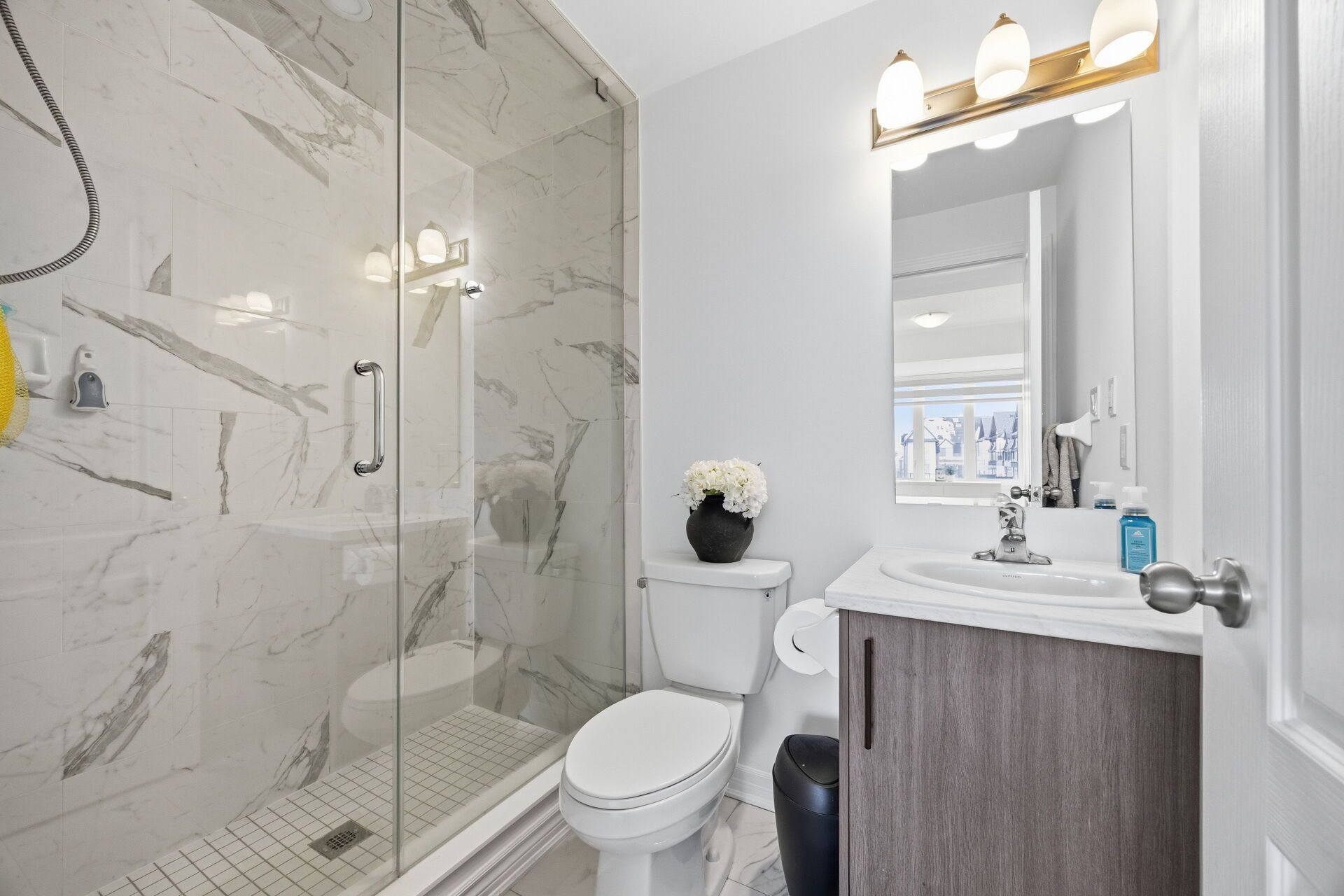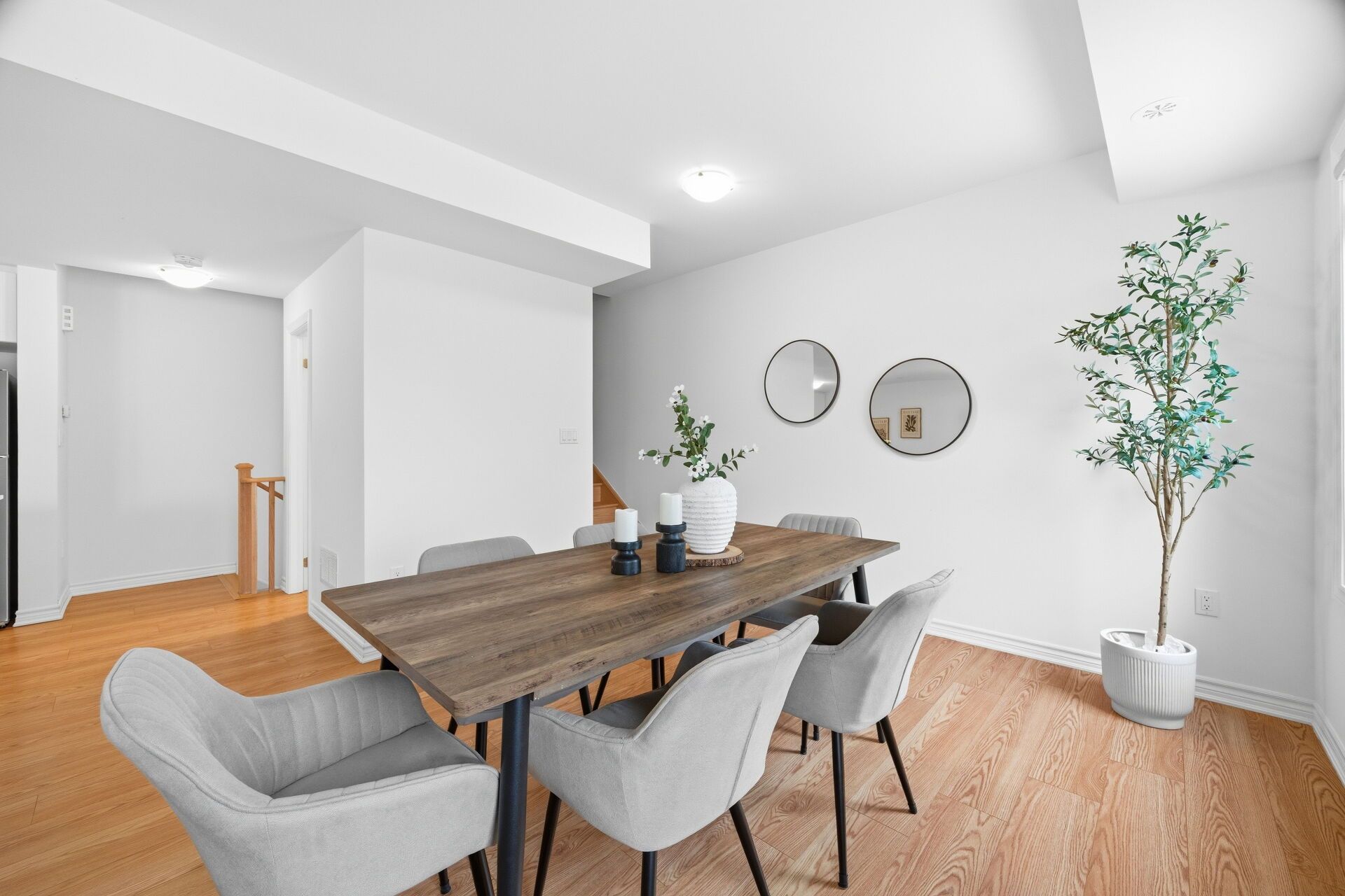 Welcome to this stunning 6-month-new executive 3-storey townhouse in the highly sought-after southfields village, caledon. Offering approx. 1,690 sq ft as per builder's floor plan, this modern home features an elegant stone, brick & stucco elevation and an unbeatable location directly across from the southfields community centre and skate park, and steps to all daily amenities. A spacious foyer with ceramic tiles leads to the bright open-concept great room combined with dining area, perfect for entertaining and everyday living. Walk out to an oversized balcony ideal for summer enjoyment. The modern kitchen boasts stainless steel appliances, ample cabinetry, a large centre island with breakfast bar, and generous counter space. A convenient powder room completes this level. Upstairs features a spacious primary bedroom with large window and 5-piece ensuite. Two additional well-sized bedrooms share an upgraded bathroom with frameless glass shower, and the second bedroom offers access to its own private balcony. A rare highlight is the fully private terrace for summers bbqs and gatherings, perfect for bbqs and outdoor gatherings. Includes 1-car garage plus 1 on driveway (2 total). Location is exceptional: directly across from southfields community centre and skate park, steps to plaza with grocery stores, pharmacy, restaurants, and convenience stores. Walking distance to highly rated southfields village public school, bonnieglen farm park, access to etobicoke creek trails, parks and pond. Close to the newly opened mega gym and conveniently located on a bus route, making commuting simple and accessible.
